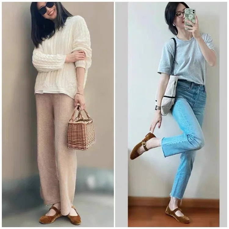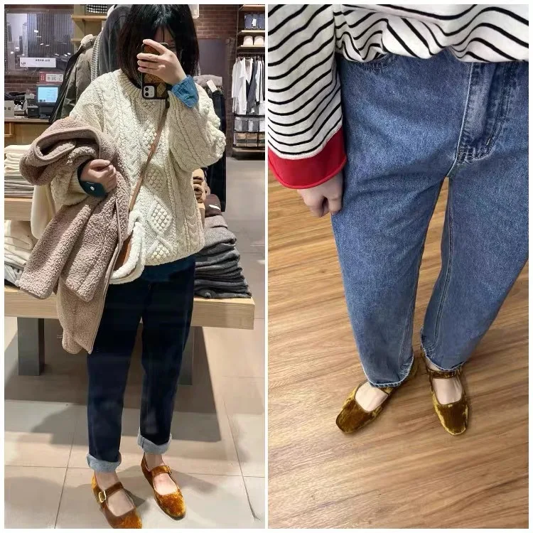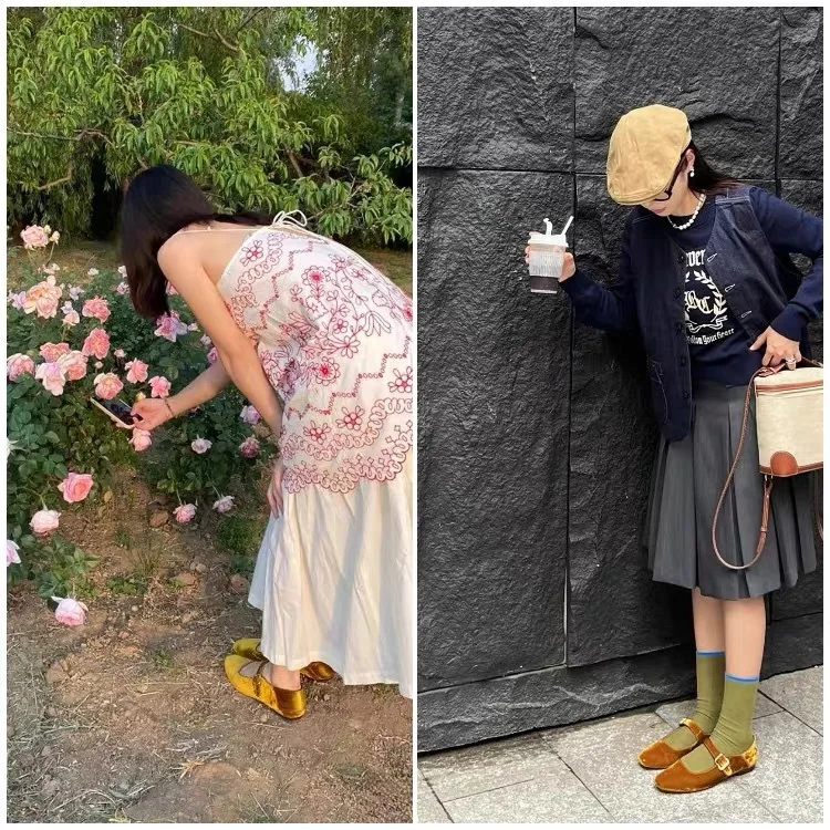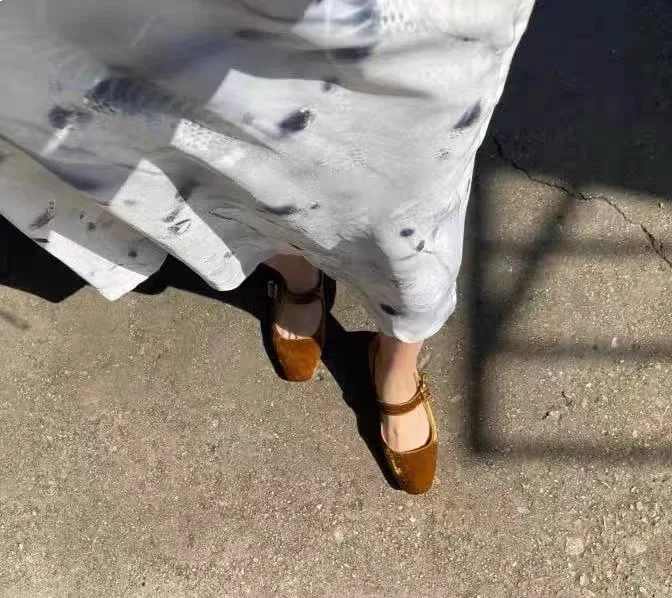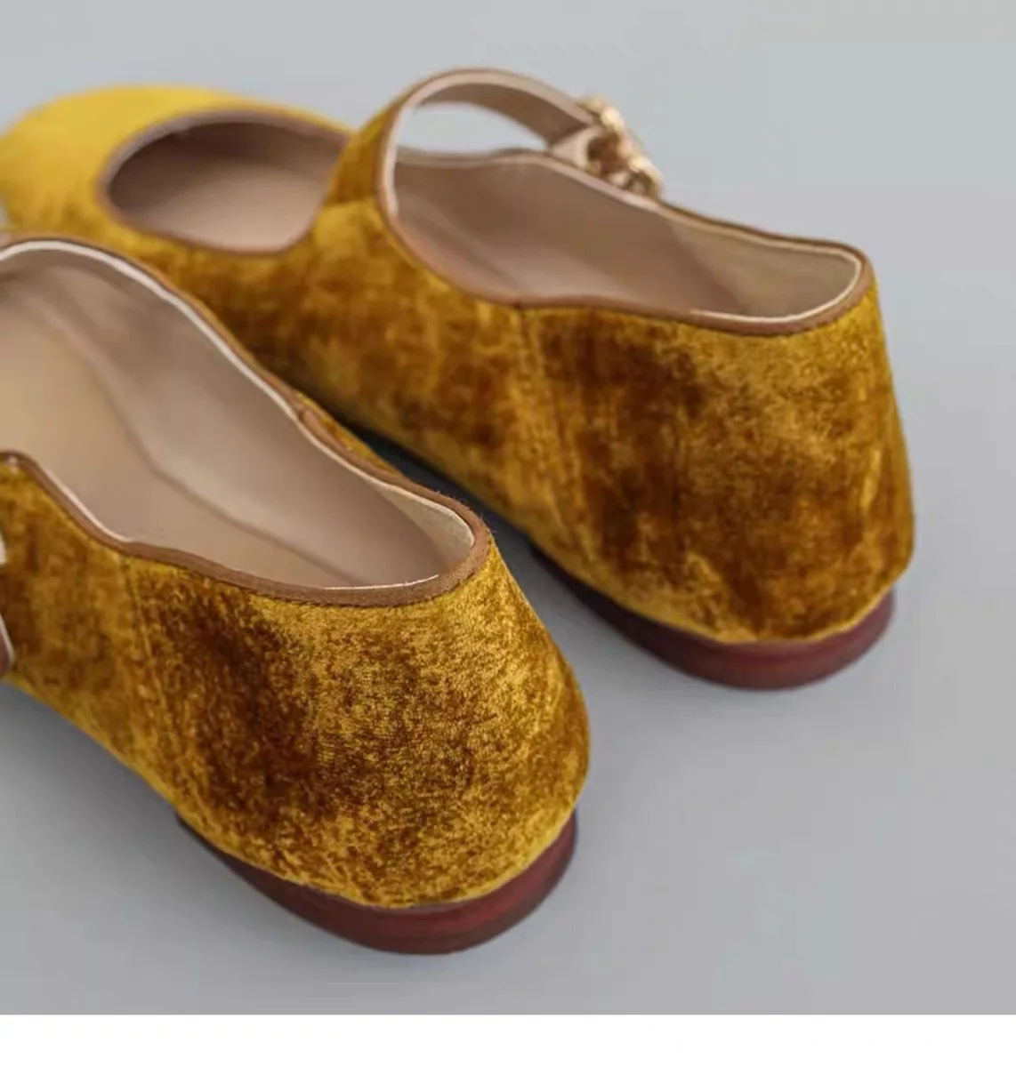 KYLETHOMASW - Designer Women Velvet Mary Janes Belt Strap Shoes Ladies Square Toe Flats Ballerina Dress Barefoot Loafers Brides Ballets Femmes