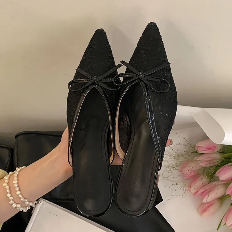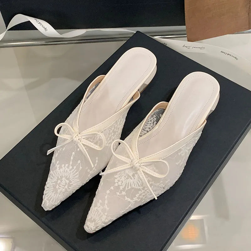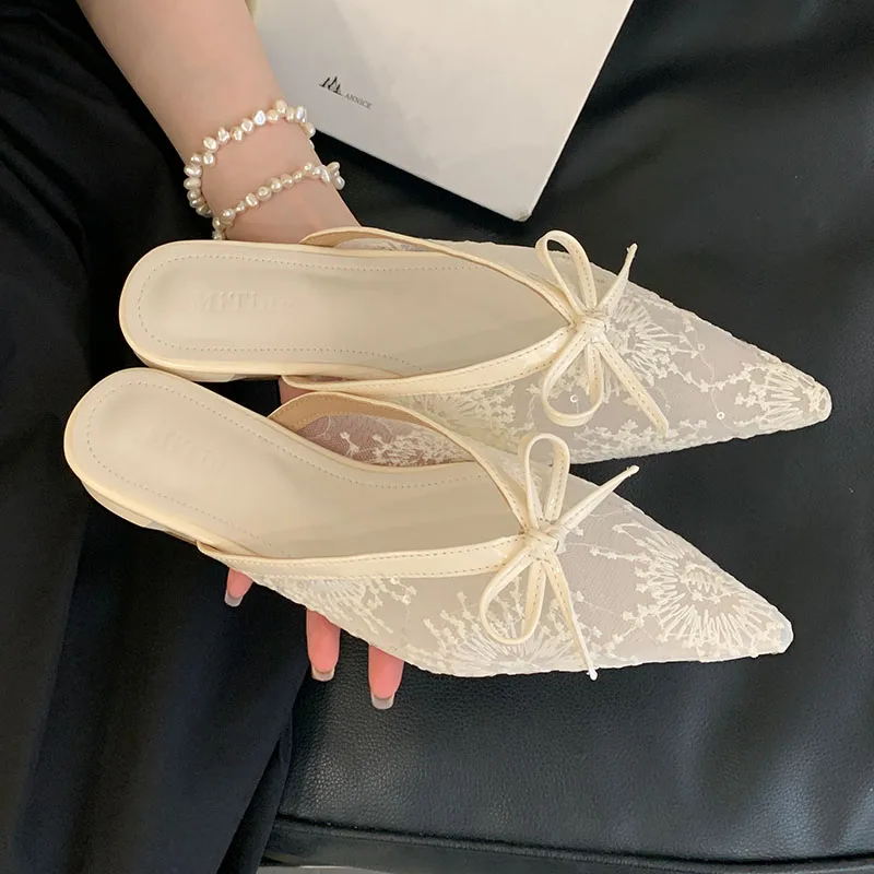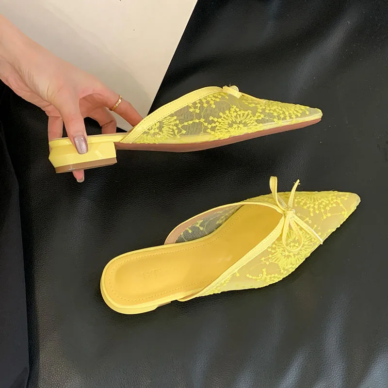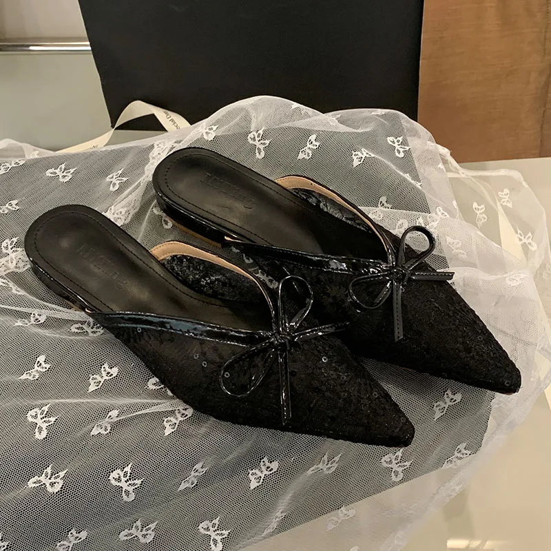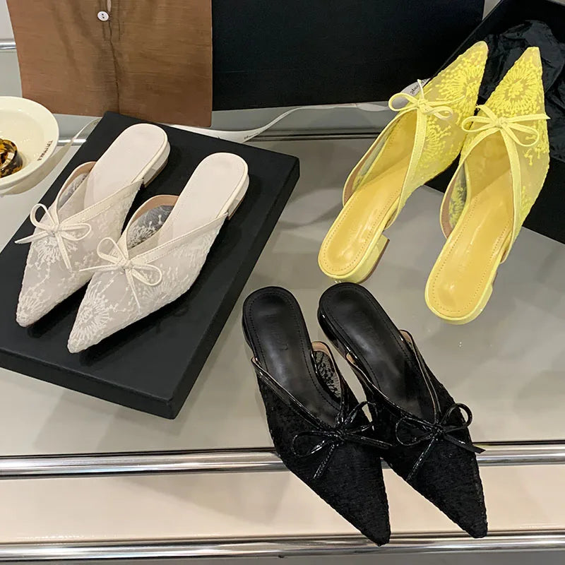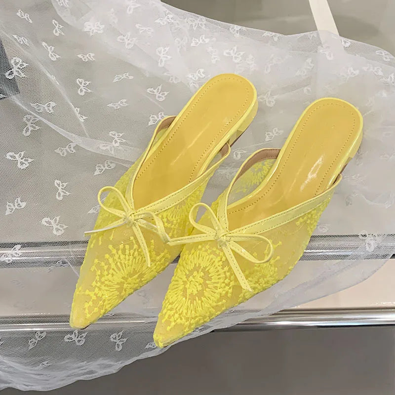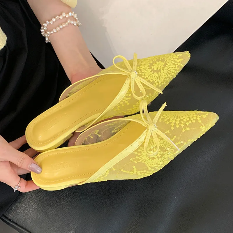 KYLETHOMASW - Fashion Butterfly-Knot Mesh Women Flats Slippers Mules Shoes Female Slides Pointed Toe Ladies Flats Slippers Sandals Shoes