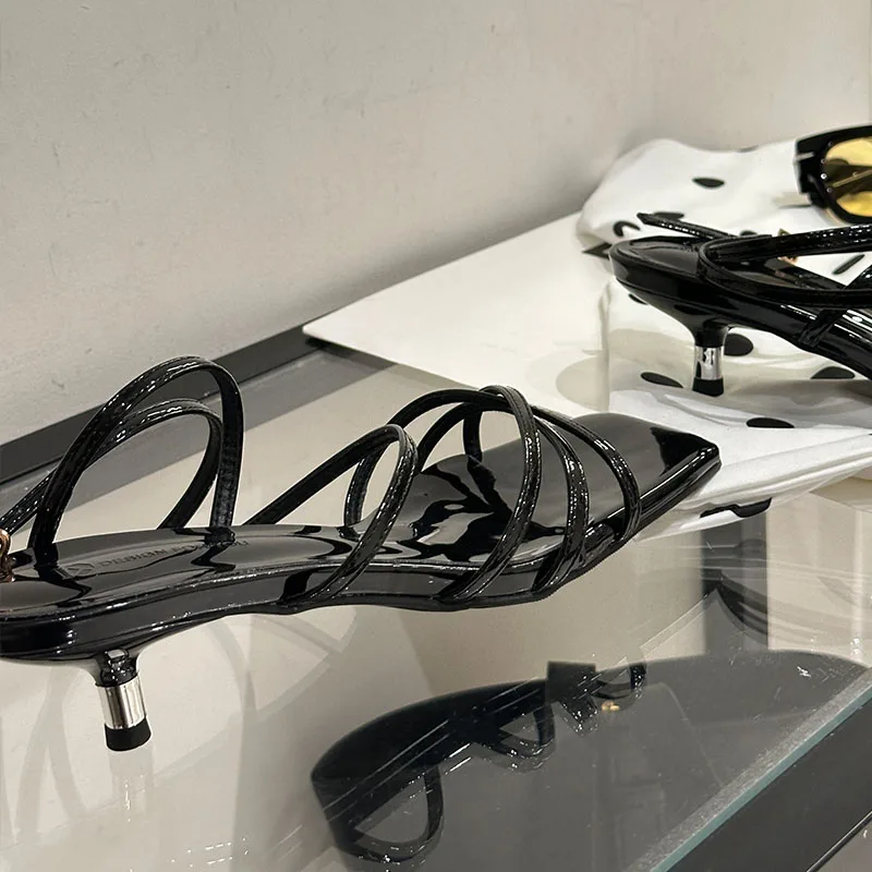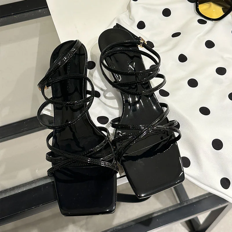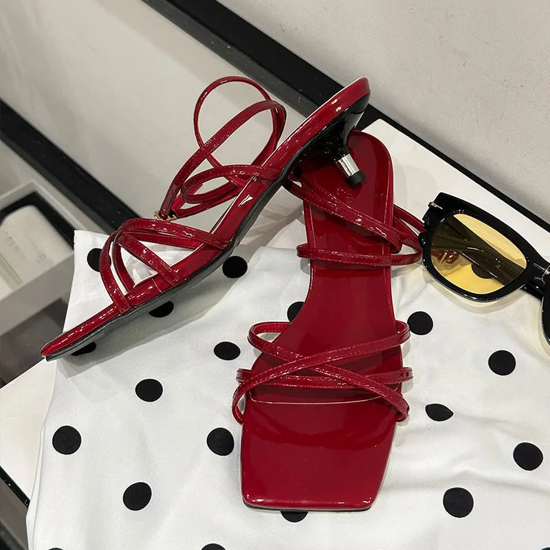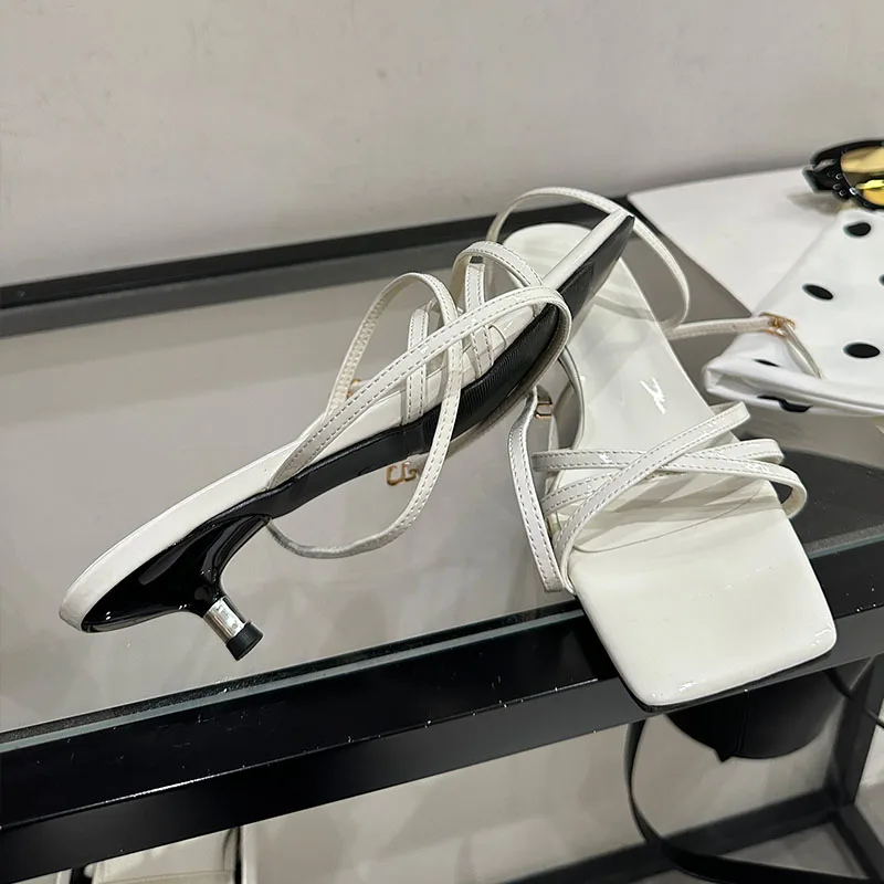 KYLETHOMASW - Fashion Cross-tied Women Low Heel Sandals Shoes Shallow Female Square Toe Footwear Sexy Ladies Heeled Shoes Sandals Pumps