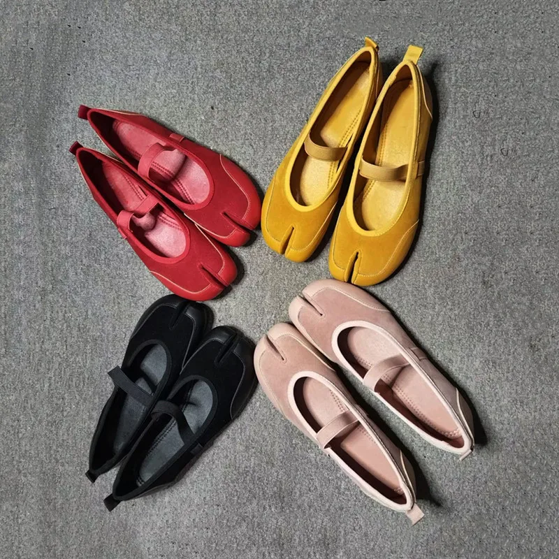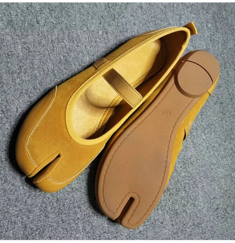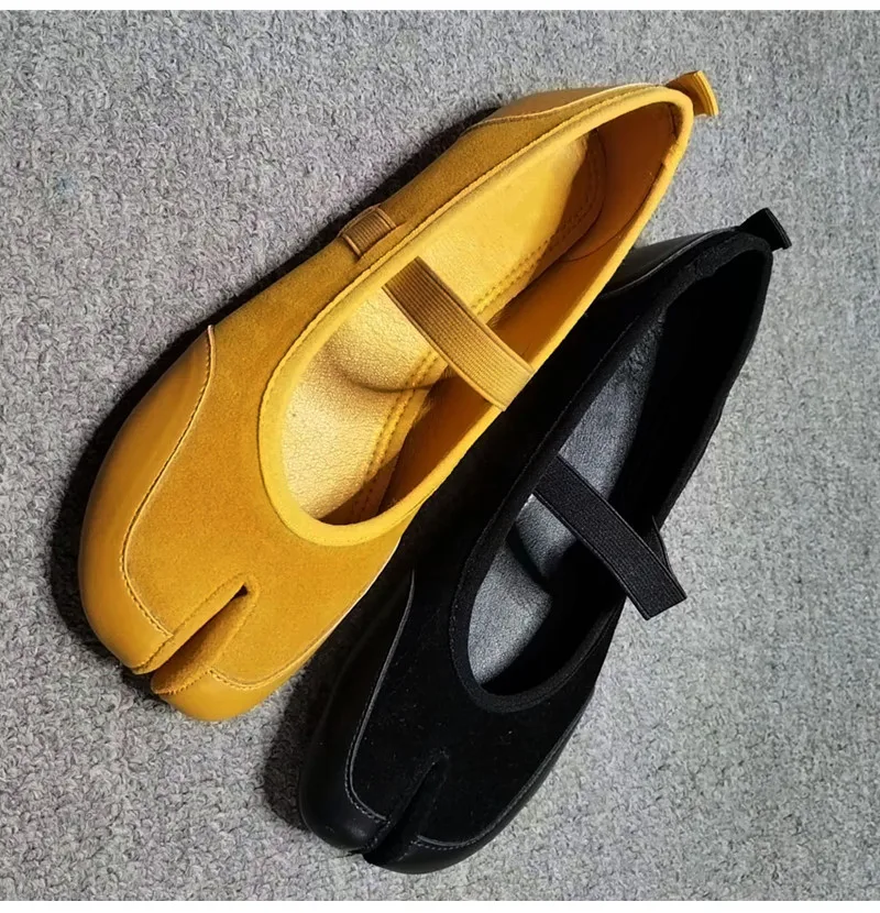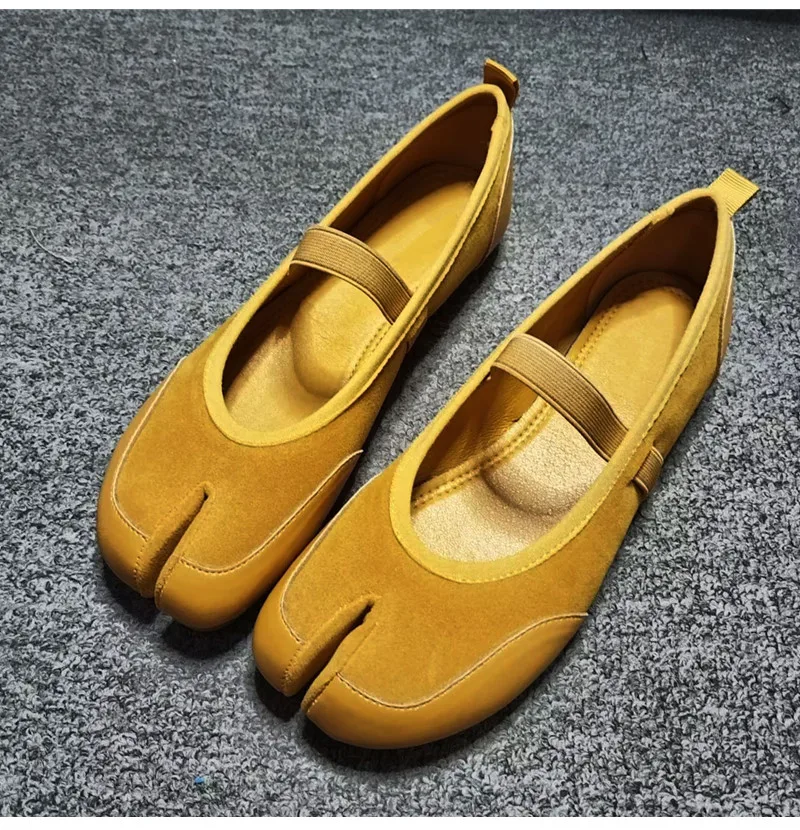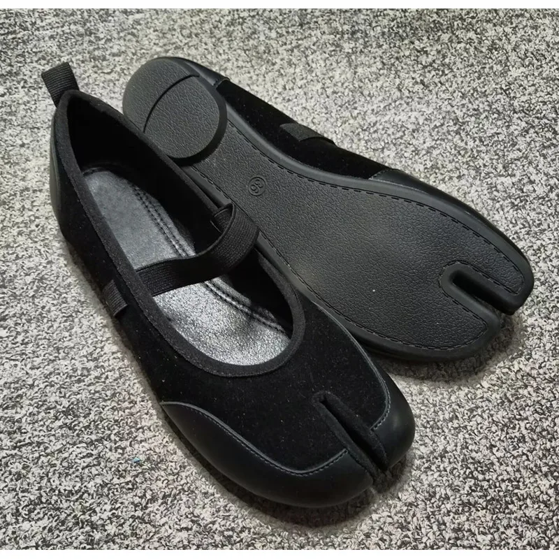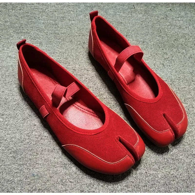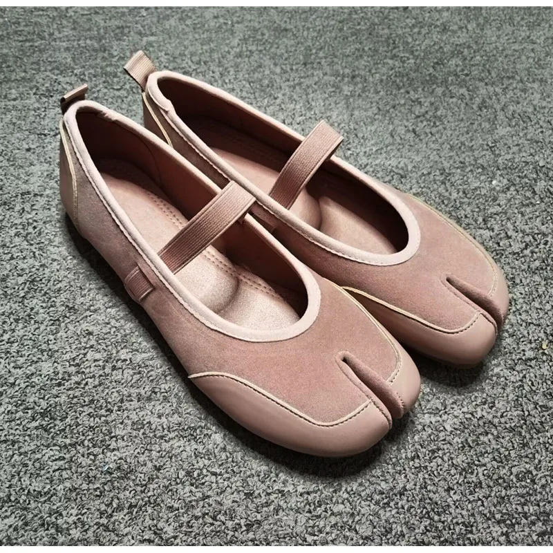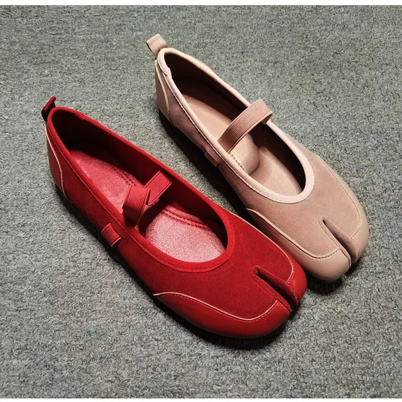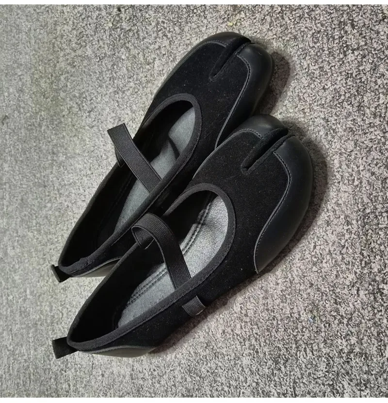 KYLETHOMASW - Fashion Split toe Faux suede Patchwork Women Tabi Ballet Flats Spring Autumn Mary Janes Walking Loafers Casual Girls Dance Shoes