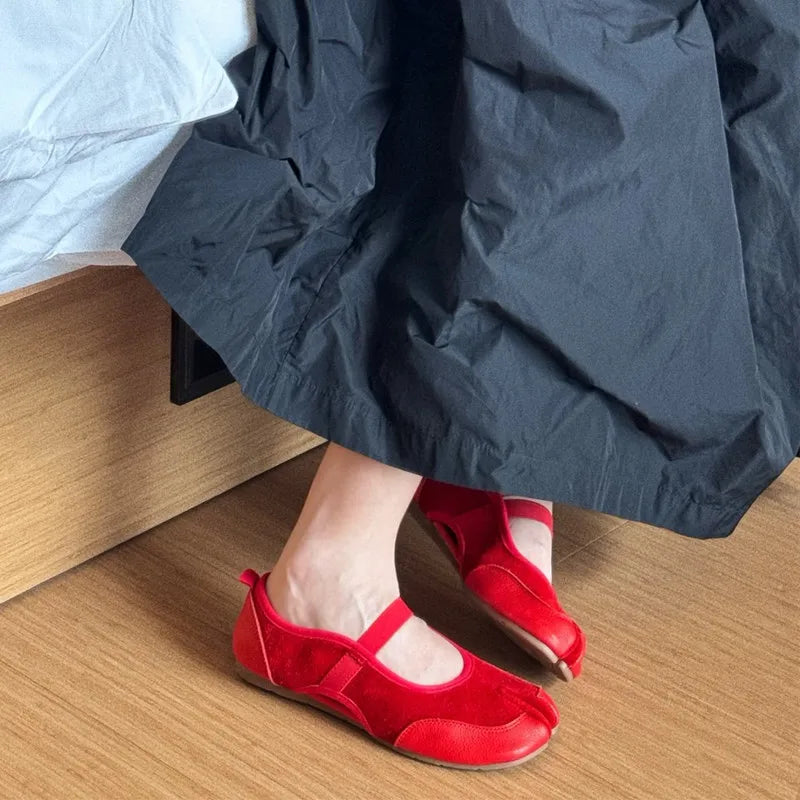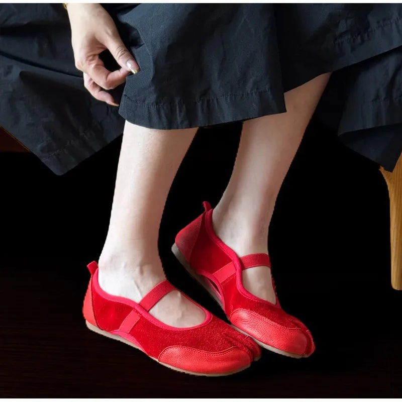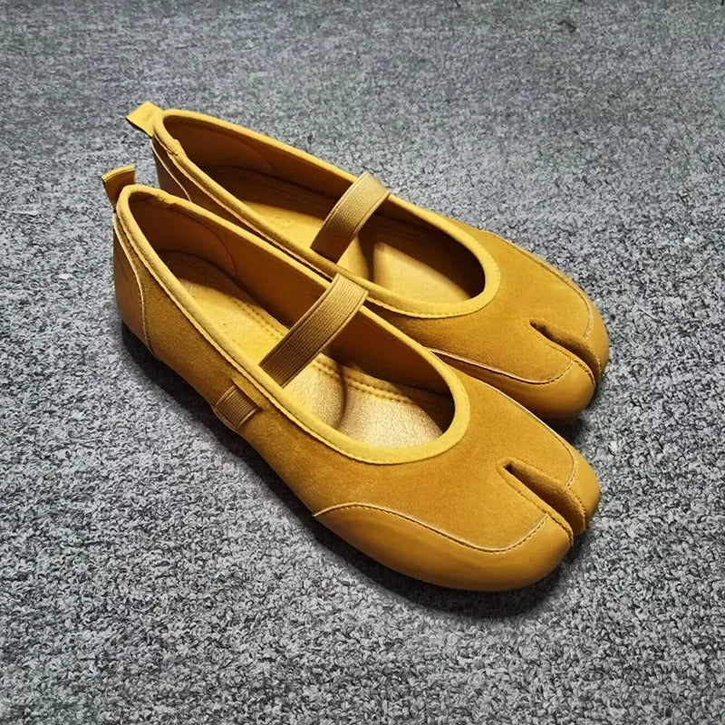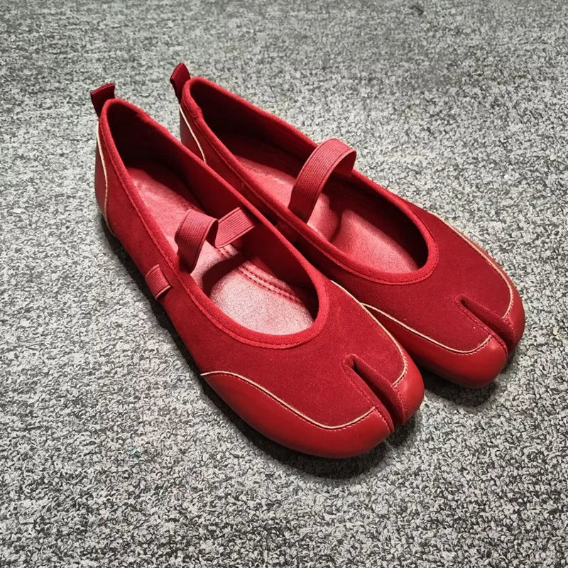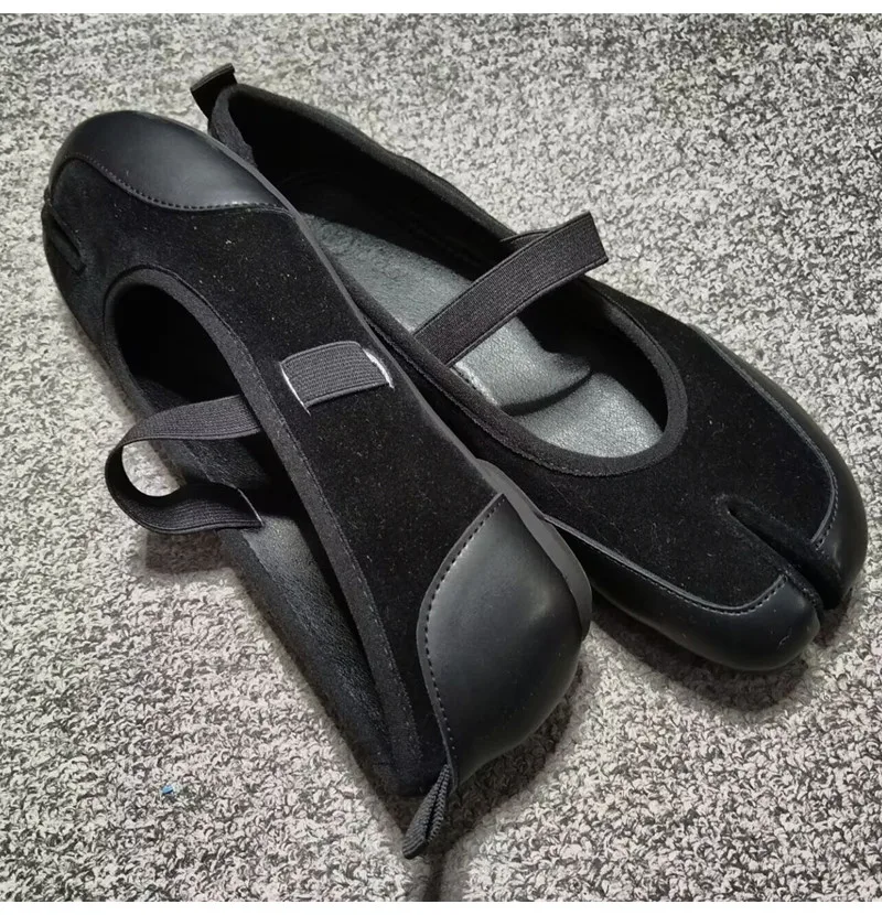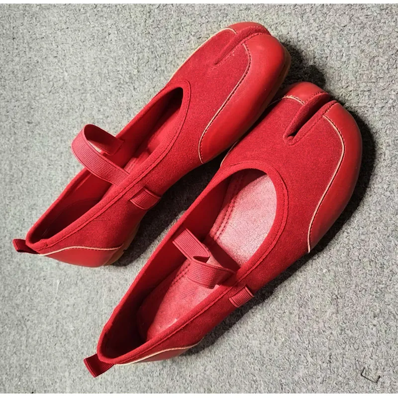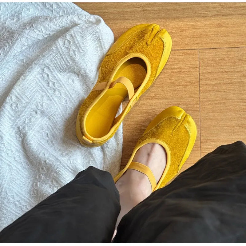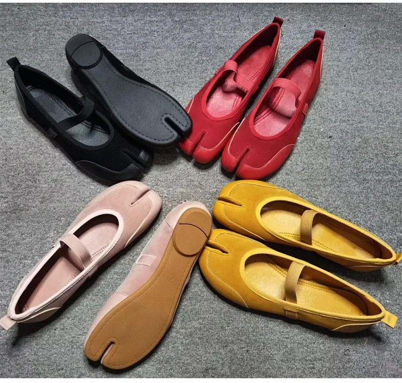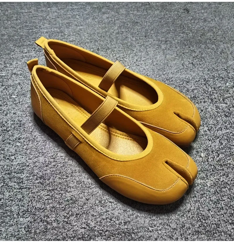 KYLETHOMASW - Fashion Split toe Faux suede Patchwork Women Tabi Ballet Flats Spring Autumn Mary Janes Walking Loafers Casual Girls Dance Shoes