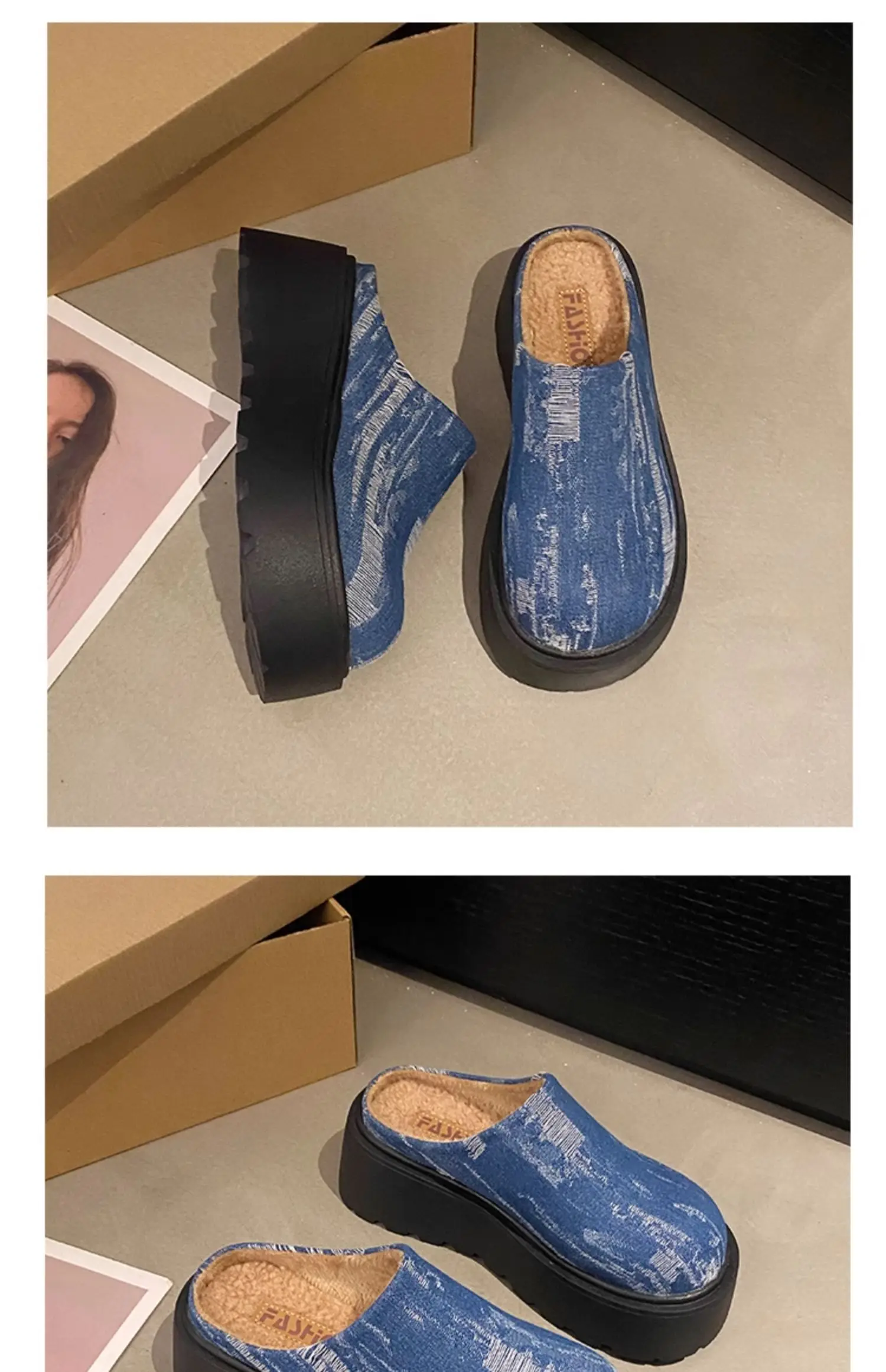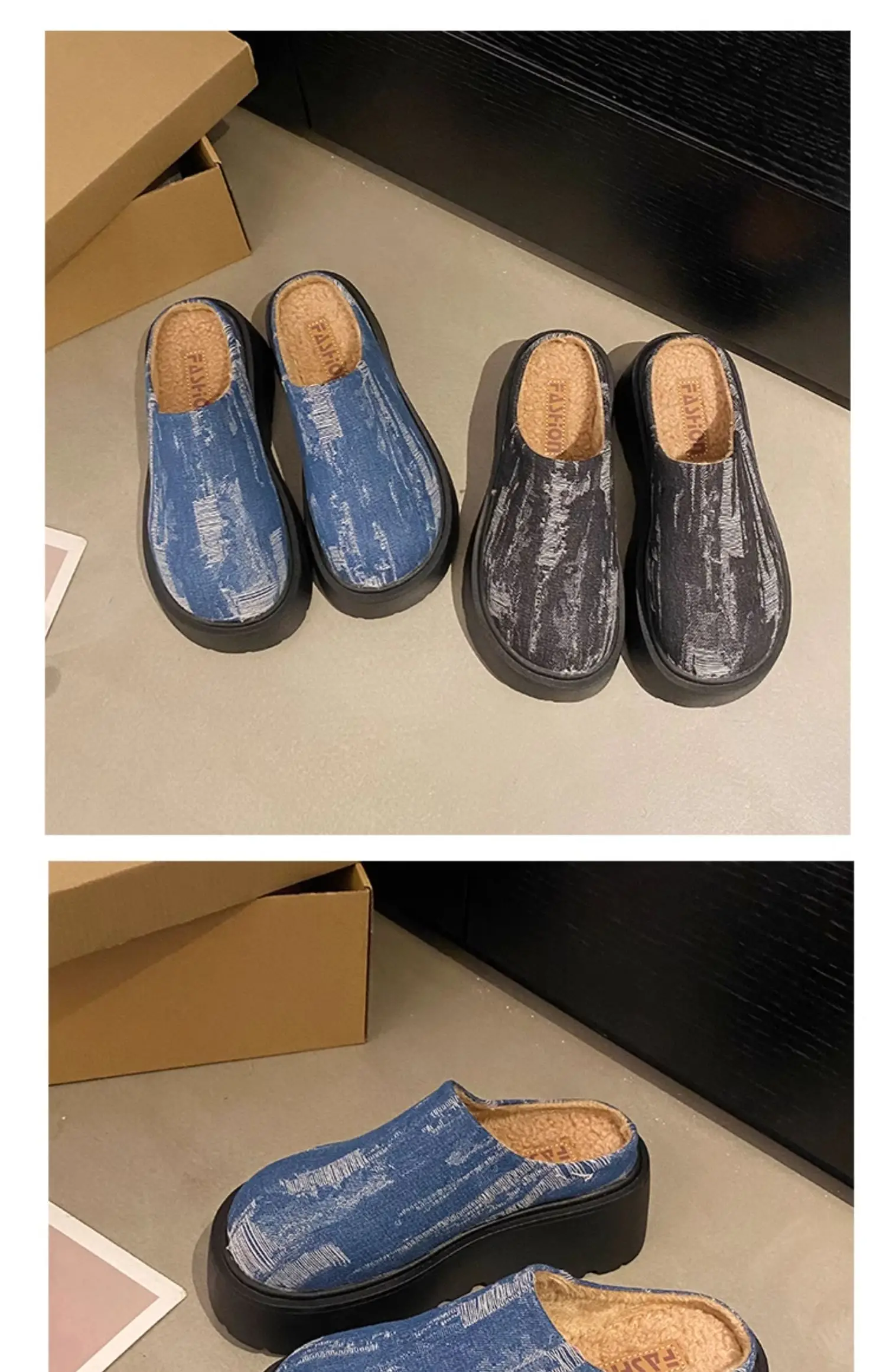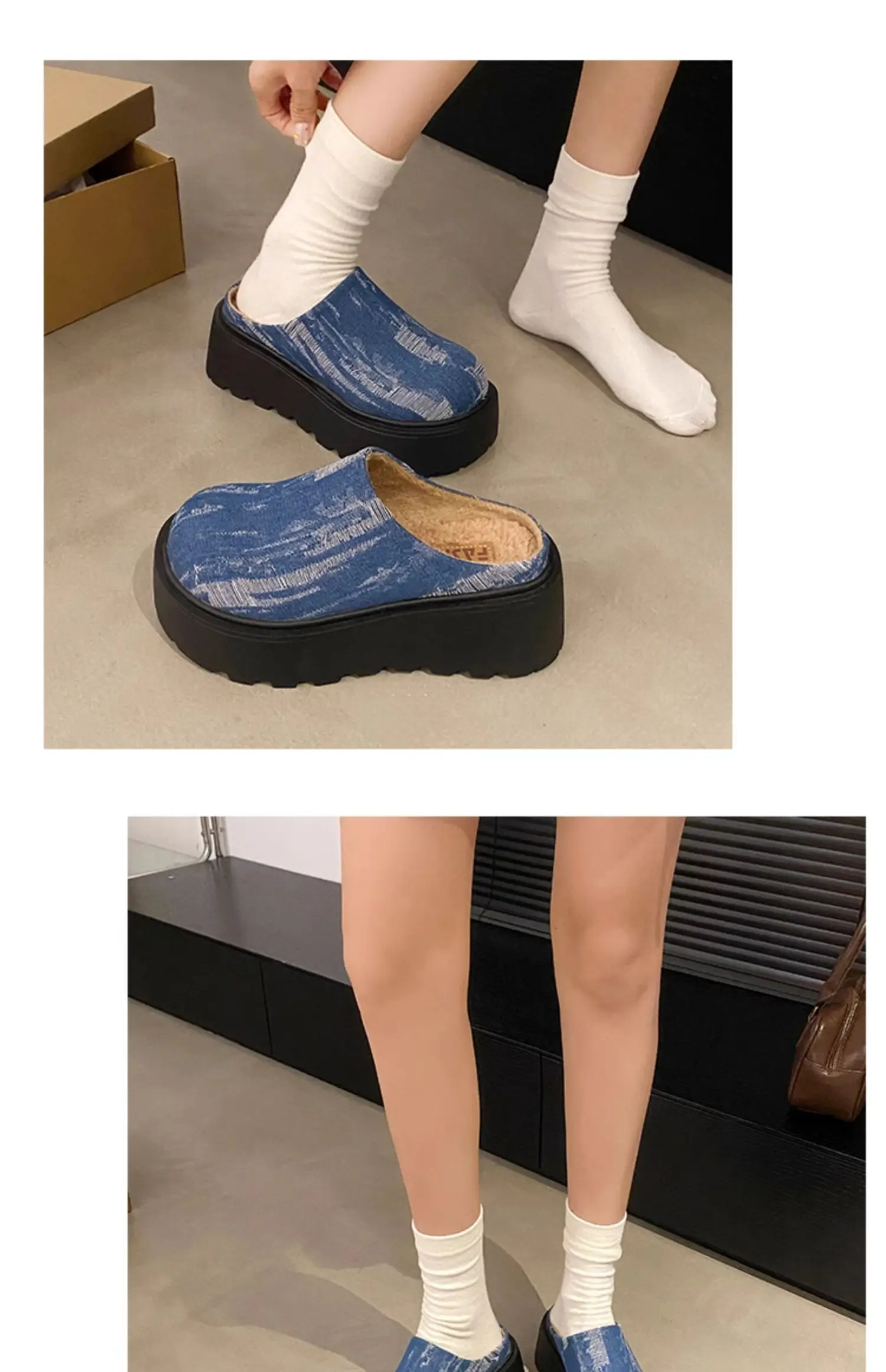 KYLETHOMASW  -  Female Shoes Cover Toe House Slippers Platform Winter Footwear Luxury Slides Fur Flip Flops Loafers 2025 Soft Designer Plush