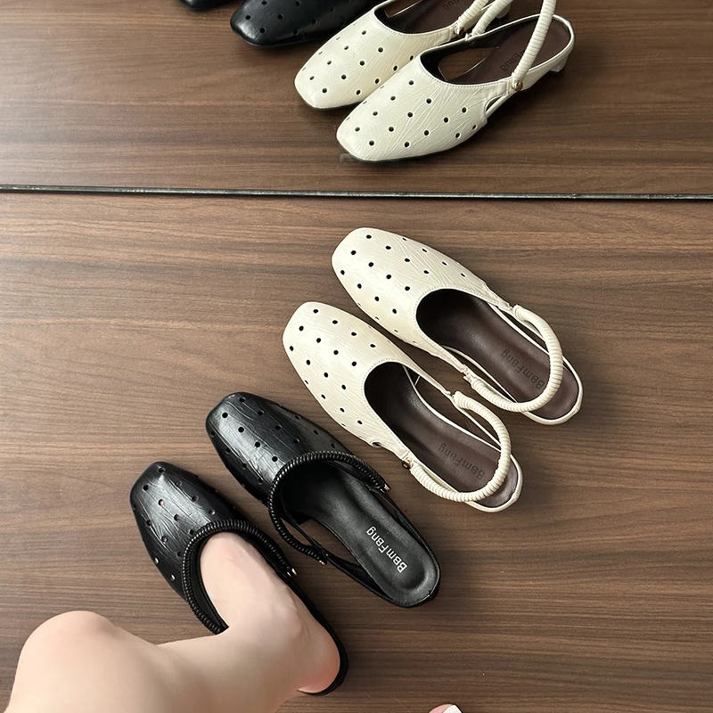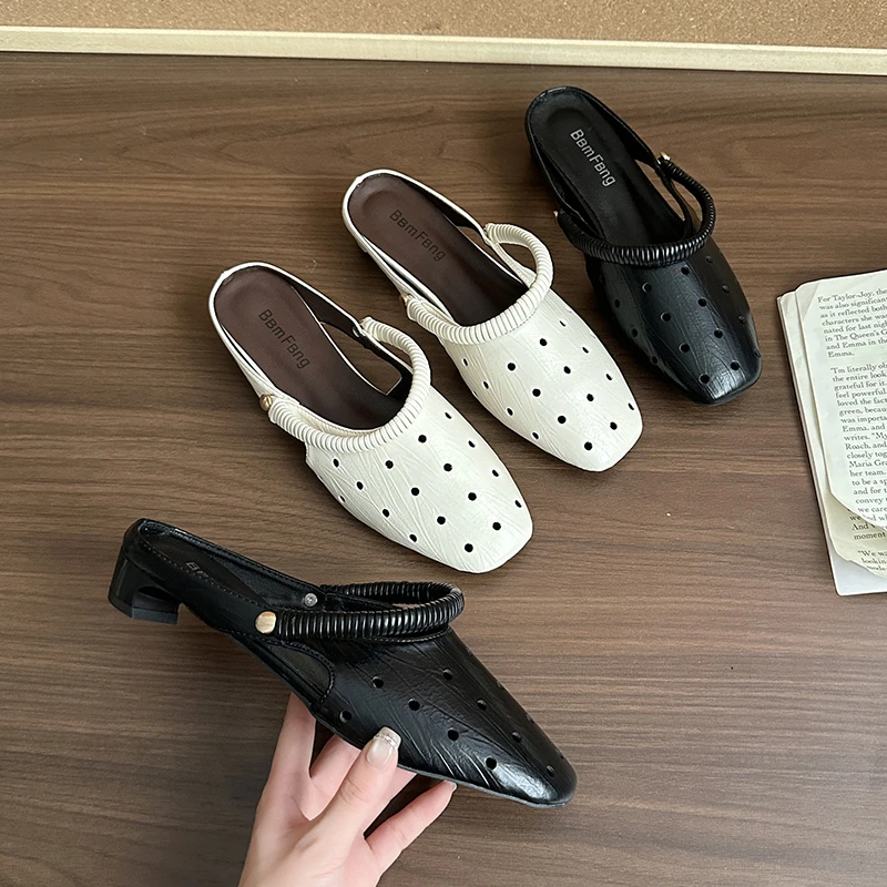 KYLETHOMASW  -  Hollow Women's Sandals Heels Slippers Beach Mules Shoes 2025 Summer Trend Chunky Leather Shoes Casual Flip Flops Mujer Slides