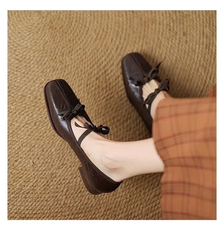 KYLETHOMASW - Mary Jane New Women Shoes Ballet Bow Square Toe Mid Heels Nude Shoes Fashion Casual Elegant Shallow Pumps