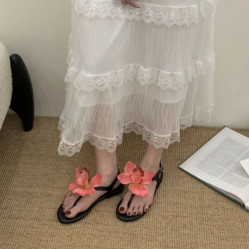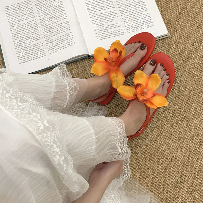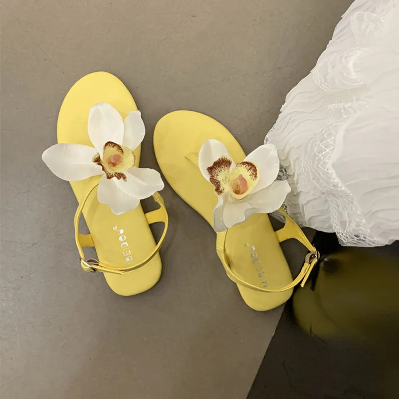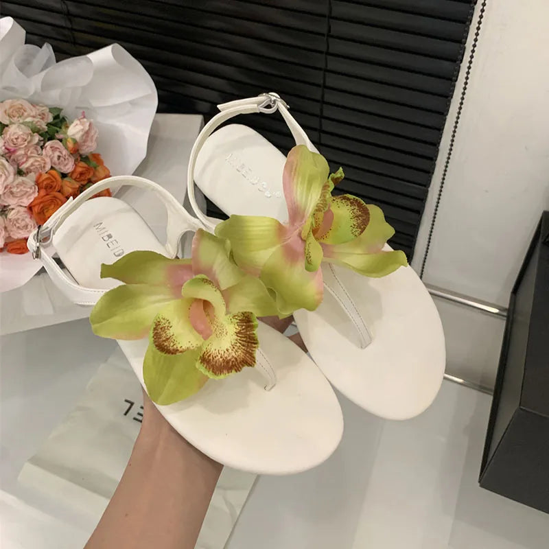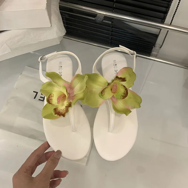 KYLETHOMASW  -  New Female Flats Sandals Shoes For Women Flip Flops Round Toe Fashion Flower Footwear Ankle Buckle Ladies Flats Sandals Shoes
