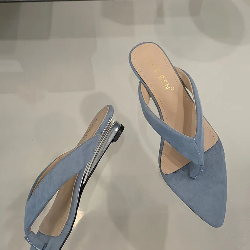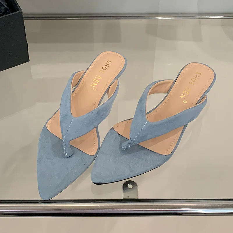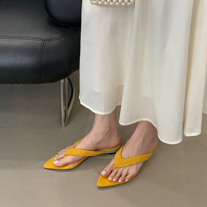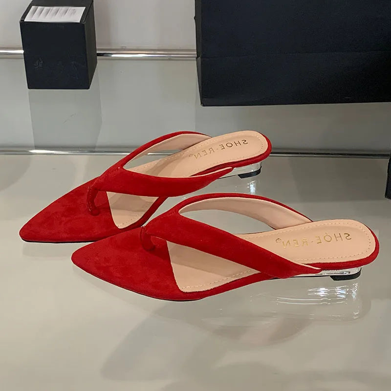 KYLETHOMASW - New In Fashion Pointed Toe Women Wedges Slippers Female Flip flops Slides Ladies Low Heel Wedges Slippers Sandals Shoes Pumps