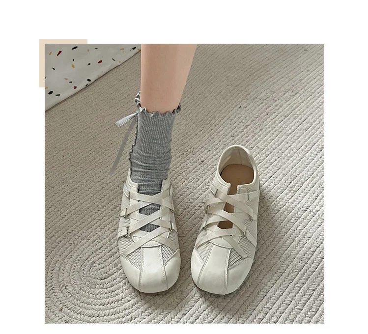 KYLETHOMASW - New Spring Mary Jane Cross Strap Flats Shoes Women Fashion Elegant Round Toe Ladies Comfort Soft Sole Ballerinas Shoes