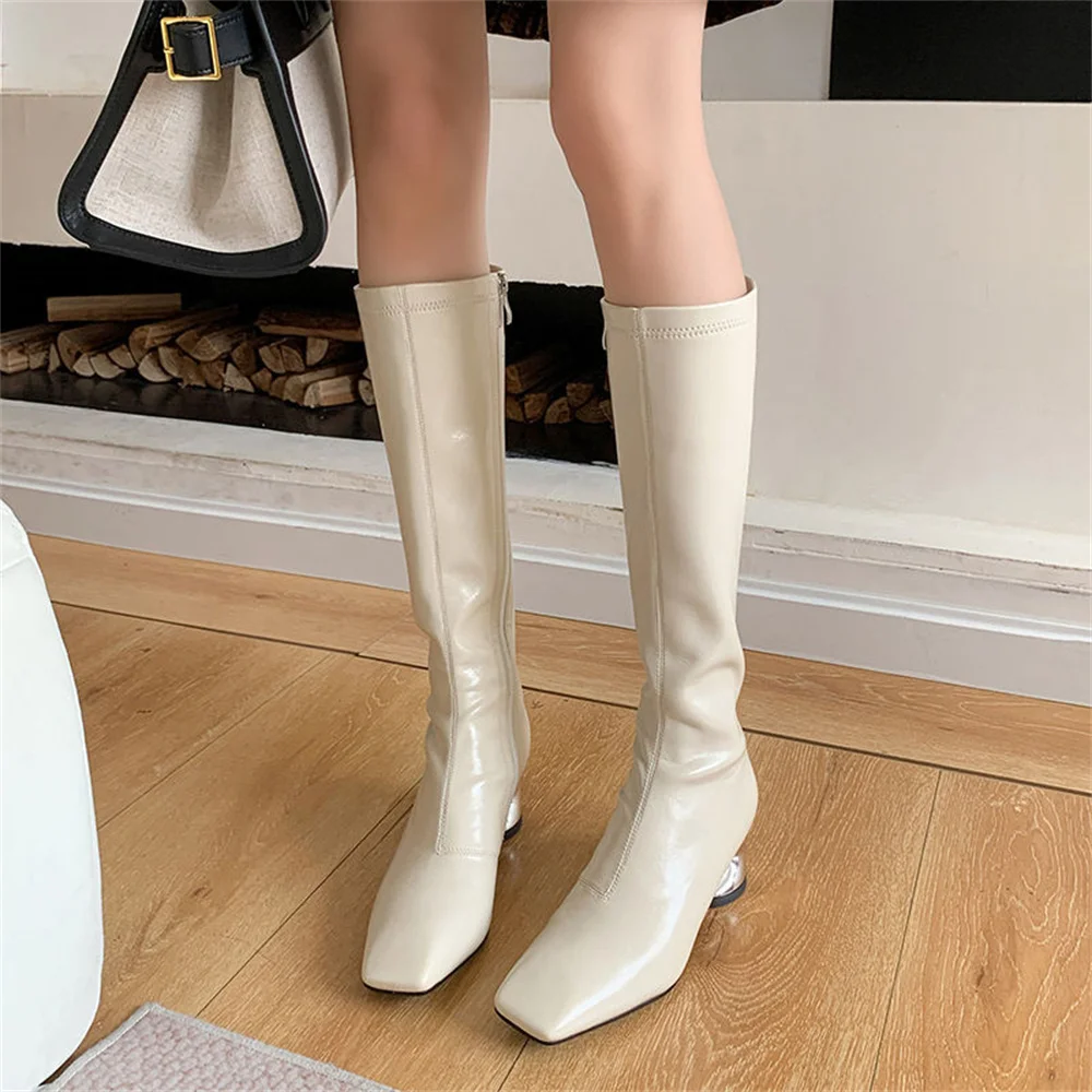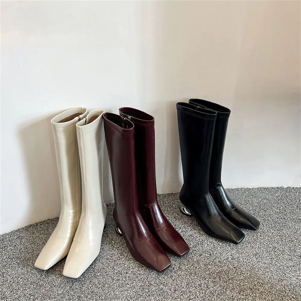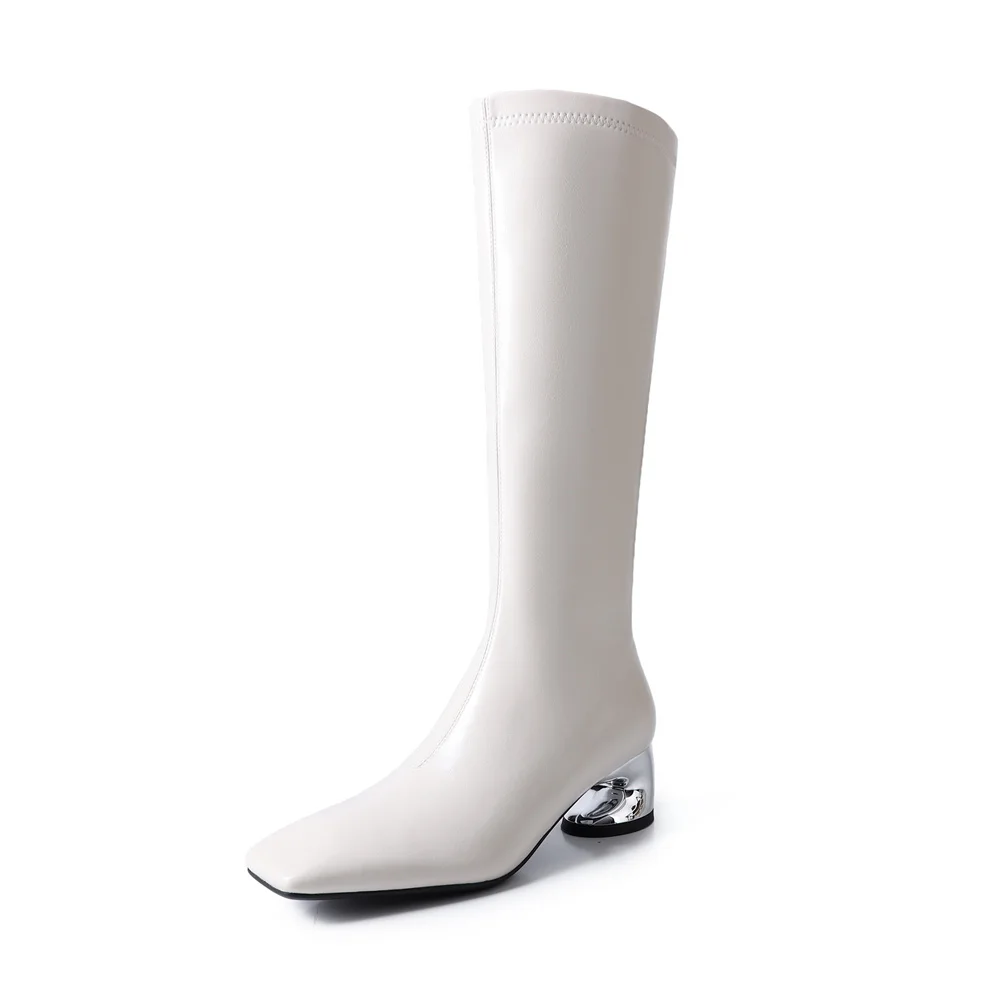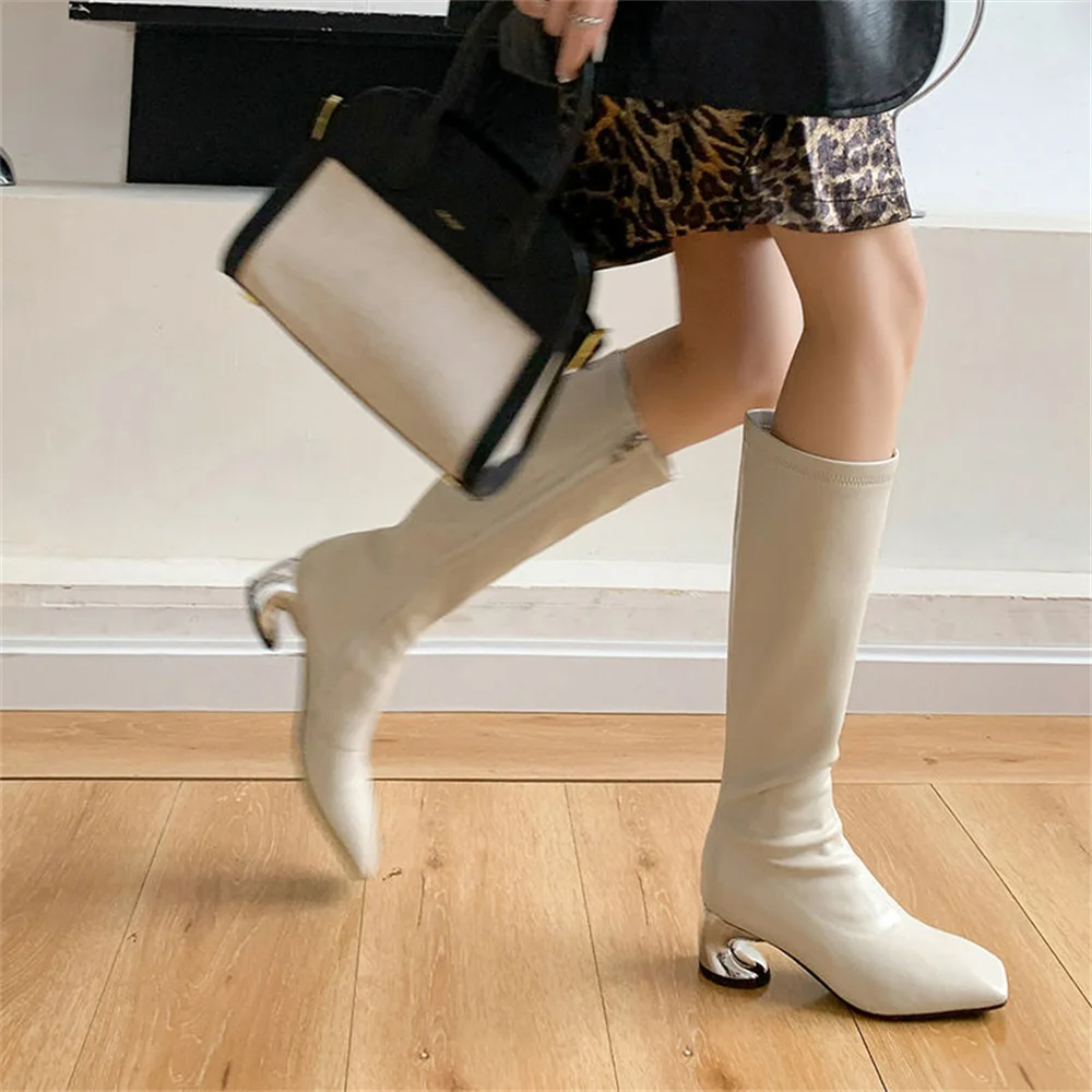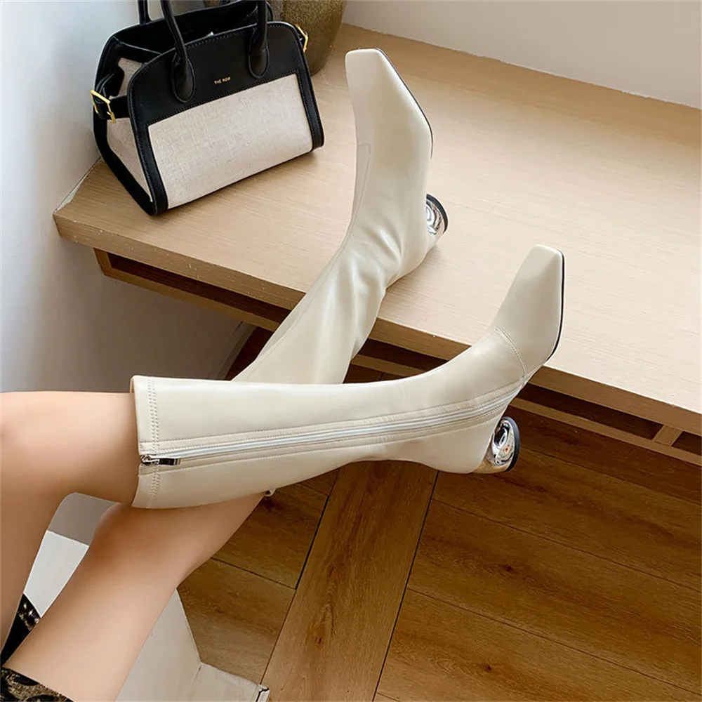 KYLETHOMASW - New Women High Heels Simple Style Warm Autumn Winter Slim Long Shoes Woman Thigh High Knight Boots