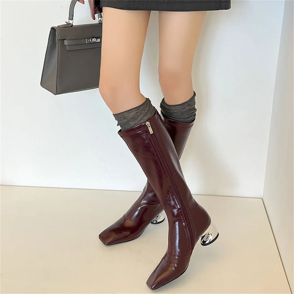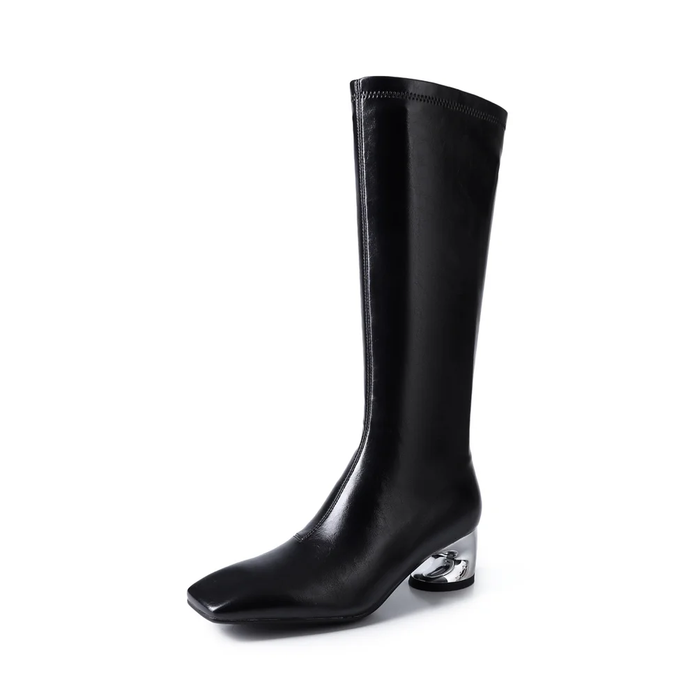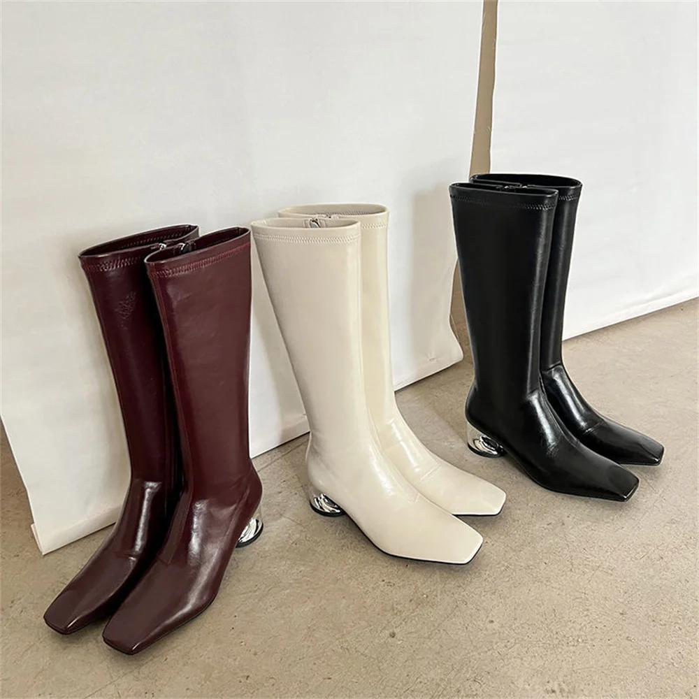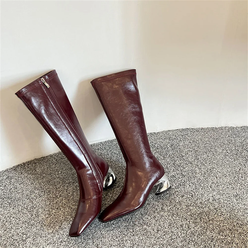 KYLETHOMASW - New Women High Heels Simple Style Warm Autumn Winter Slim Long Shoes Woman Thigh High Knight Boots