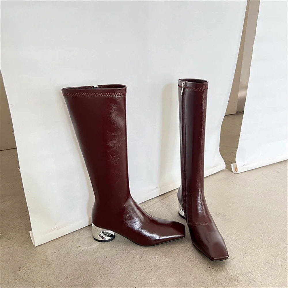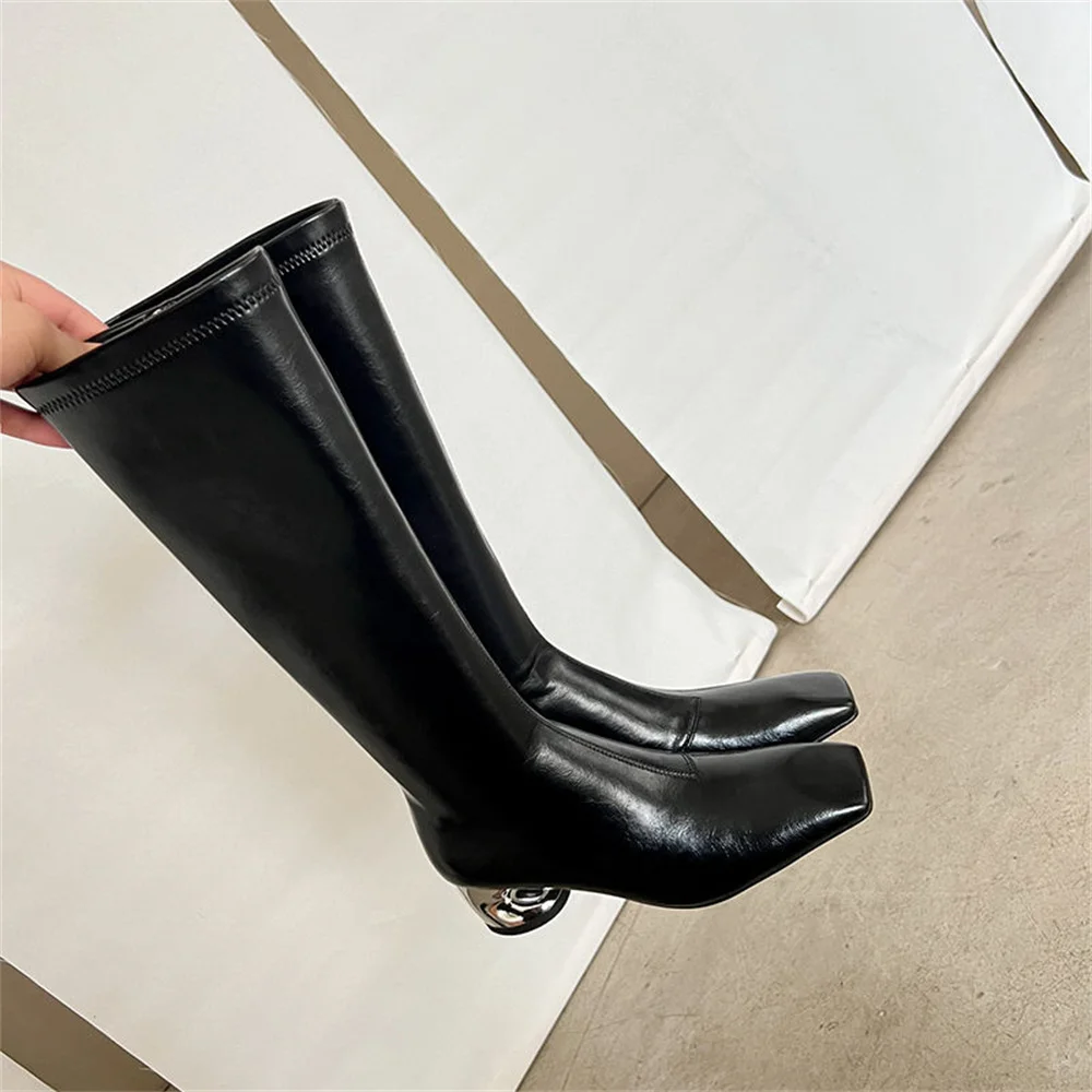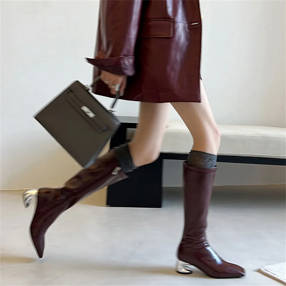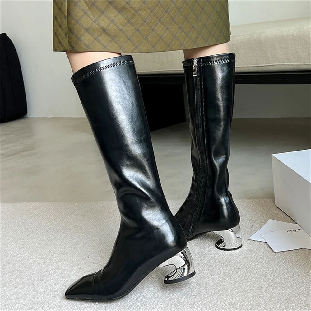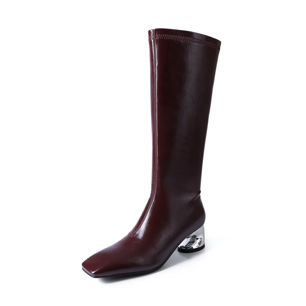 KYLETHOMASW - New Women High Heels Simple Style Warm Autumn Winter Slim Long Shoes Woman Thigh High Knight Boots