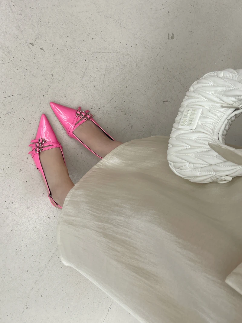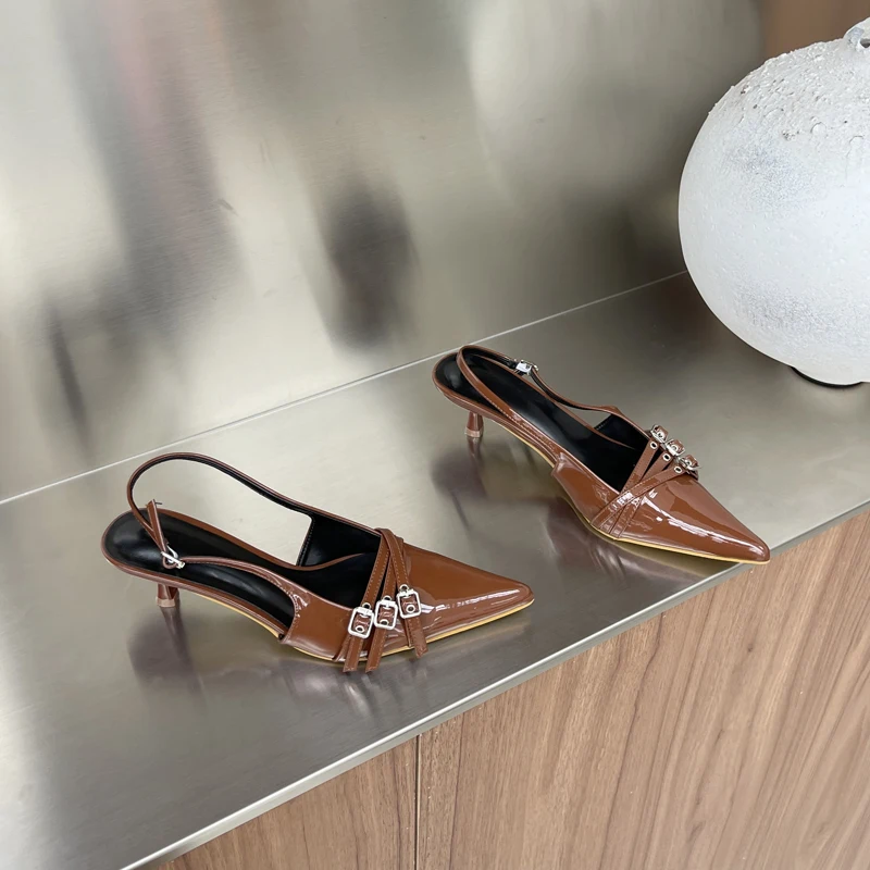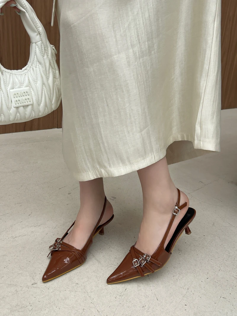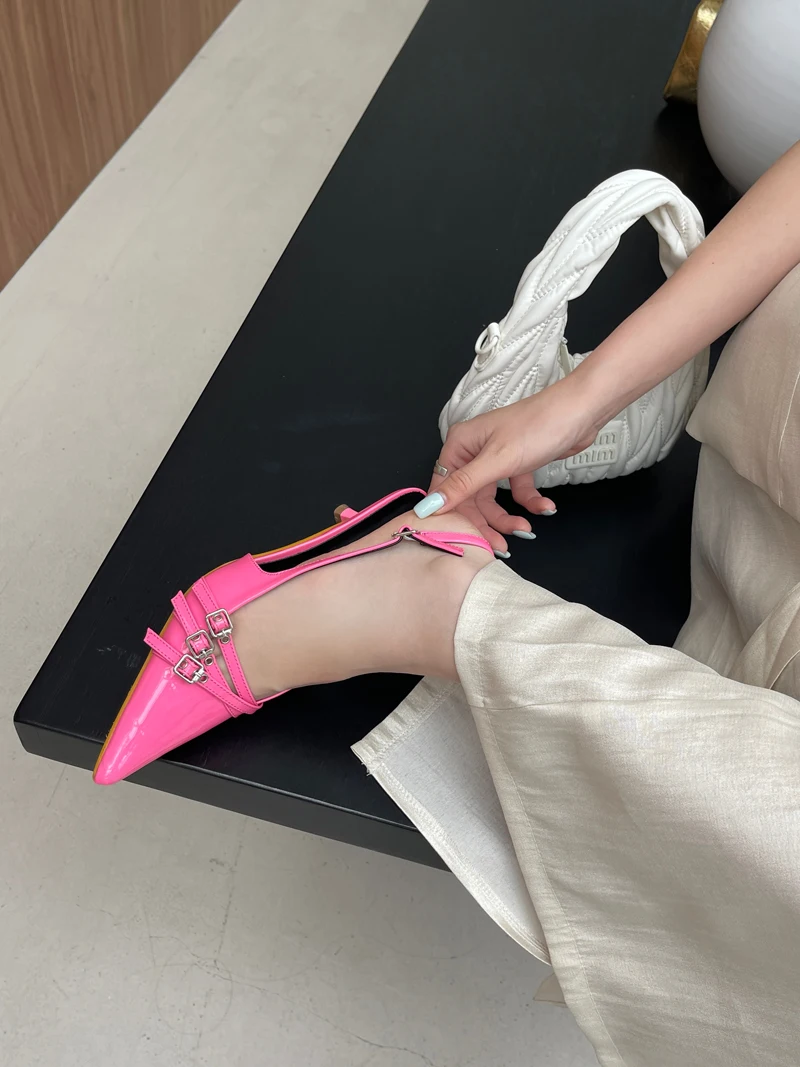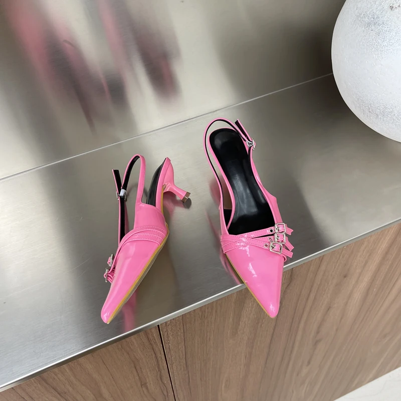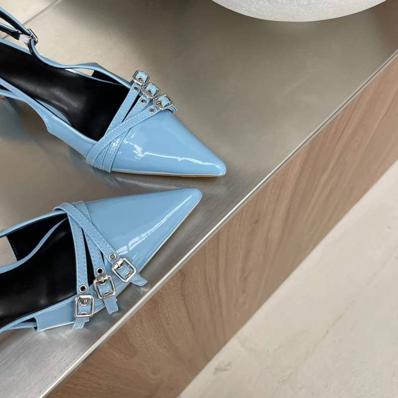 KYLETHOMASW - Orange Ladie Pumps Pink High Heels Sexy Pointed Toe Slingback Shoes Women Belt Buckle Low Heel Summer Office Shoes Blue