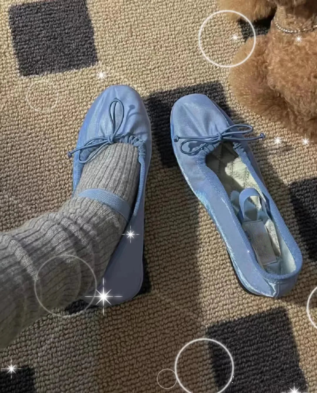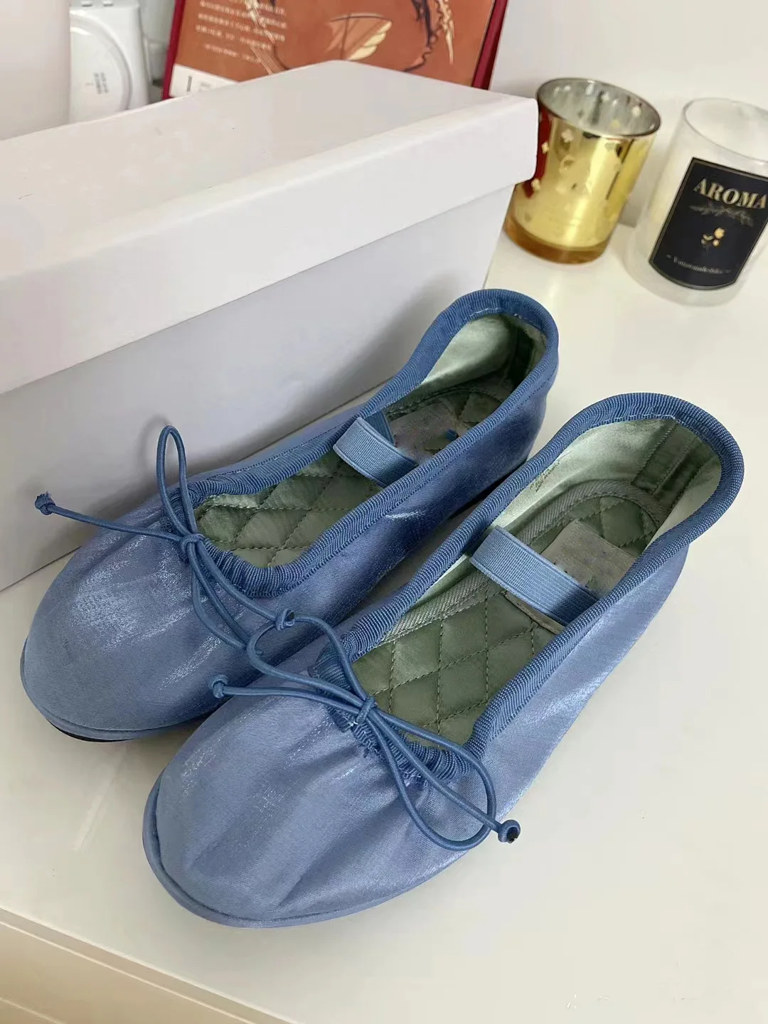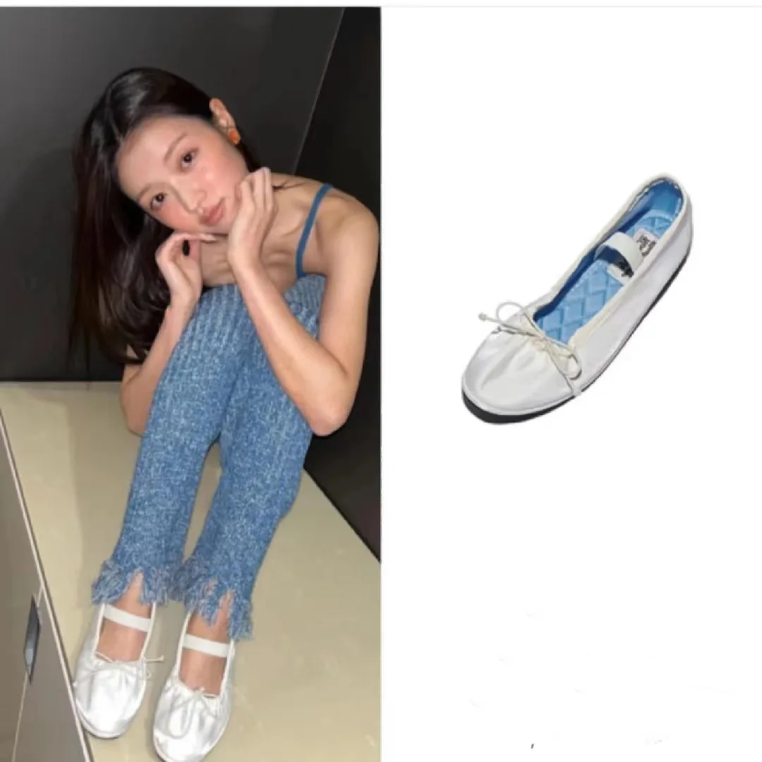 KYLETHOMASW - Rarely-seen ballet shoes for women - new style with bow ties and satin fabric Mary Jane flats with flat soles, single shoes.