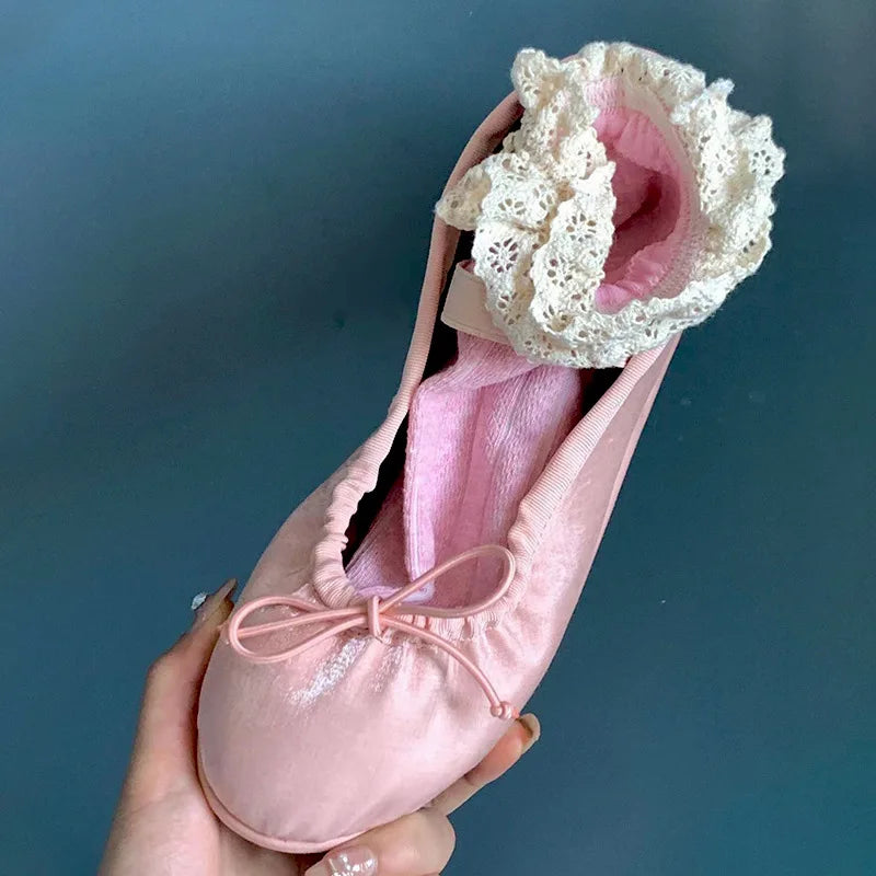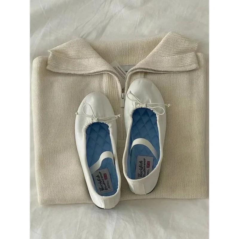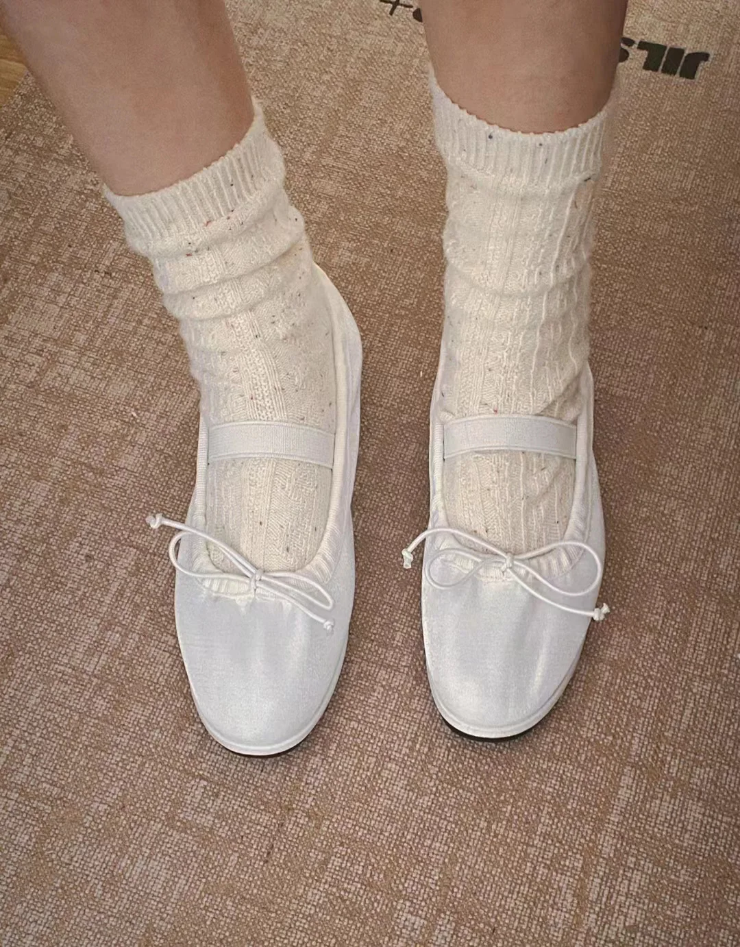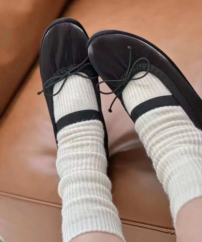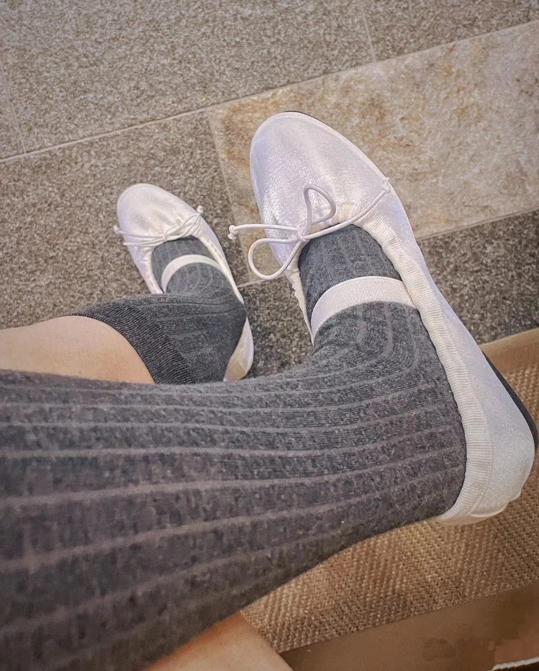 KYLETHOMASW - Rarely-seen ballet shoes for women - new style with bow ties and satin fabric Mary Jane flats with flat soles, single shoes.
