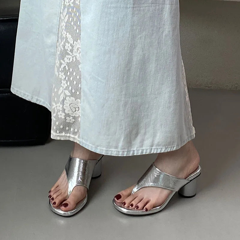 KYLETHOMASW - Red Footwear Fashion Round Heels Ladies Slippers Female Flip flops Elegant Women Heeled Slippers Sandals Slides Shoes Pumps