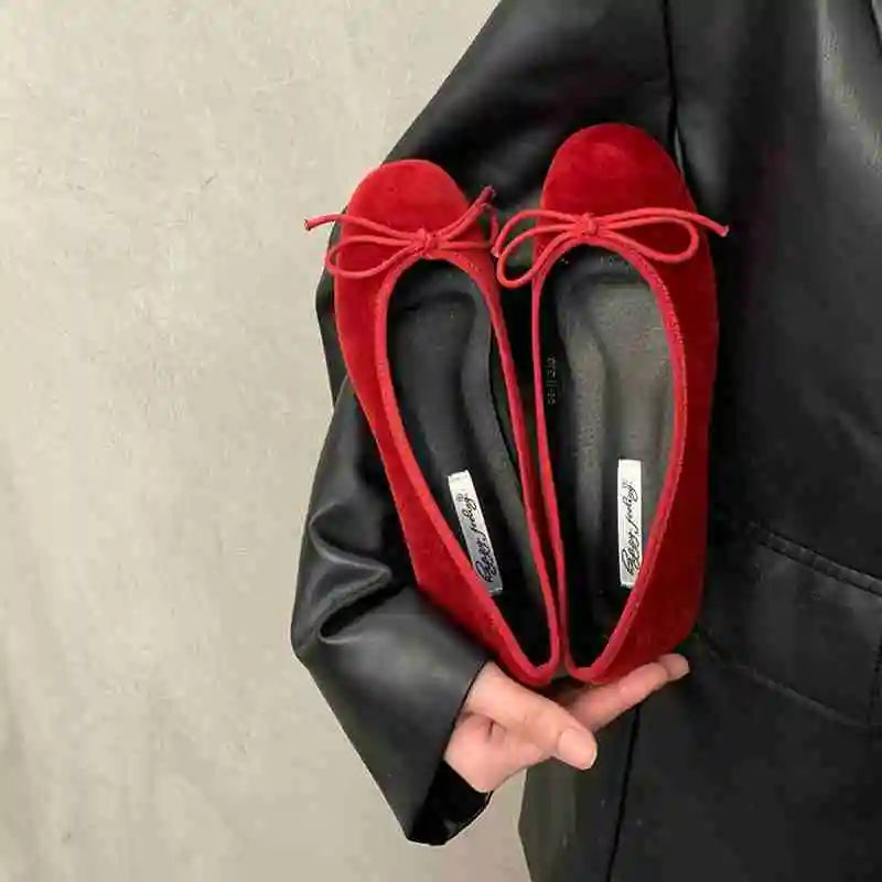KYLETHOMASW - Red New Women Flat Shoes Fashion Shallow Slip On Ladies Elegant Ballerinas Shoes Soft Flat Heel Outdoor Casual Mary Jane