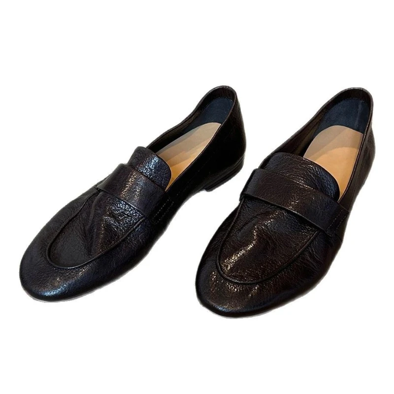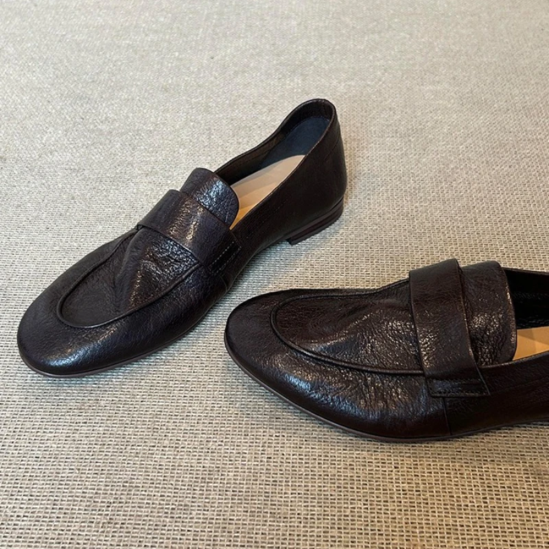KYLETHOMASW - Retro Black Soft Leather Brand Designer Flat Pumps Women Comfort Concise Loafers Outdoor Commuter Office Shoes Zapatos De Mujer