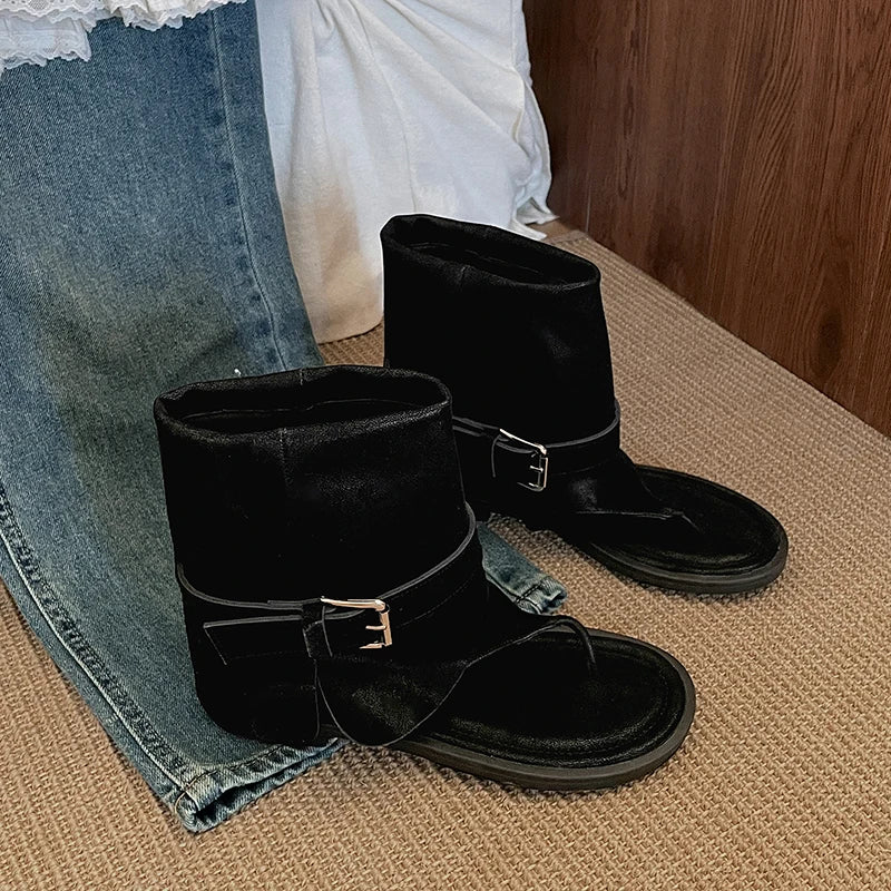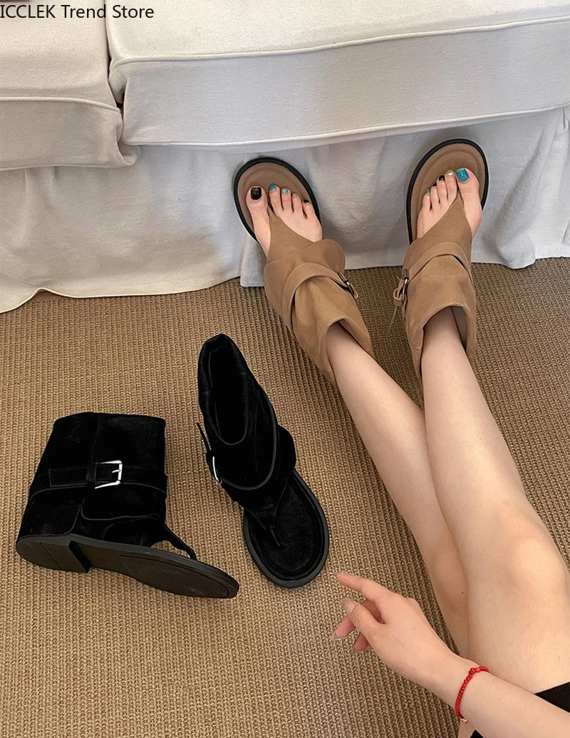 KYLETHOMASW - Retro Style Clip Toe Women Ankle Boots Spring Autumn Fashion Shoes Ladies Causal Slip On Sandalias Booties