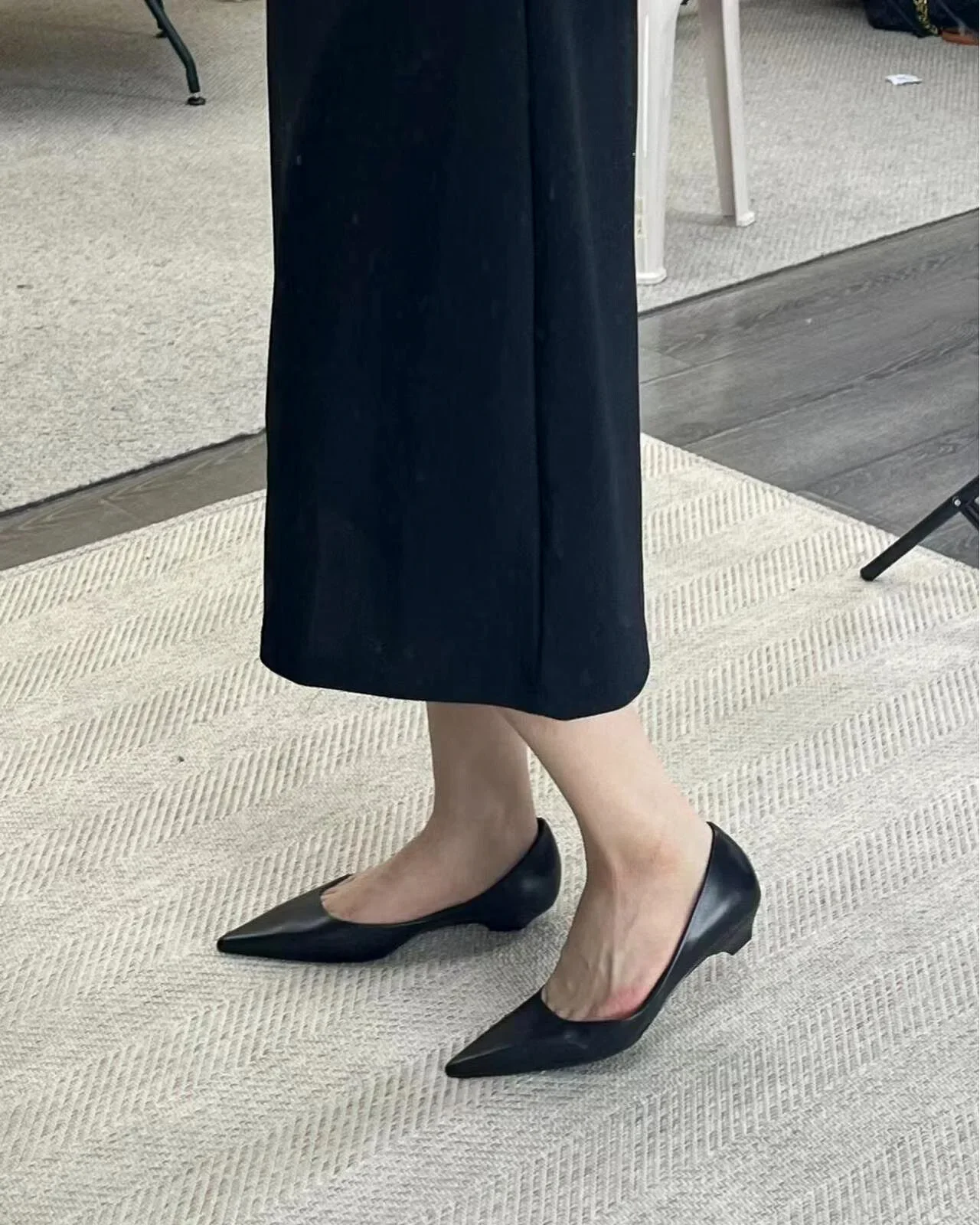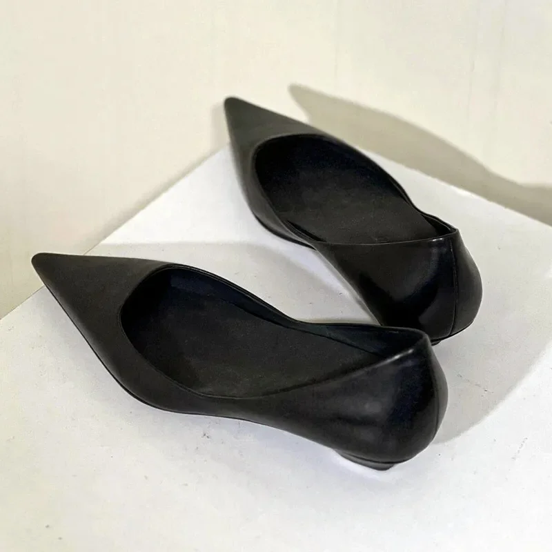 KYLETHOMASW  -  Sexy Pointed Toe Leather Flat Shoes Women Tapered Low Heel Pumps Black Shallow Mouth Design Comfort Casual Office Shoe for Women