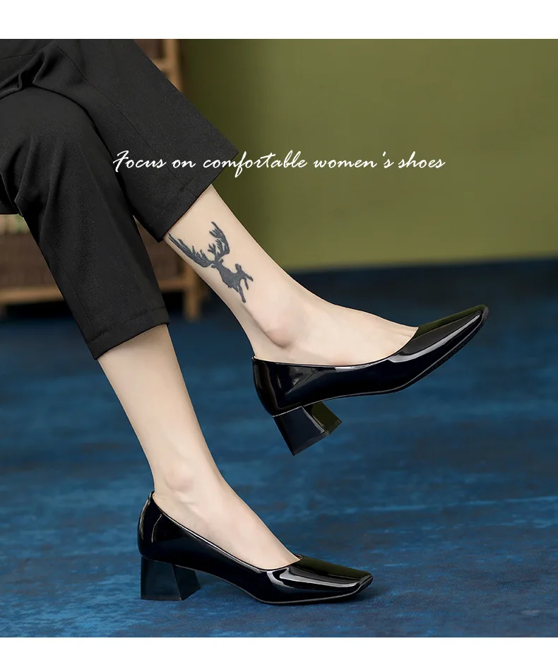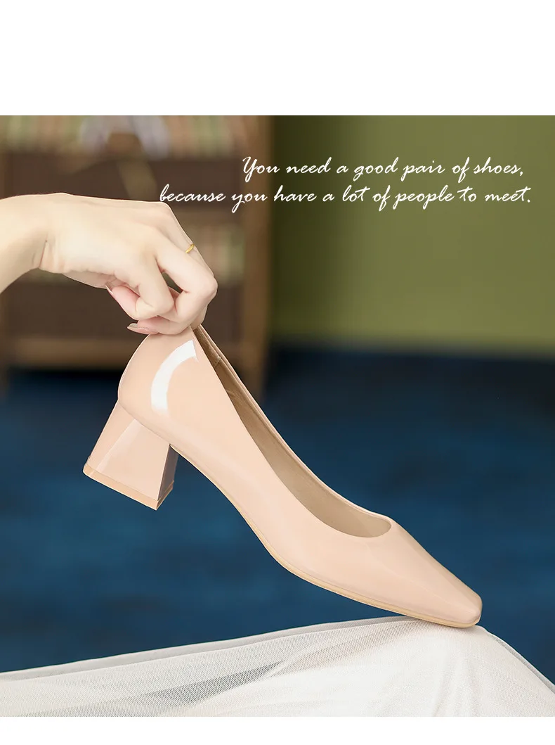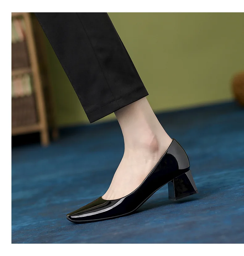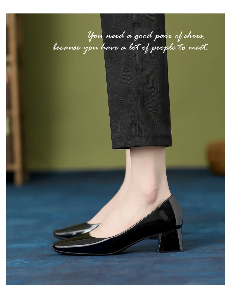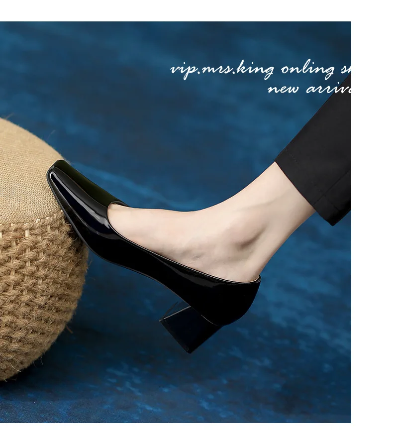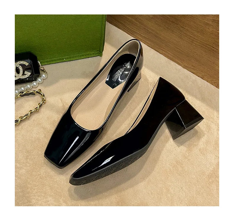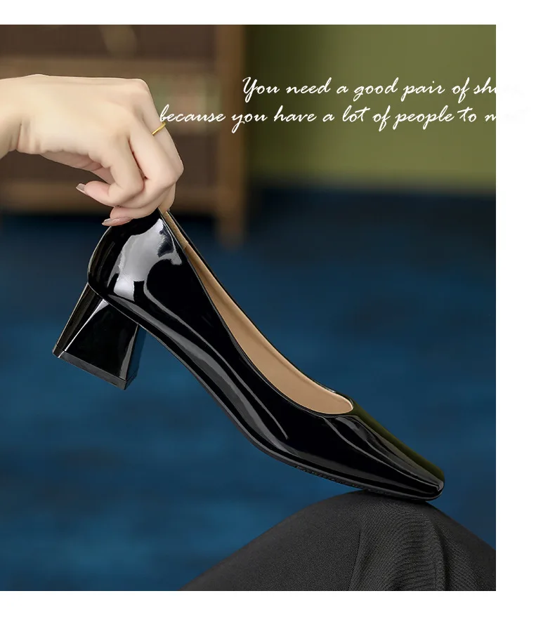 KYLETHOMASW - Solid Japanned Leather Pumps Woman Block High Heels Shoes OL Ladies Dress Work Escarpins Femmes Designer Luxury Tacones Mujer