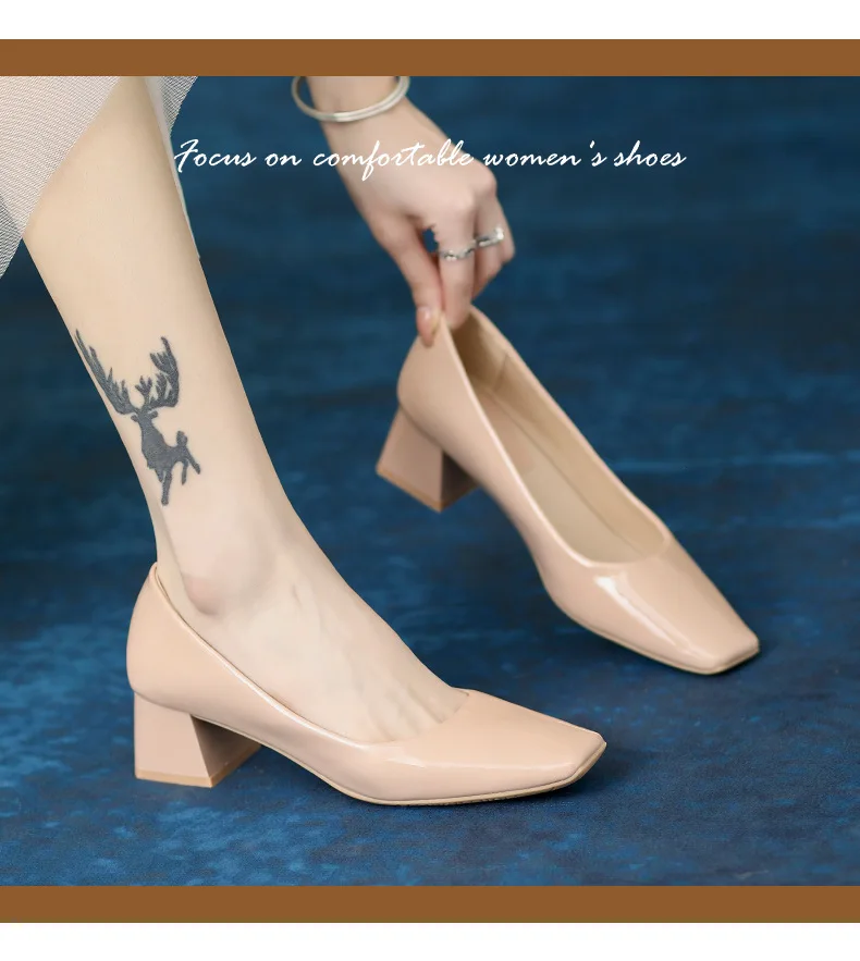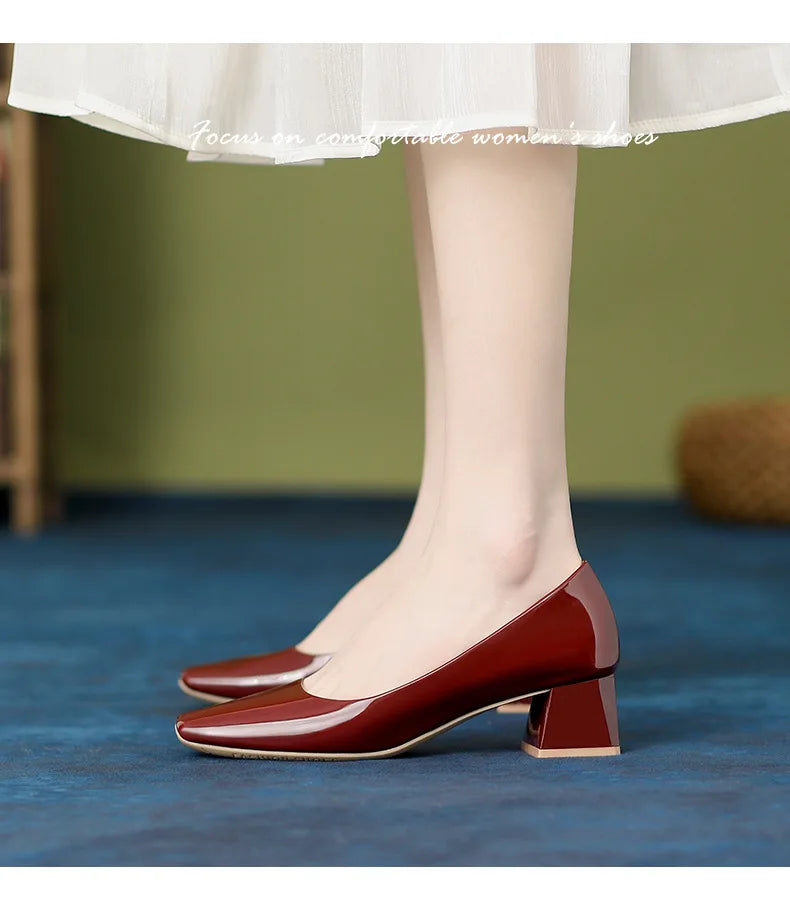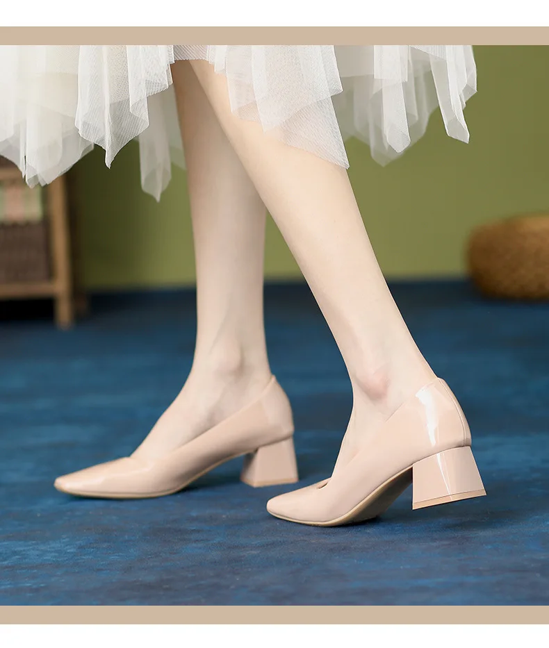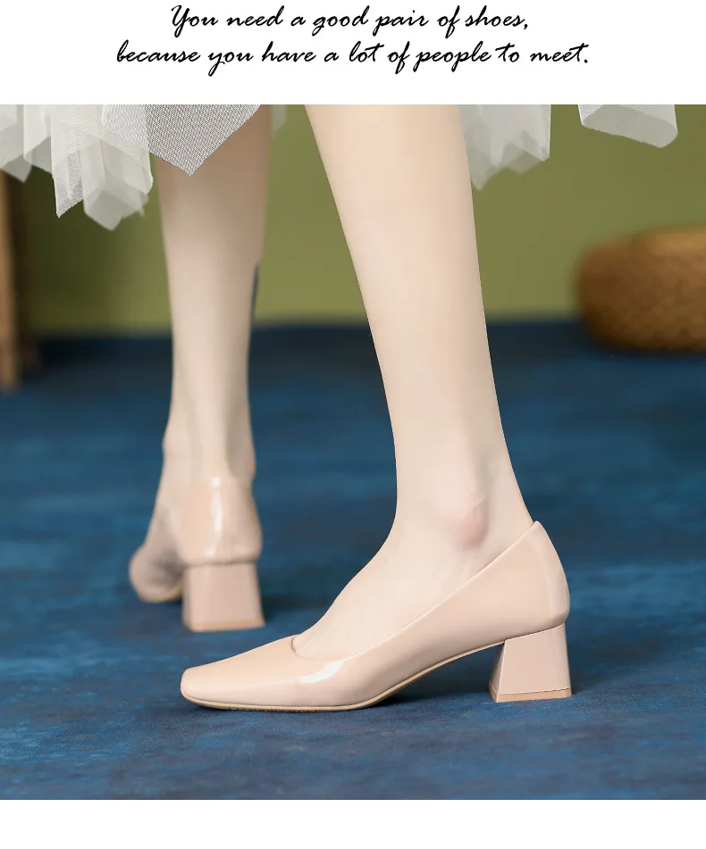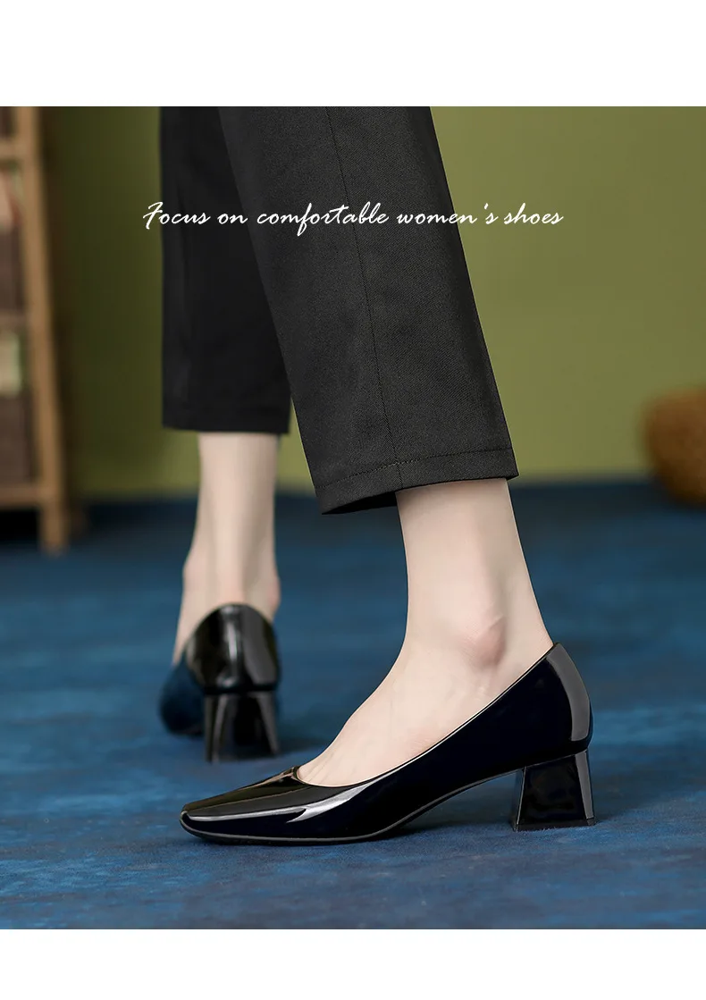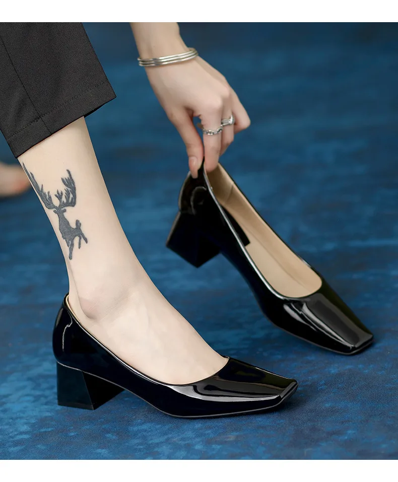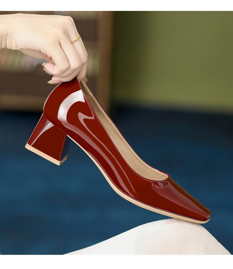 KYLETHOMASW - Solid Japanned Leather Pumps Woman Block High Heels Shoes OL Ladies Dress Work Escarpins Femmes Designer Luxury Tacones Mujer
