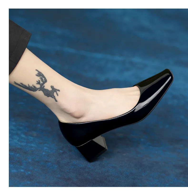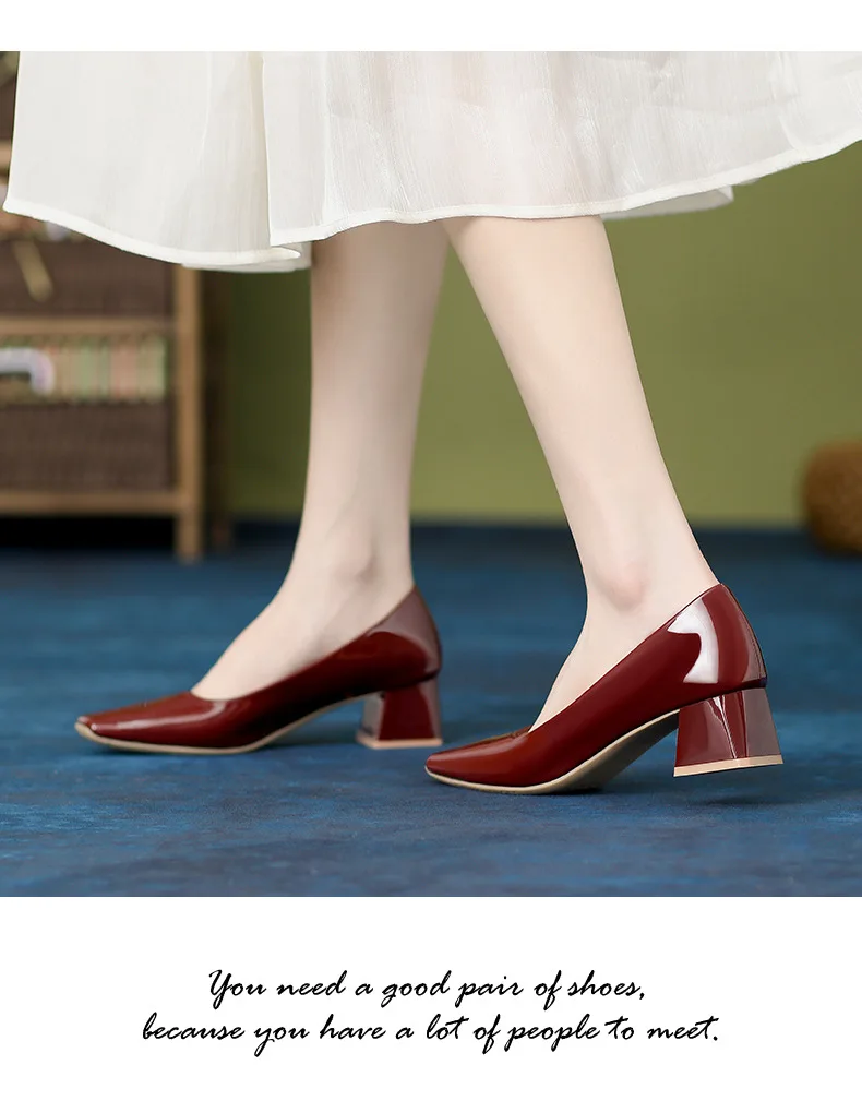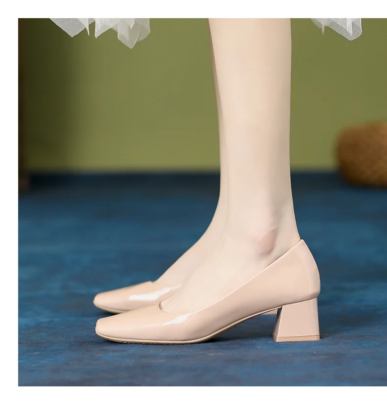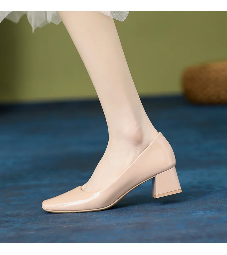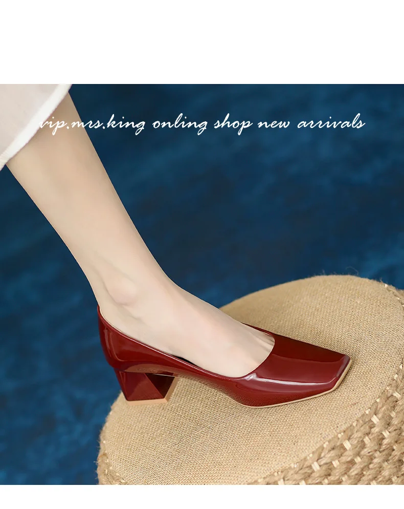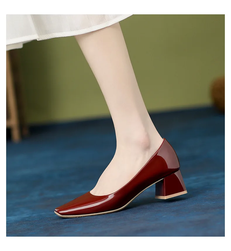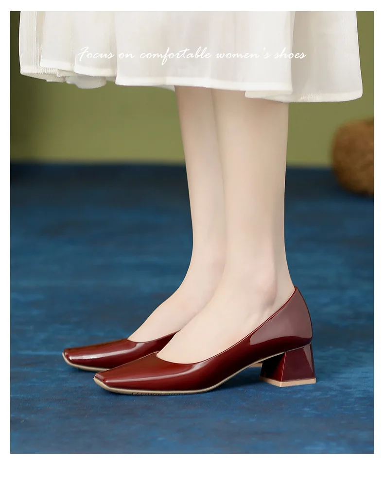 KYLETHOMASW - Solid Japanned Leather Pumps Woman Block High Heels Shoes OL Ladies Dress Work Escarpins Femmes Designer Luxury Tacones Mujer
