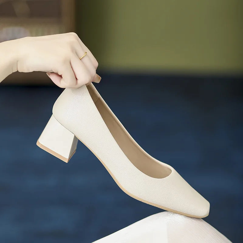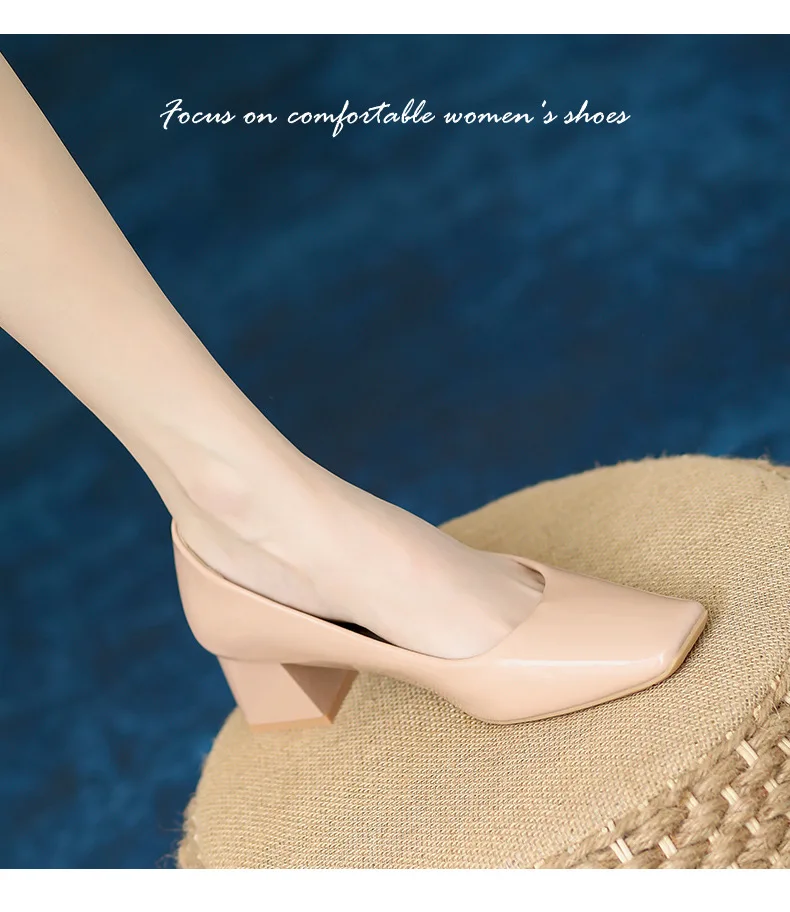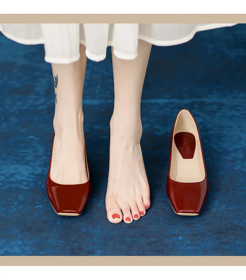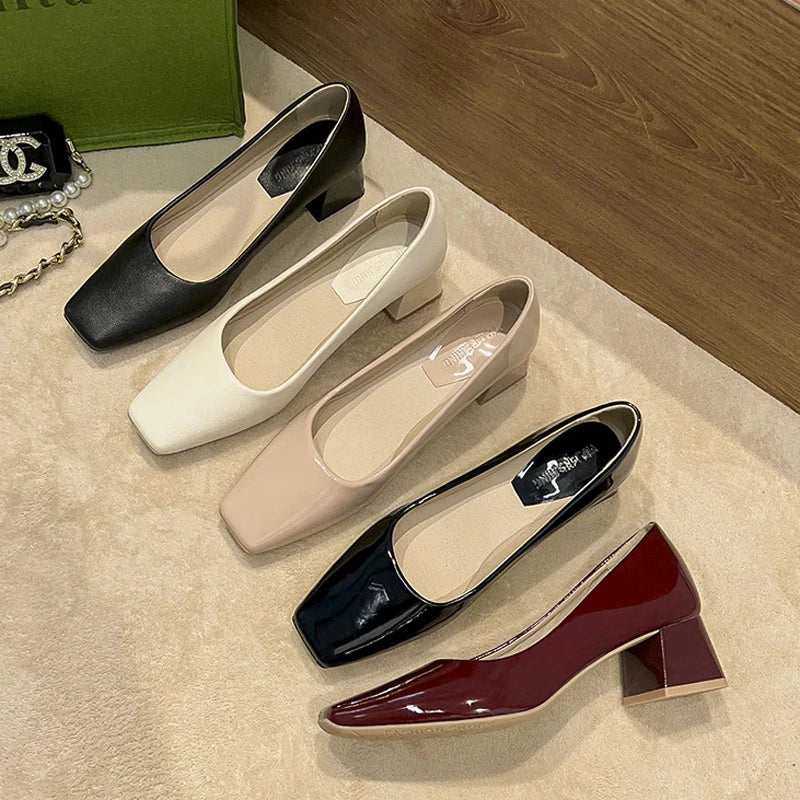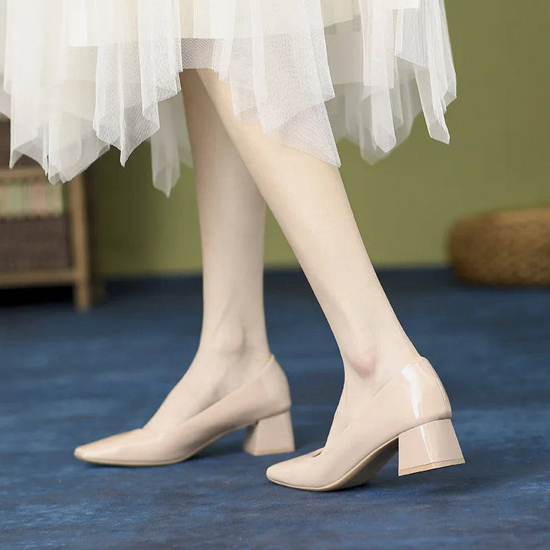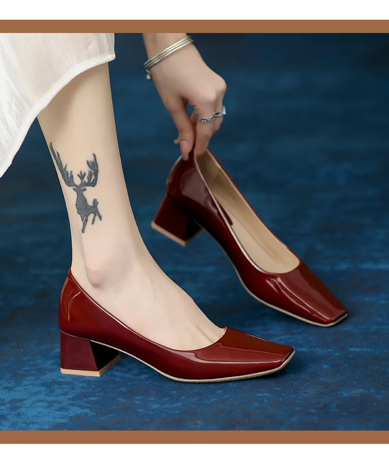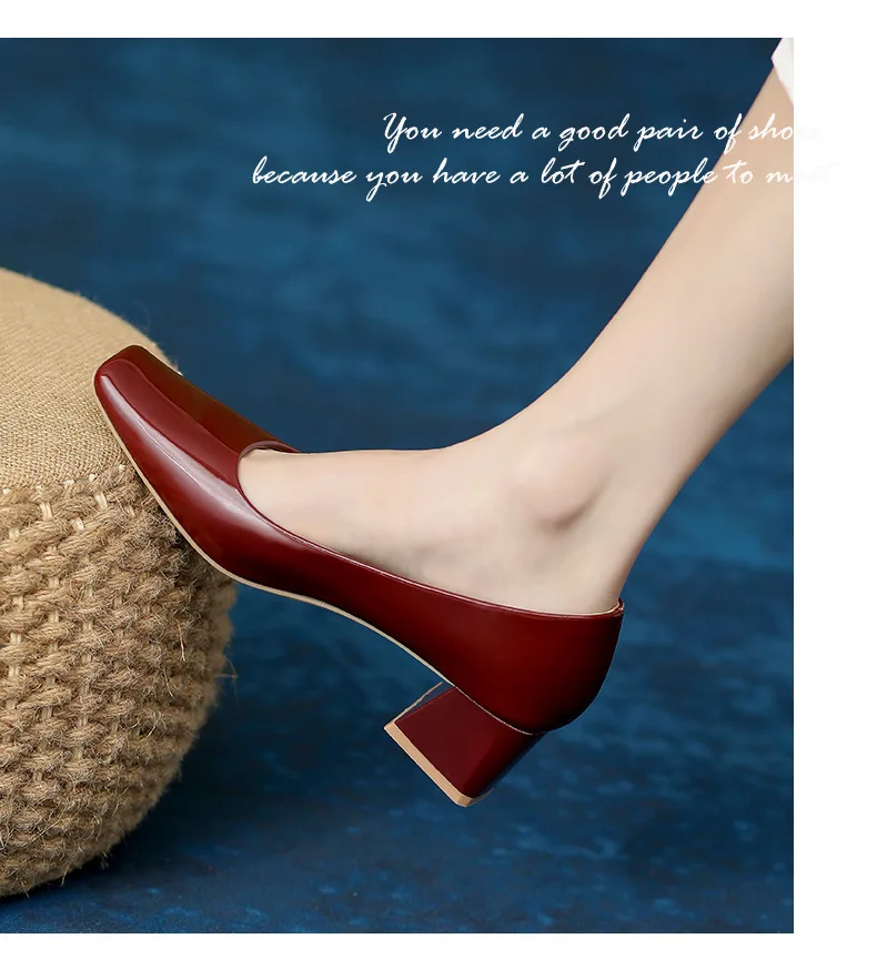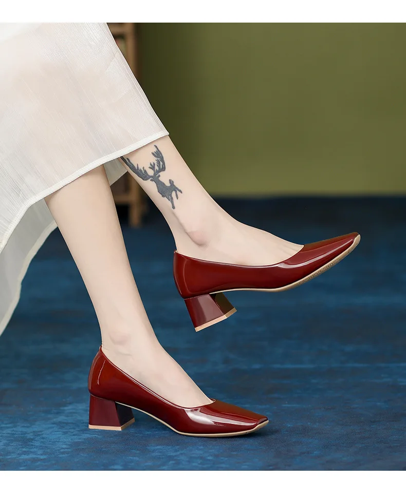 KYLETHOMASW - Solid Japanned Leather Pumps Woman Block High Heels Shoes OL Ladies Dress Work Escarpins Femmes Designer Luxury Tacones Mujer