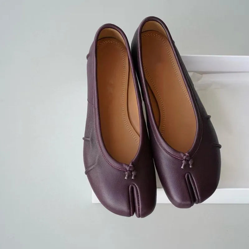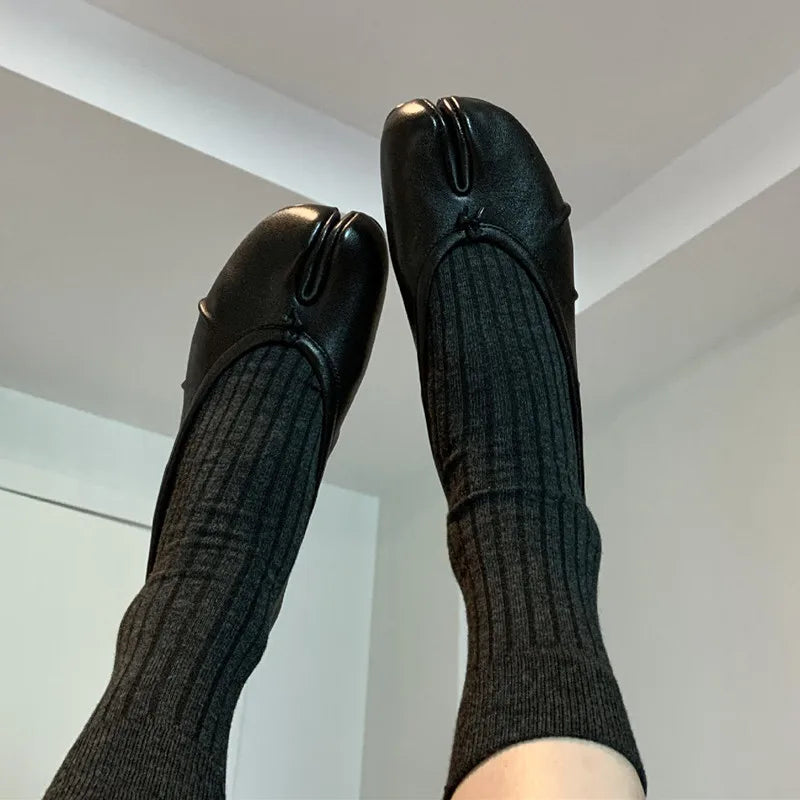 KYLETHOMASW - Split Toe Women Ballet Flats Fashion Tabi Shoes Casual Slip-on Loafers Ladies Pleated Leather Espadrilles Zapatillas Mujer