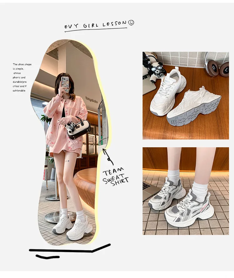 KYLETHOMASW - Sports Shoes Women Sneakers 2025 Spring New Style, Thick Sole Height Increasing, Versatile And Walking Shoes Casual Sports Shoes
