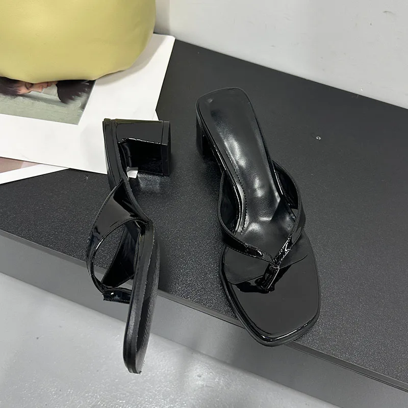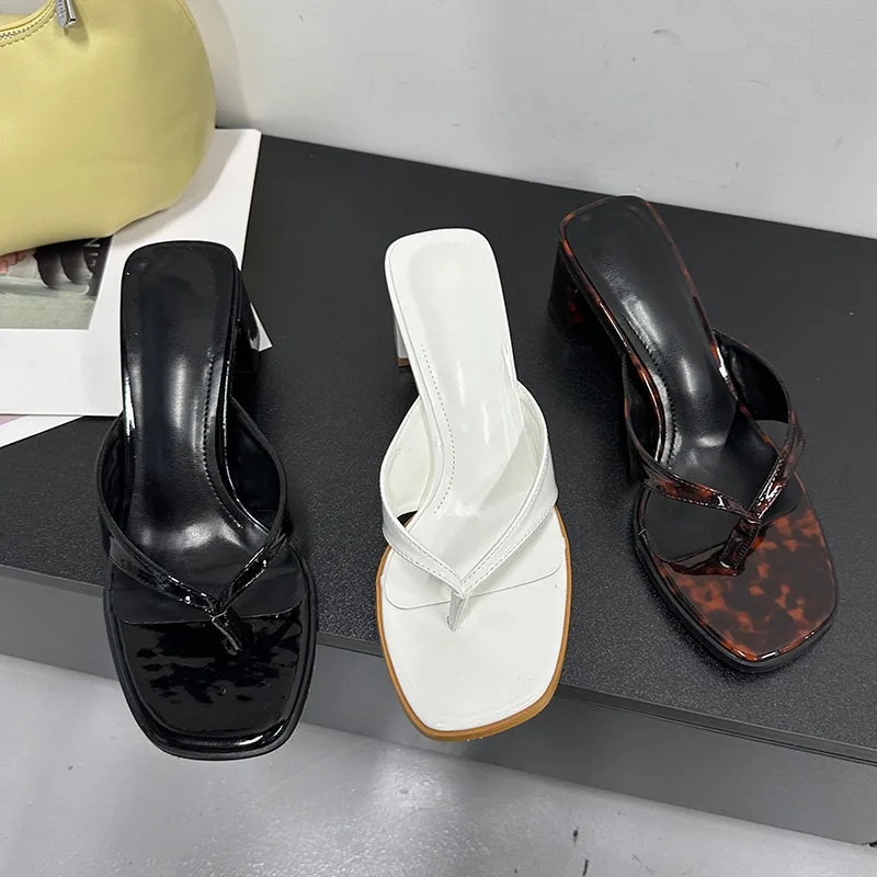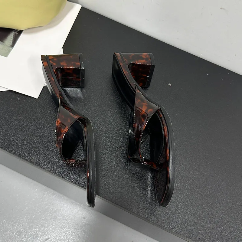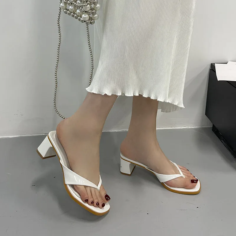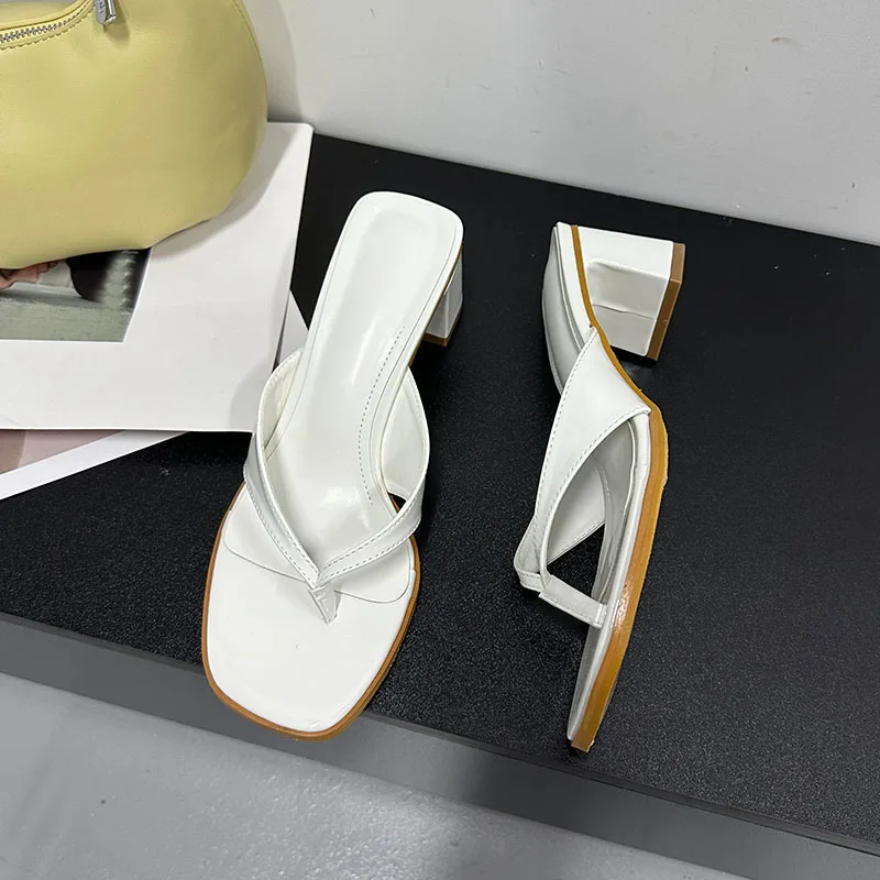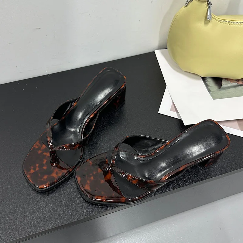 KYLETHOMASW - Spring Summer Women Heeled Slippers Shoes Pumps Fashion Shallow Ladies Square Heels Slippers Slides Female Flip flops Sandals