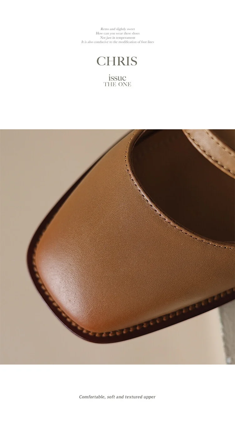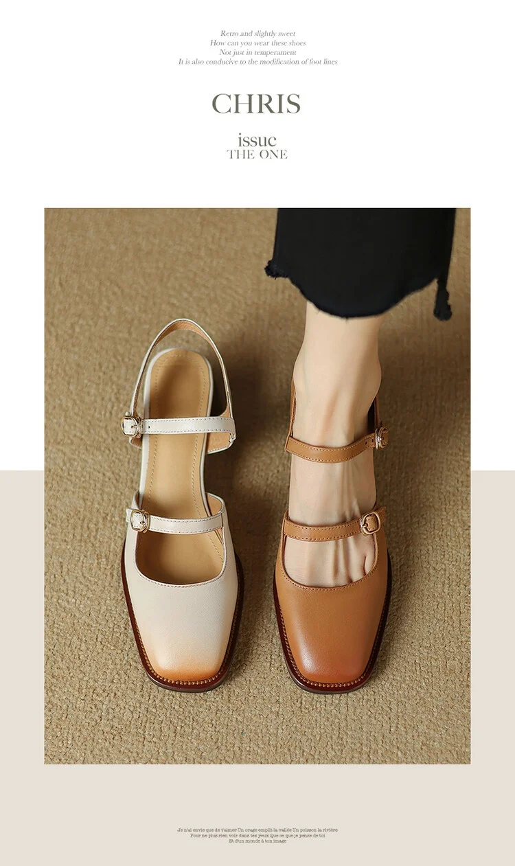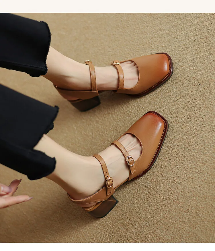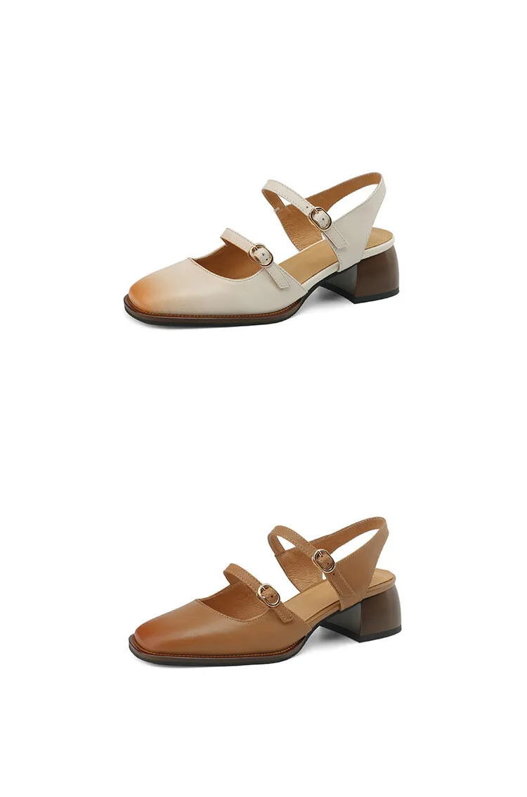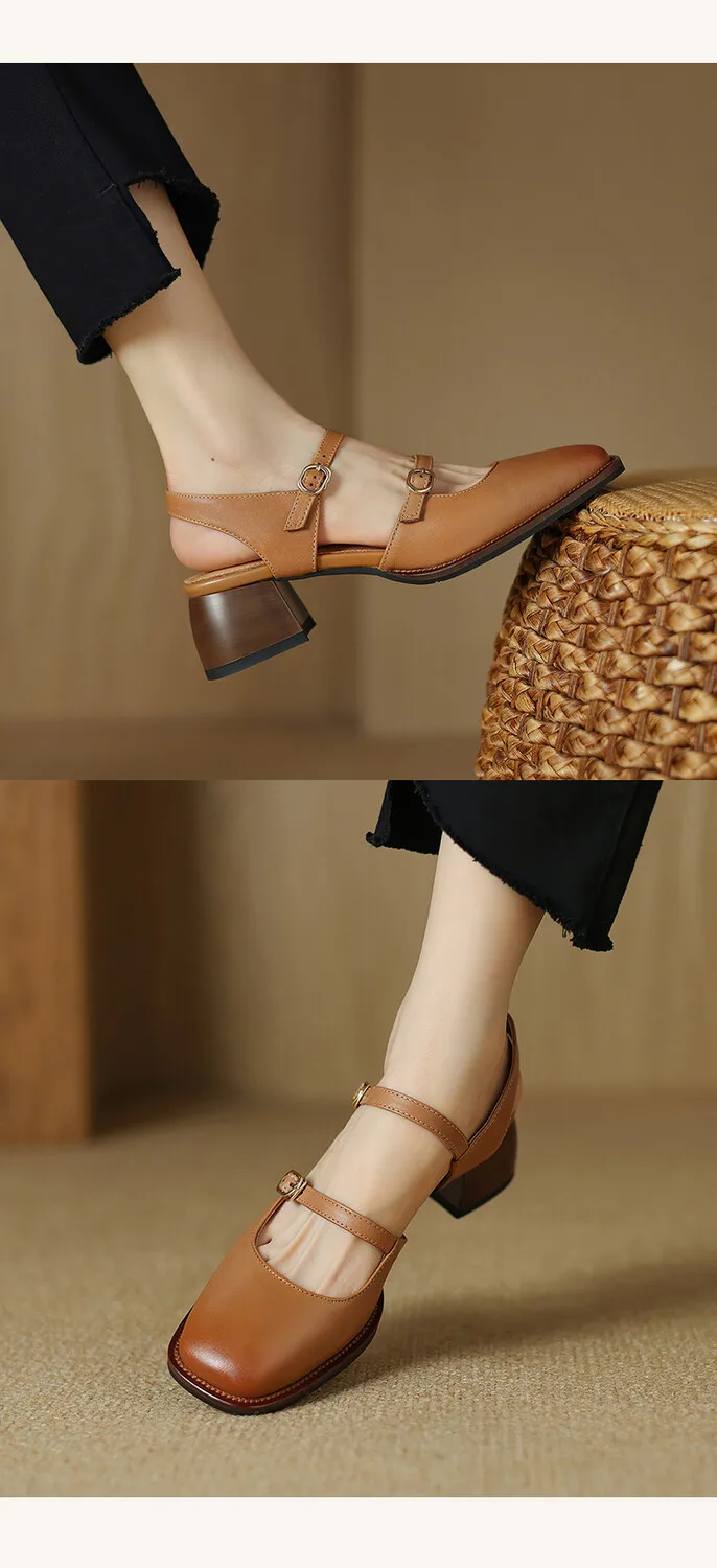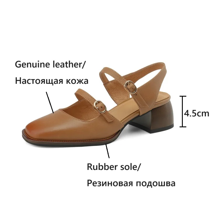 Kylethomasw Summer Women Sandals Genuine Leather Shoes for Women Square Toe Chunky Heel Plus Size Shoes Cover Toe Slingback Designer Sandals