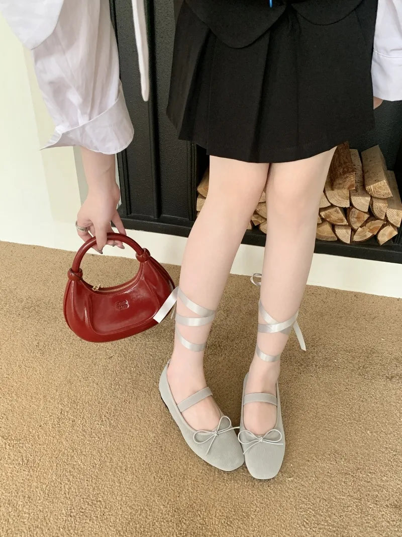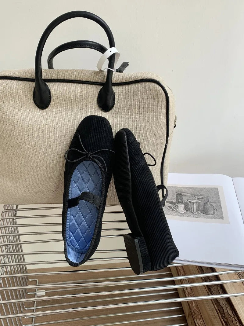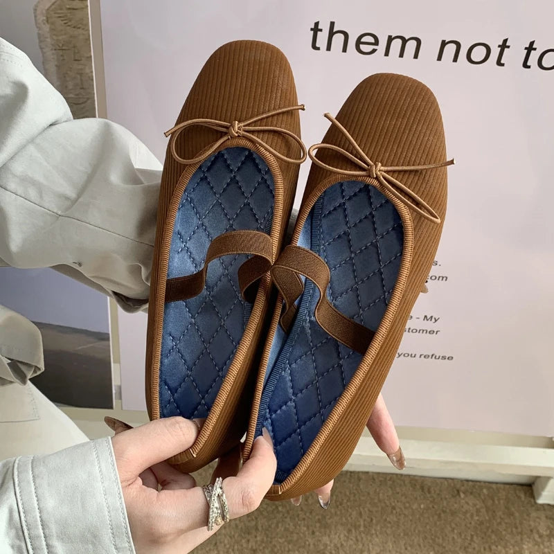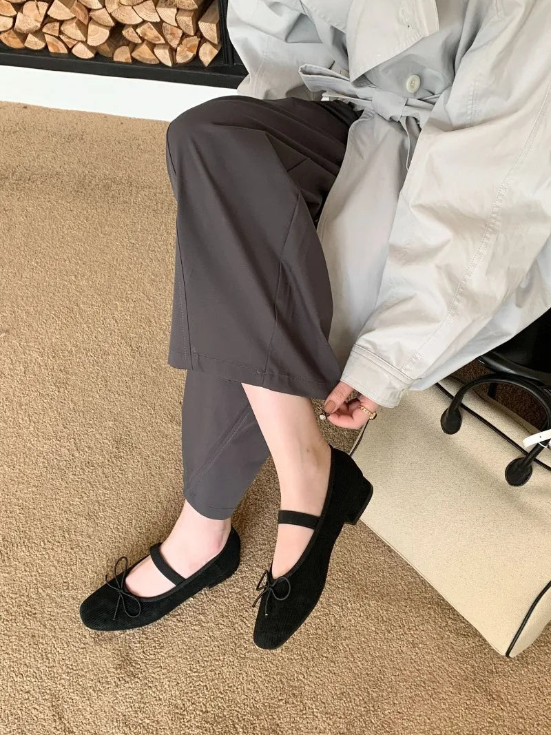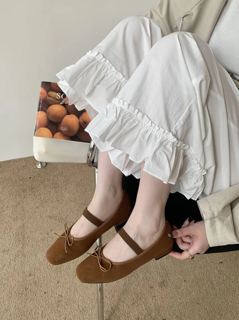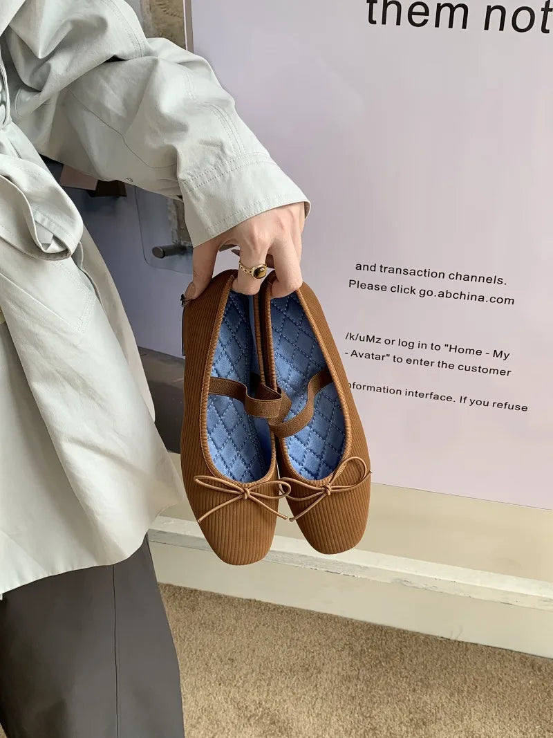 KYLETHOMASW - Sweet Butterfly Knot Stripe Design Mary Jane Shoes Women Comfortable Suede Elastic Band Casual Flats Elegant Brand Designer Shoe