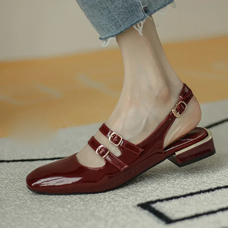 Kylethomasw Women Sandals Summer Shoes Woman Flats Double Buckle Mary Janes Shoes Patent Leather Dress Shoes Back Strap Zapatos Mujer