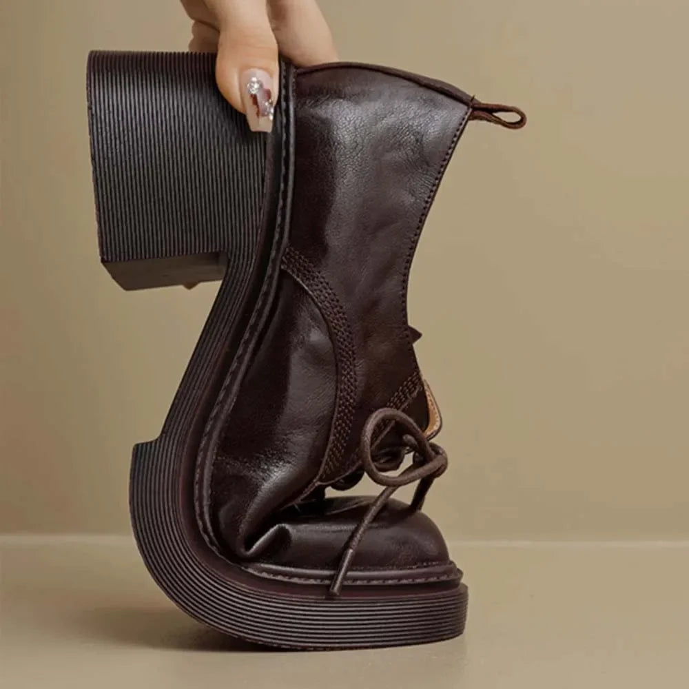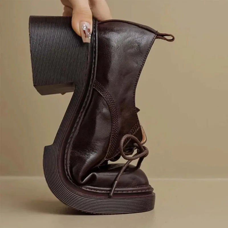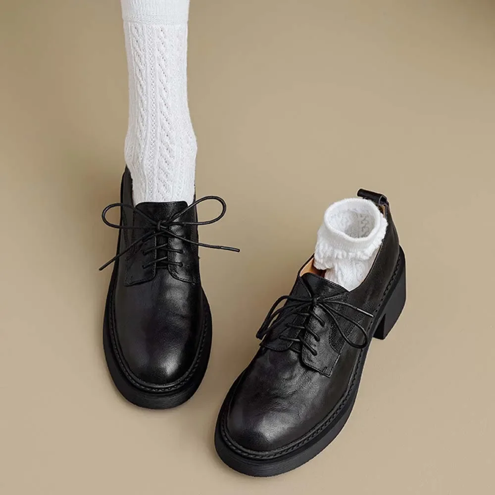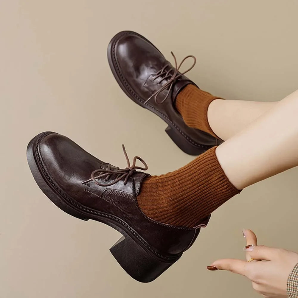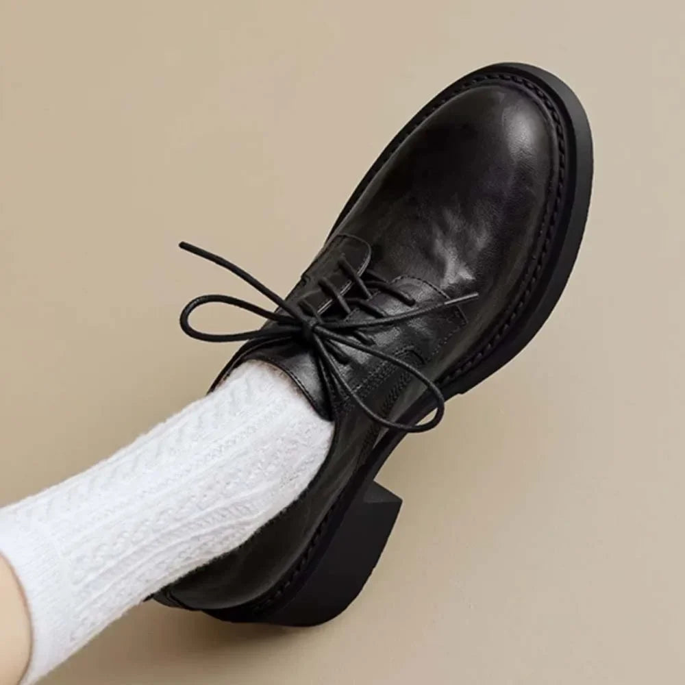 KYLETHOMASW - Womens Cowhide Lace Up Flat Shoes Oxford Round Toe Retro British High-Quality Soft Comfortable All Season Daily Shoes