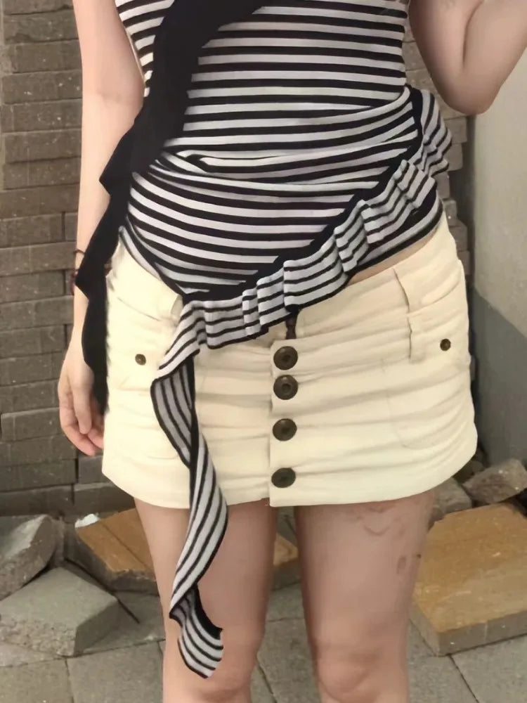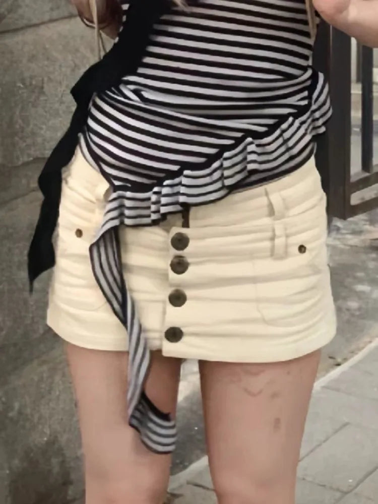 KYLETHOMASW  -  American Single Breasted Denim Skirts Y2k Sexy Low-waisted Bodycon Skirt Forwomen Summer New All-match Faldas Mujer