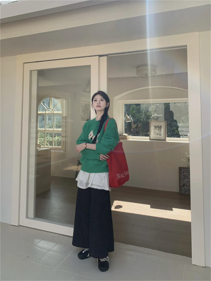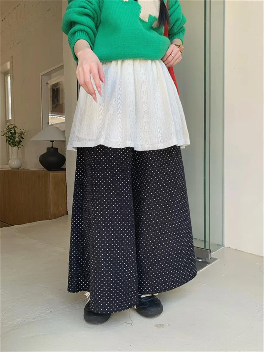 KYLETHOMASW - Corduroy Straight Trousers Women Polka Dot Casual Knitted Sweaters Sweet Skirt Over Pants 2025 Daily New Slim Spring