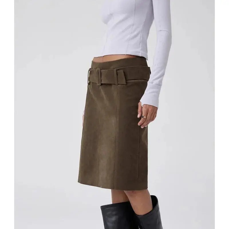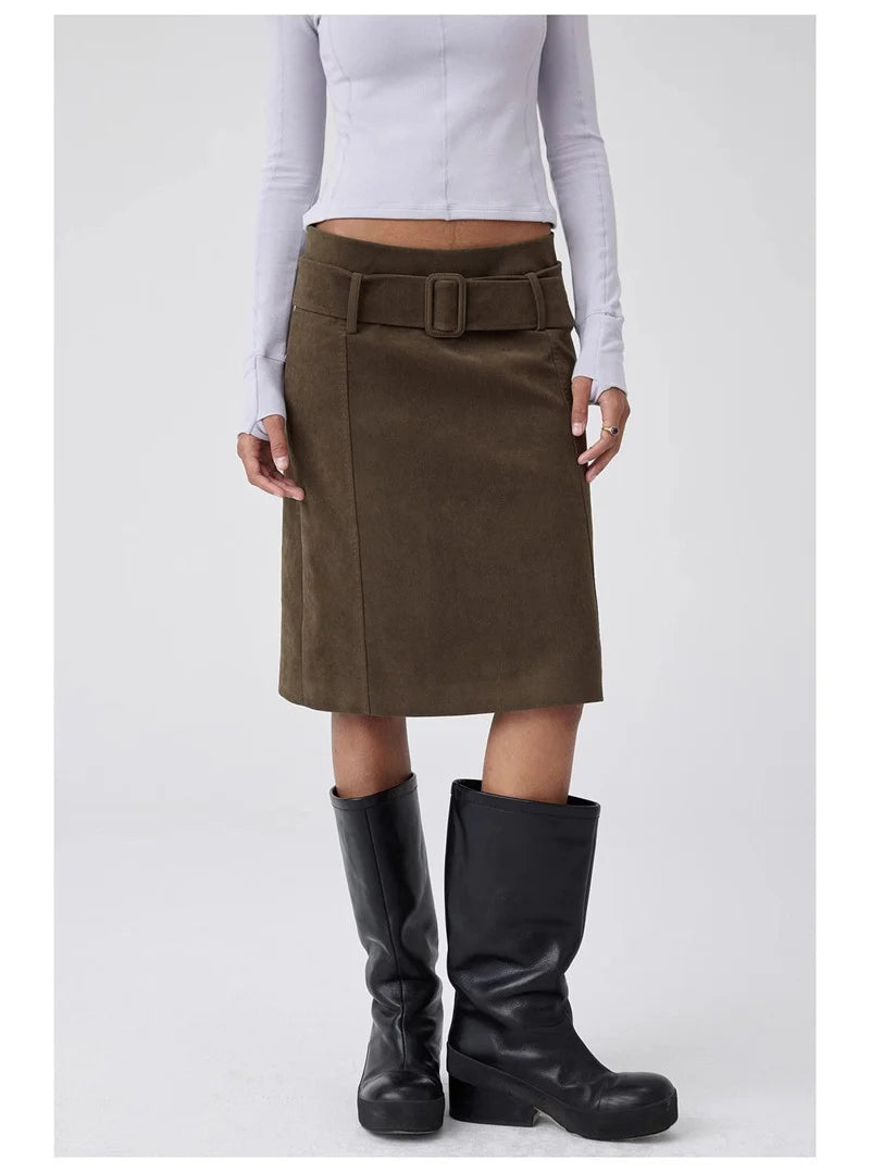 KYLETHOMASW - Fashion Women's Knee Length Skirt With Belt Temperament Office Lady A-Line Skirts High Waisted Slim Versatile Faldas 936P