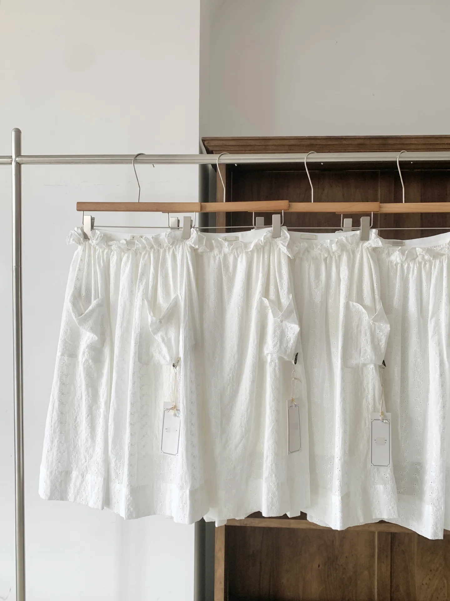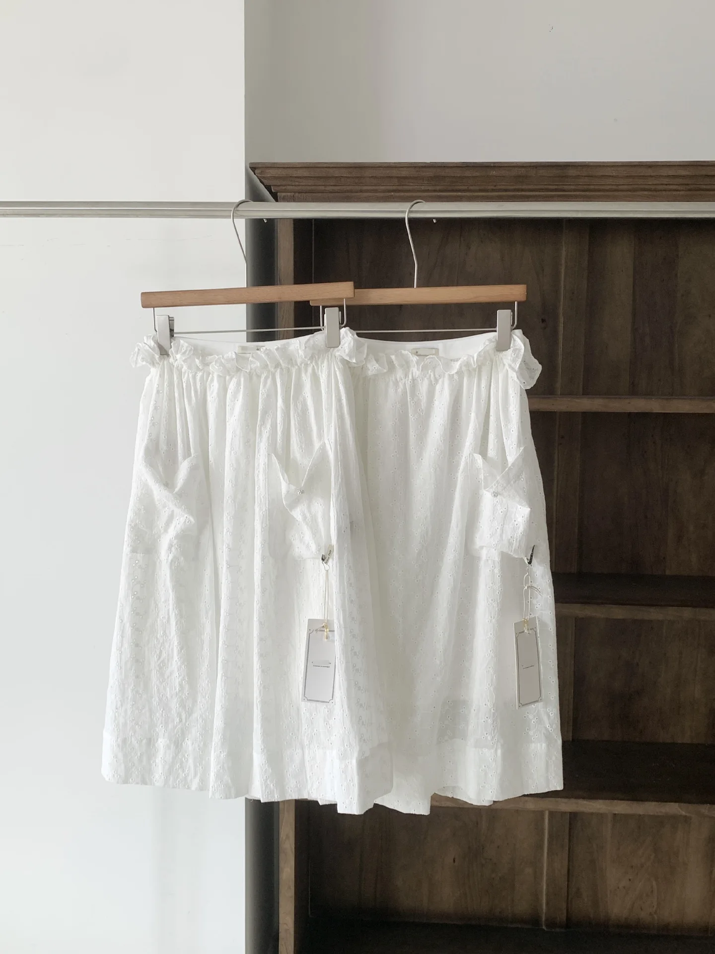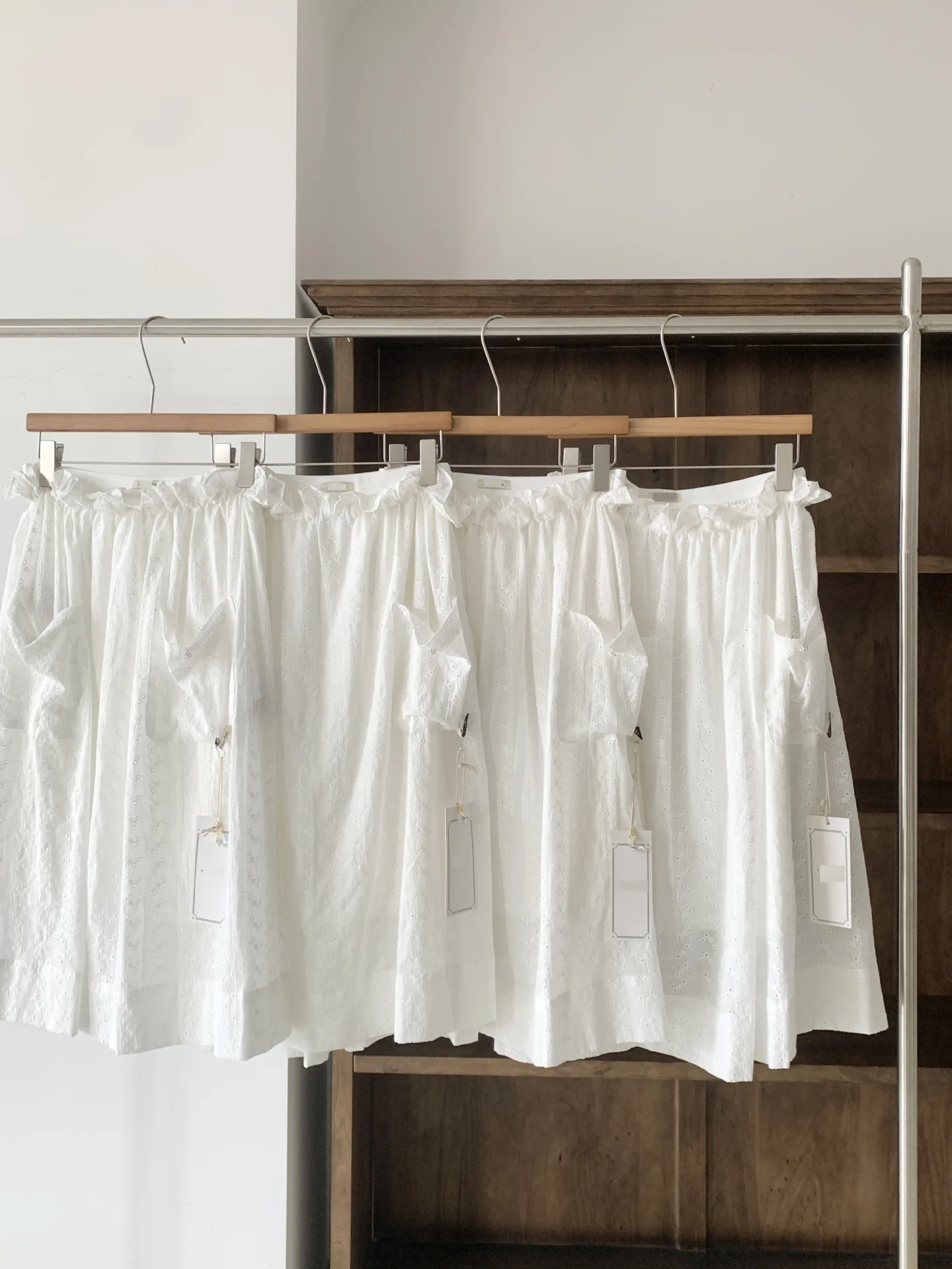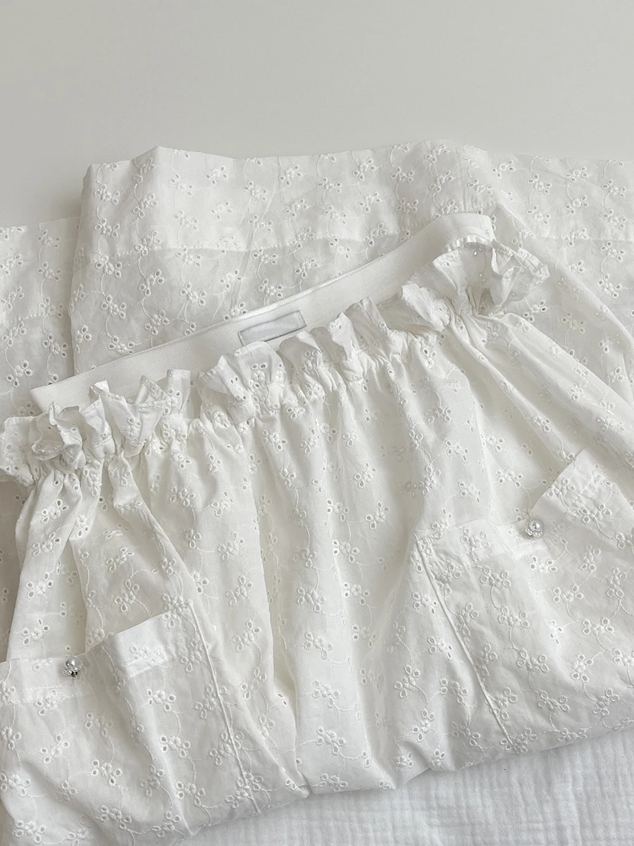Kylethomasw - Korean Fashion White Hollow Out Midi Skirts Women Summer High Waist Ruffle Pocket Long Skirt Elegant Casual Faldas Lady 2024 New