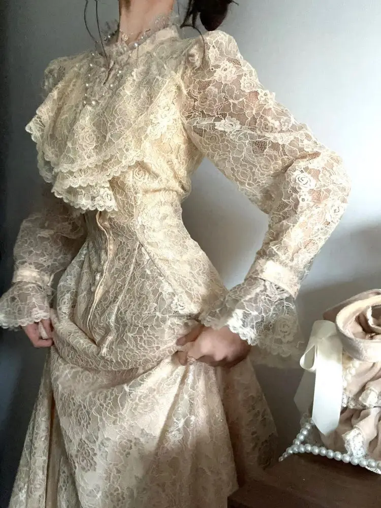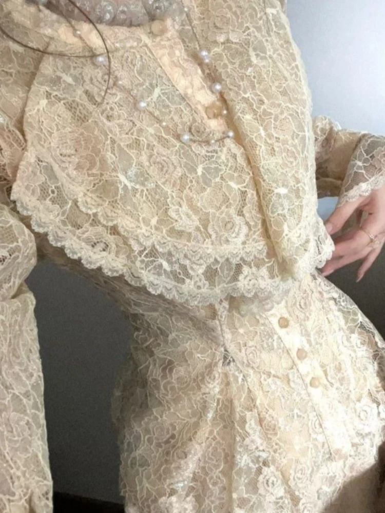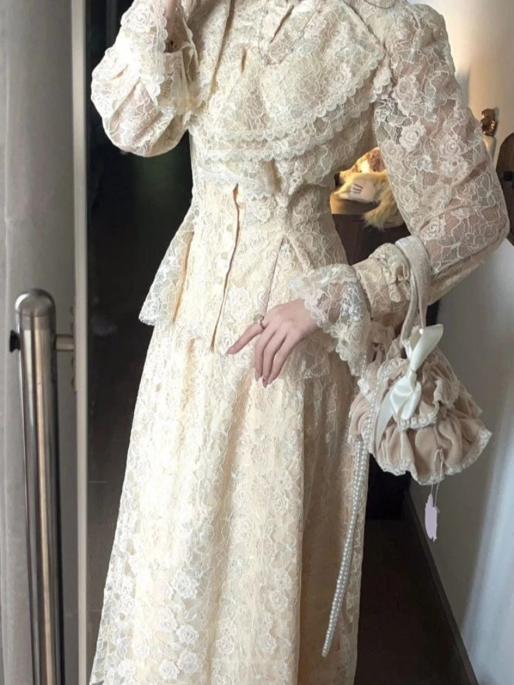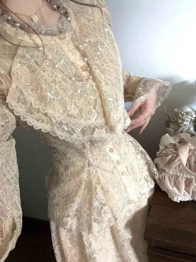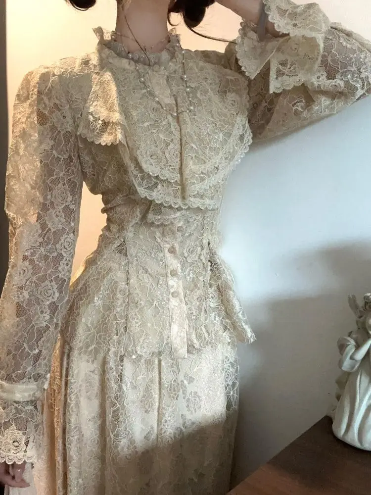 KYLETHOMASW - New Winter Elegant Princess Fashion 2 Piece Set Women Sweet Y2k Long Sleeve Tops + Long Skirt Harajuku Retro Chic Party Outfits
