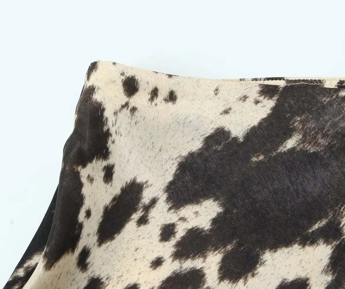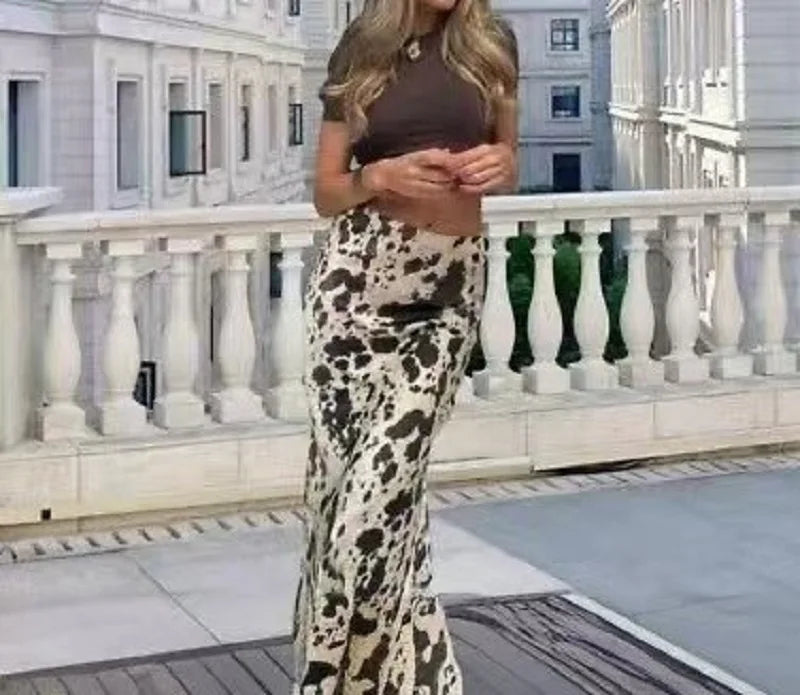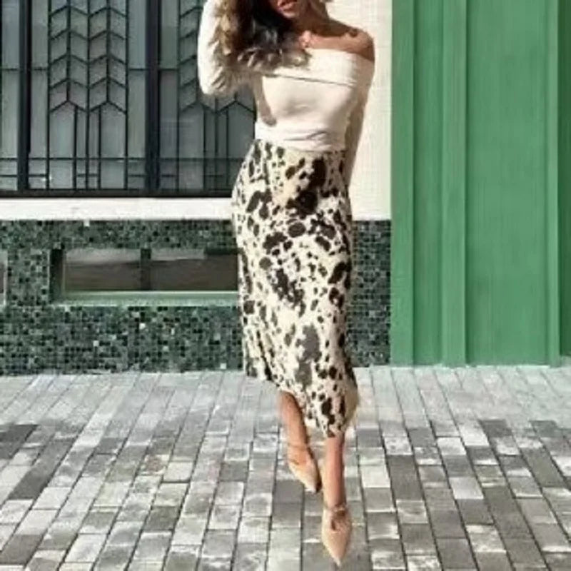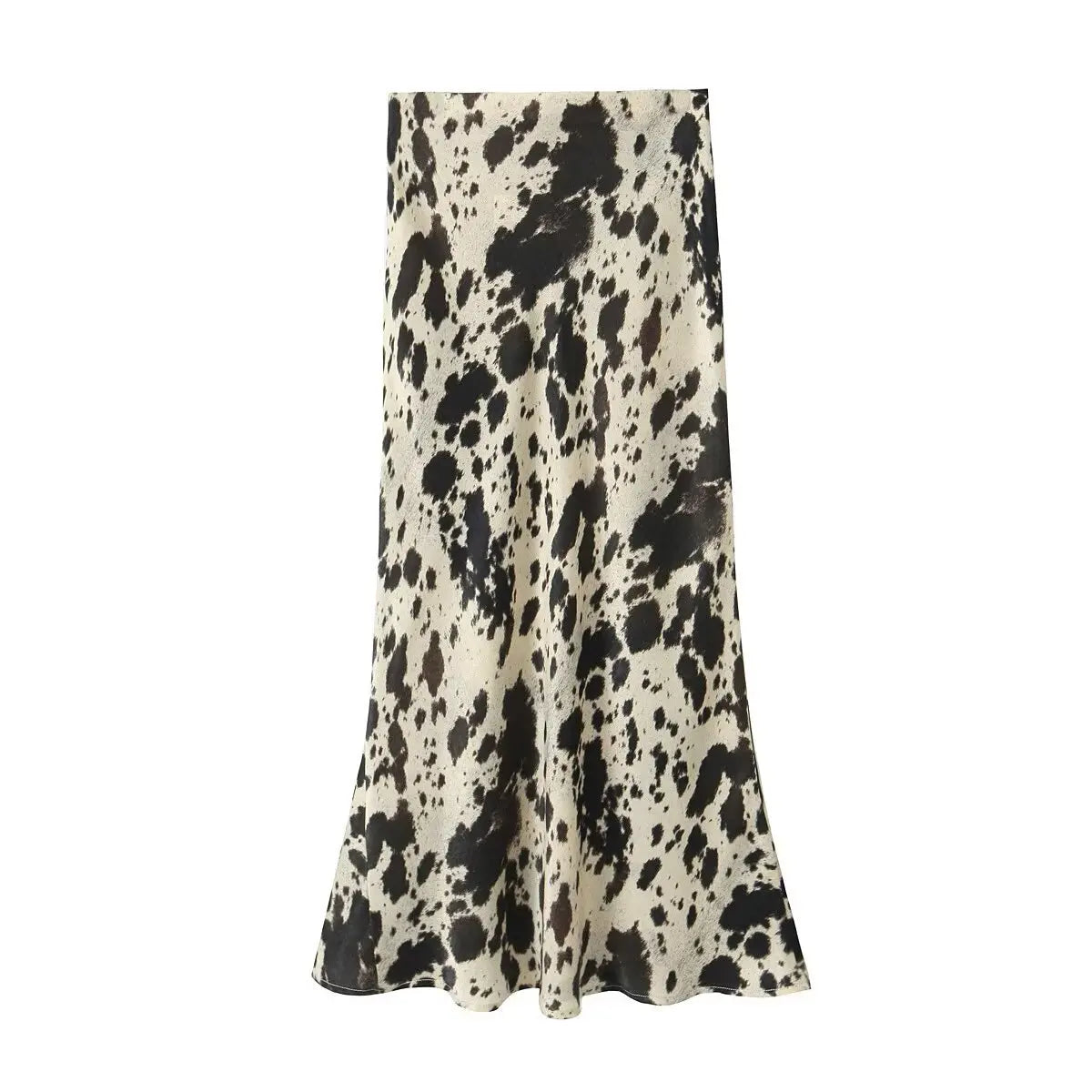 KYLETHOMASW - Spring Summer Women's Fashion niche animal print silk satin texture high waisted midi skirt
