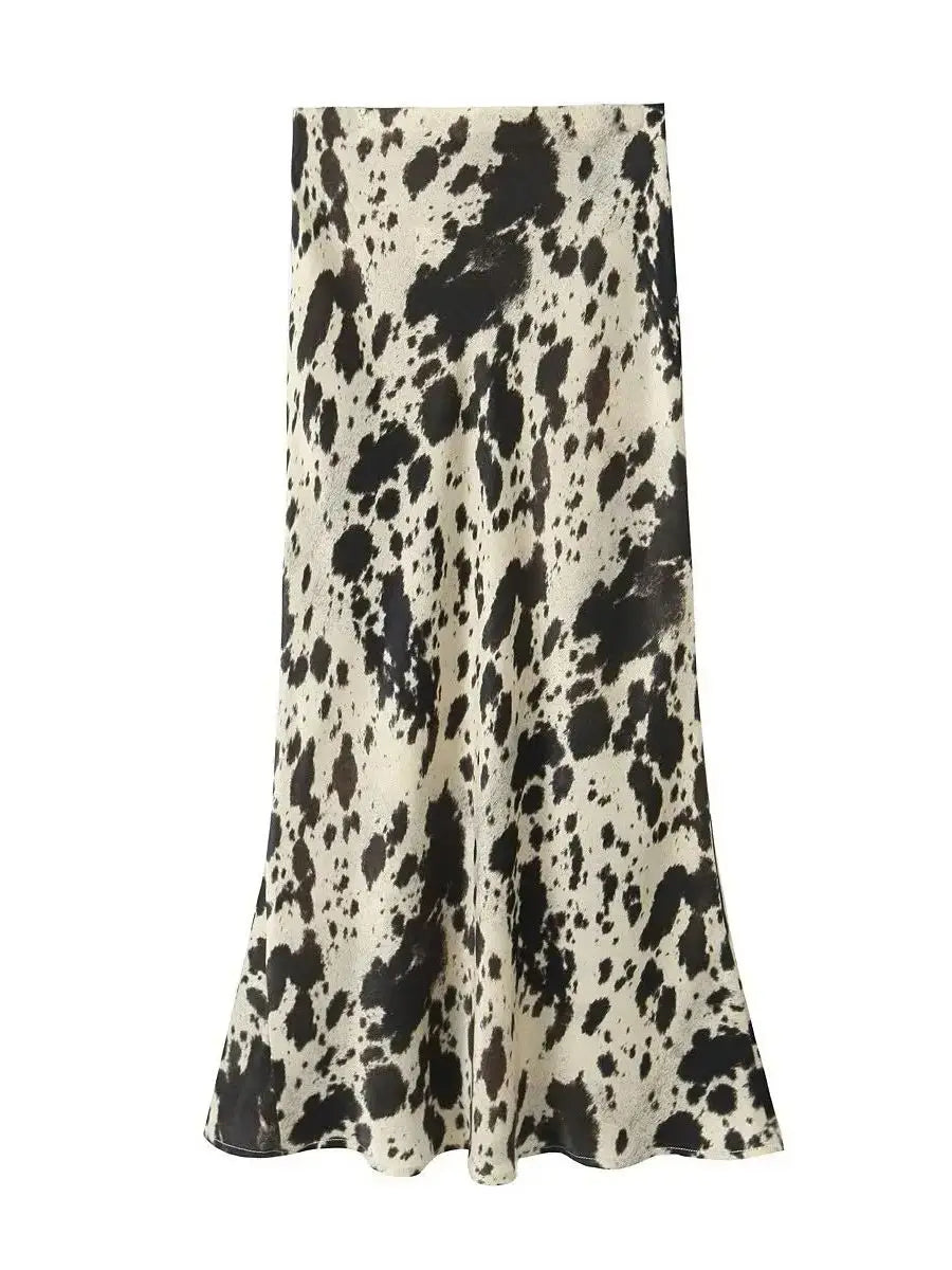 KYLETHOMASW  -  Spring Summer Women's Fashion niche animal print silk satin texture high waisted midi skirt