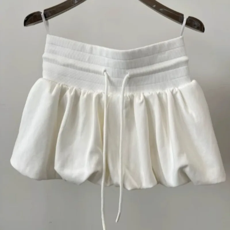 KYLETHOMASW - Sweet Bud Skirts Women Drawstring Solid Spring Summer Cute Mini Skirt Korean Fashion Casual High Waist Faldas Mujer