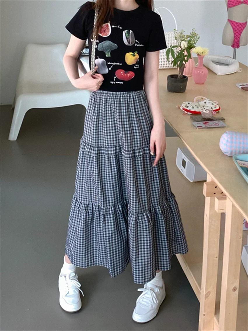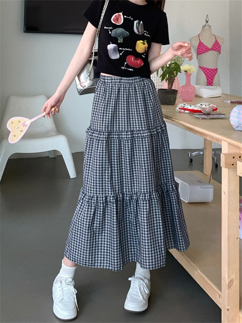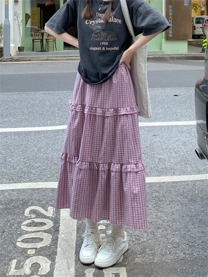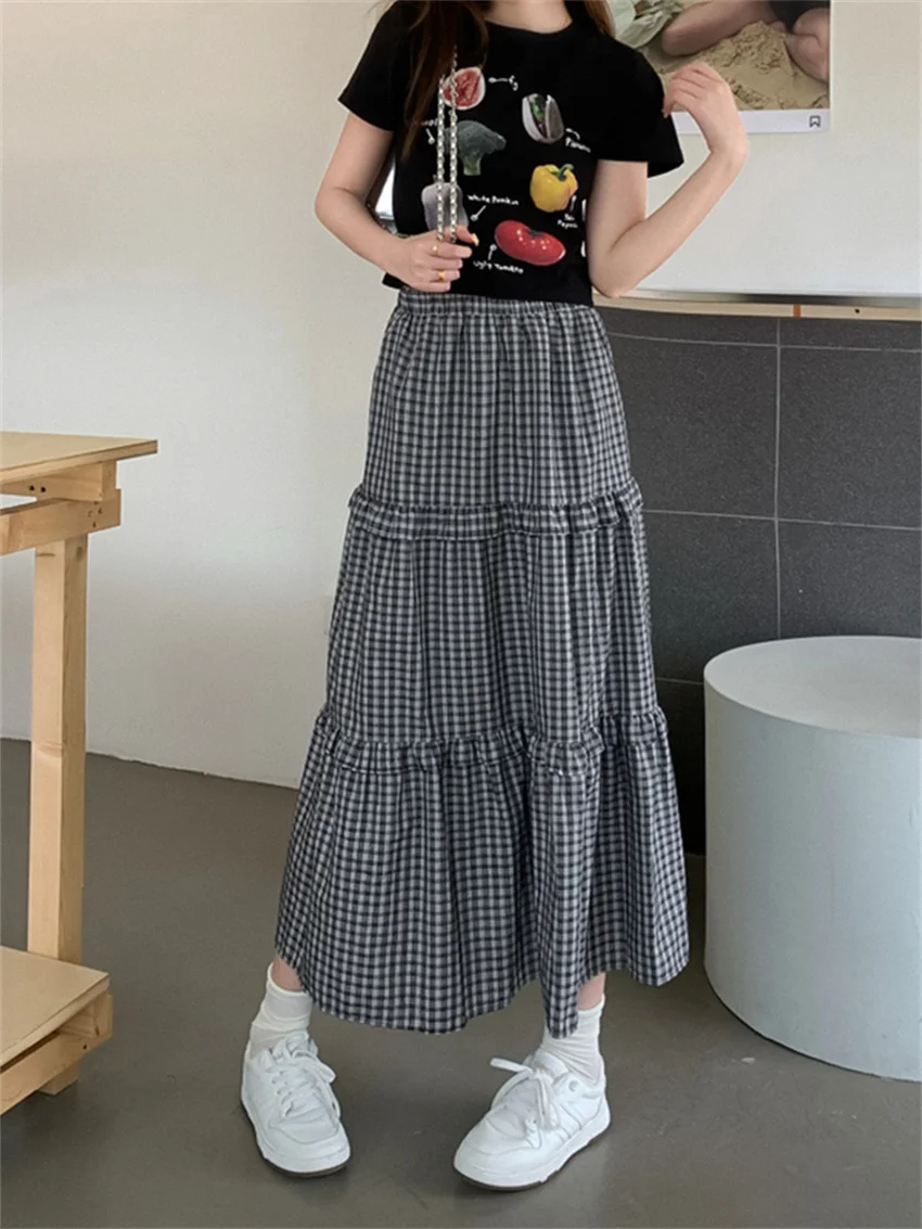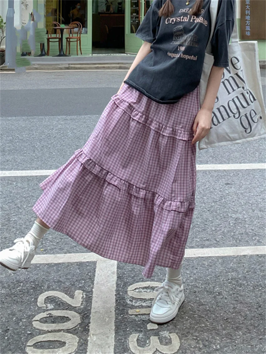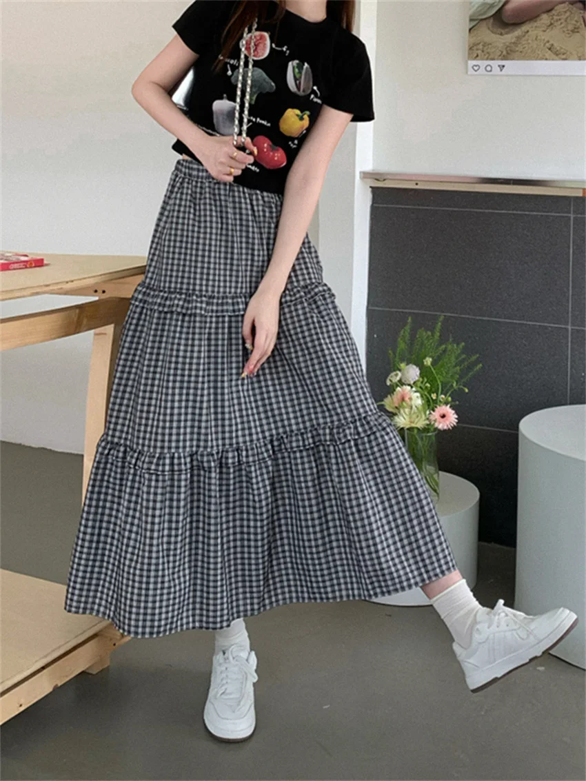 KYLETHOMASW - Women Plaid Skirts Chic Loose Summer Fashion Vintage Mujer Casual New Office Lady High Waist Sweet Slim Daily