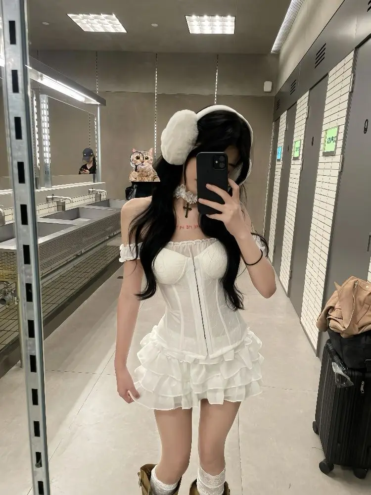 KYLETHOMASW - Women Sexy Two Piece Set Corset Top and Layered Ruffle Mini Skirt Slim Fit Suit Gothic Lolita Style Club Night Summer Outfit New