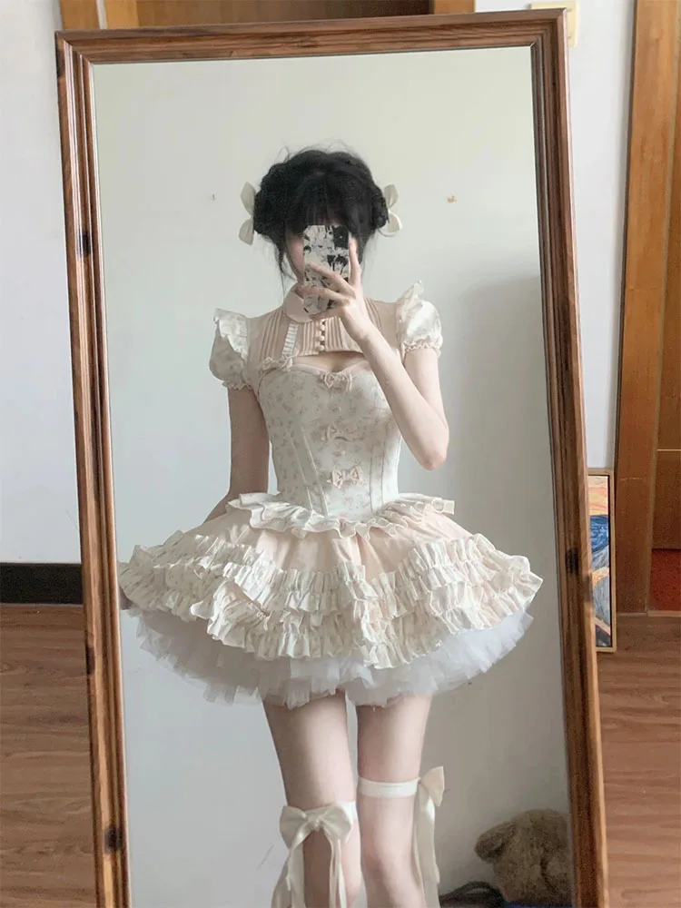 KYLTHOMASW  -  French Temperament Princess Skirt Sets Sweet Bow Strapless Slim Top Ball Gown Skirt Short Sleeve Coat Lolita Three-piece Sets