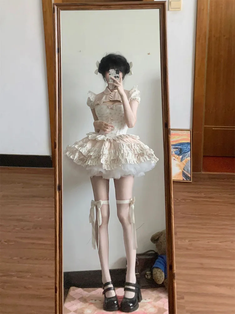 KYLTHOMASW - French Temperament Princess Skirt Sets Sweet Bow Strapless Slim Top Ball Gown Skirt Short Sleeve Coat Lolita Three-piece Sets