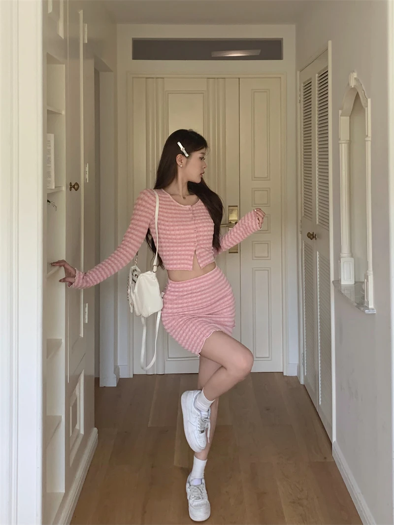 KYLTHOMASW - Sweet Hot Girl Pure Sexy Suit Women's Autumn Long-sleeved Cardigan High Waisted Mini Skirt Two-piece Set Fashion Female Clothes