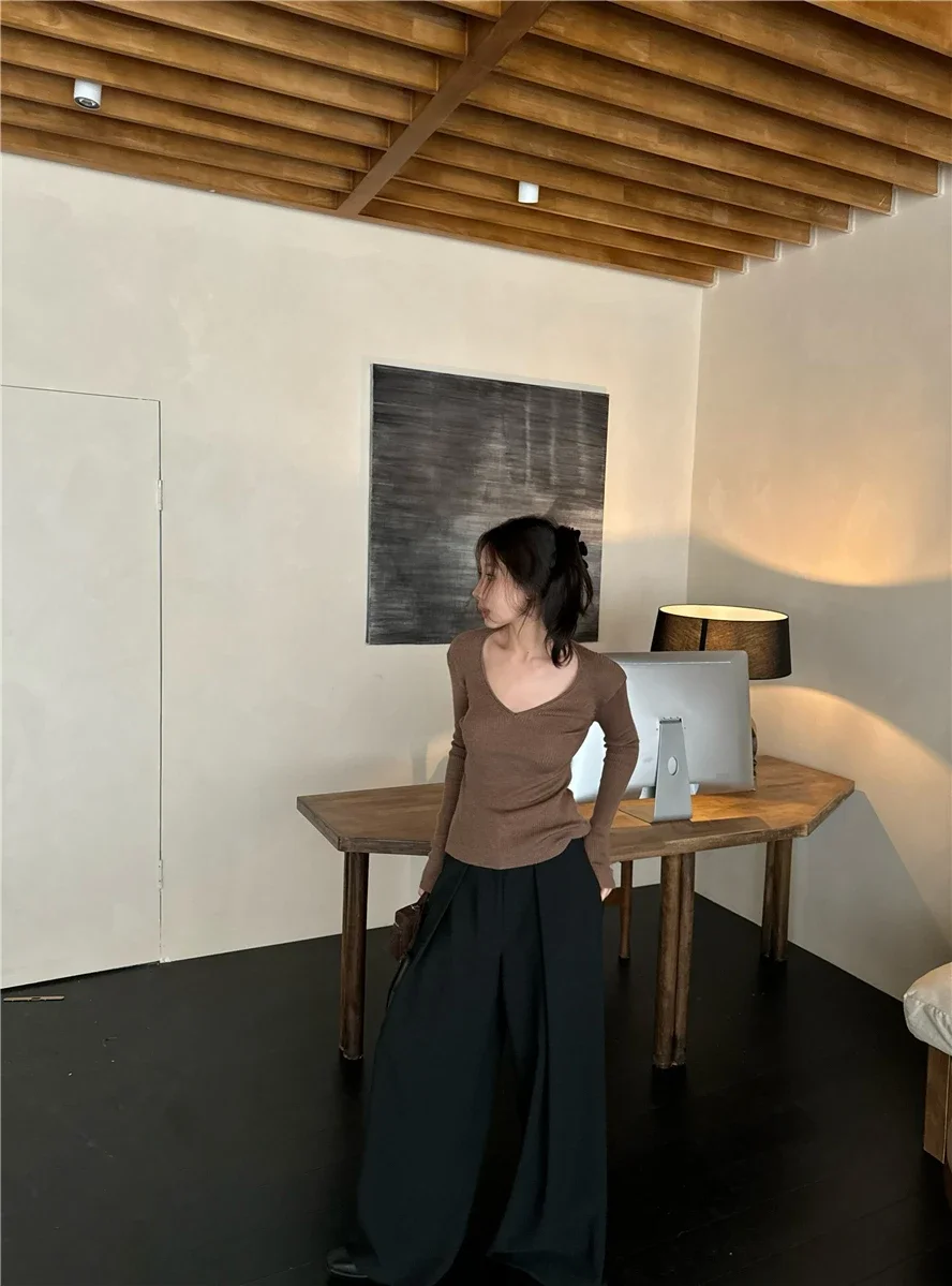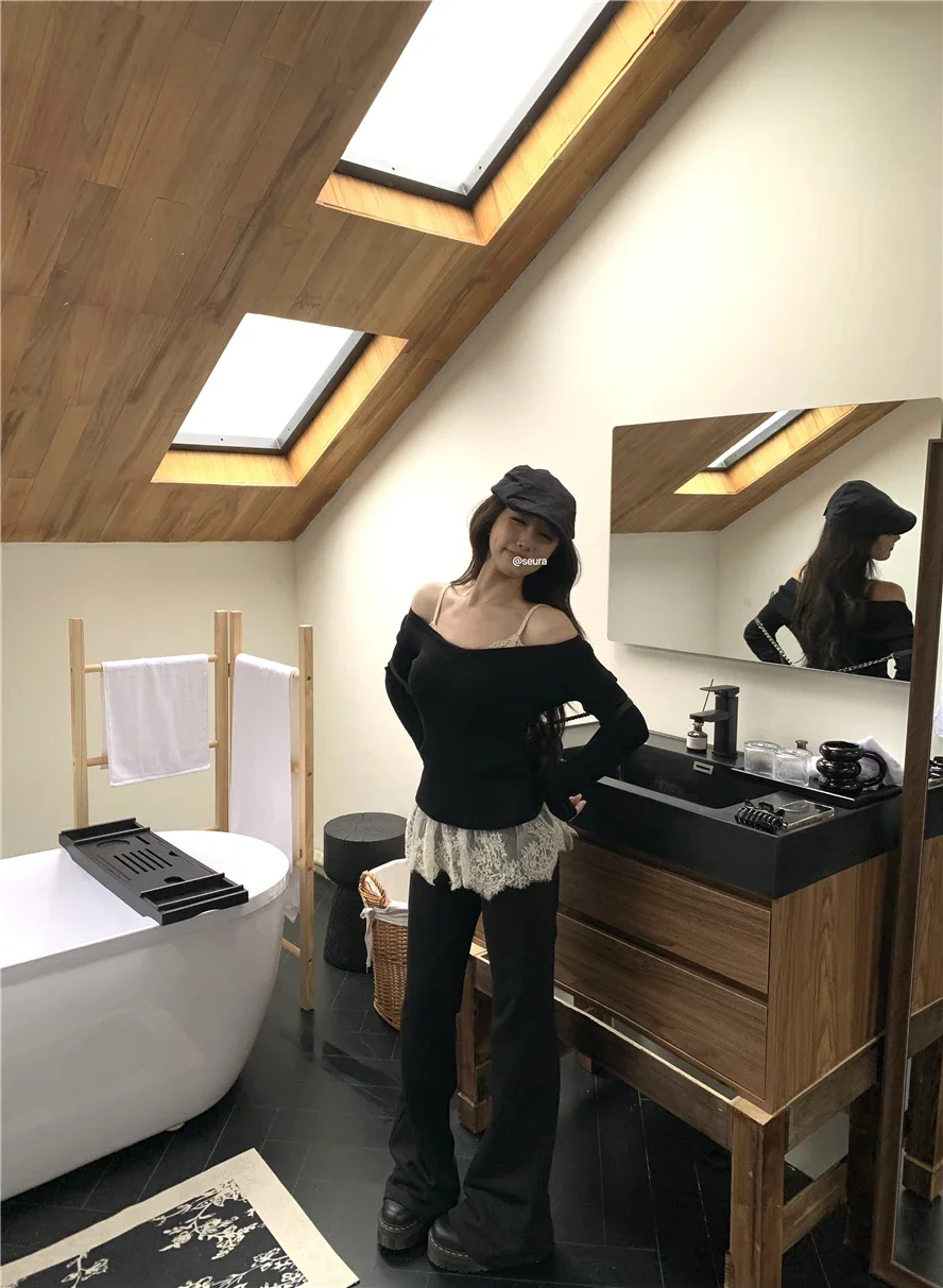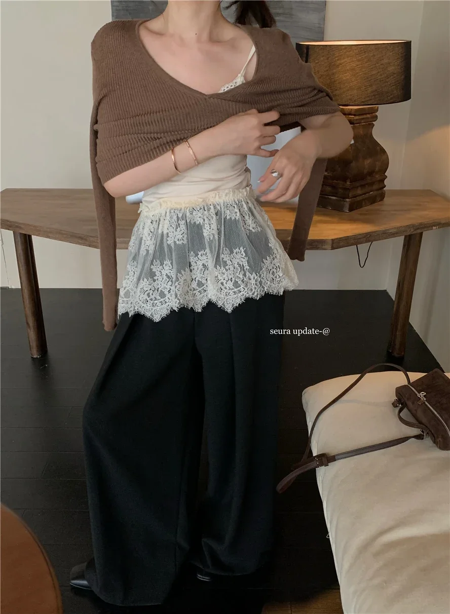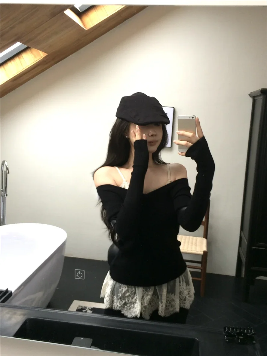 Kylethomasw Autumn New Korean V-neck Sexy Slim Thread Long-sleeved Sweater Women + Lace Splicing Hollow Casual Camisole Two-piece Suit