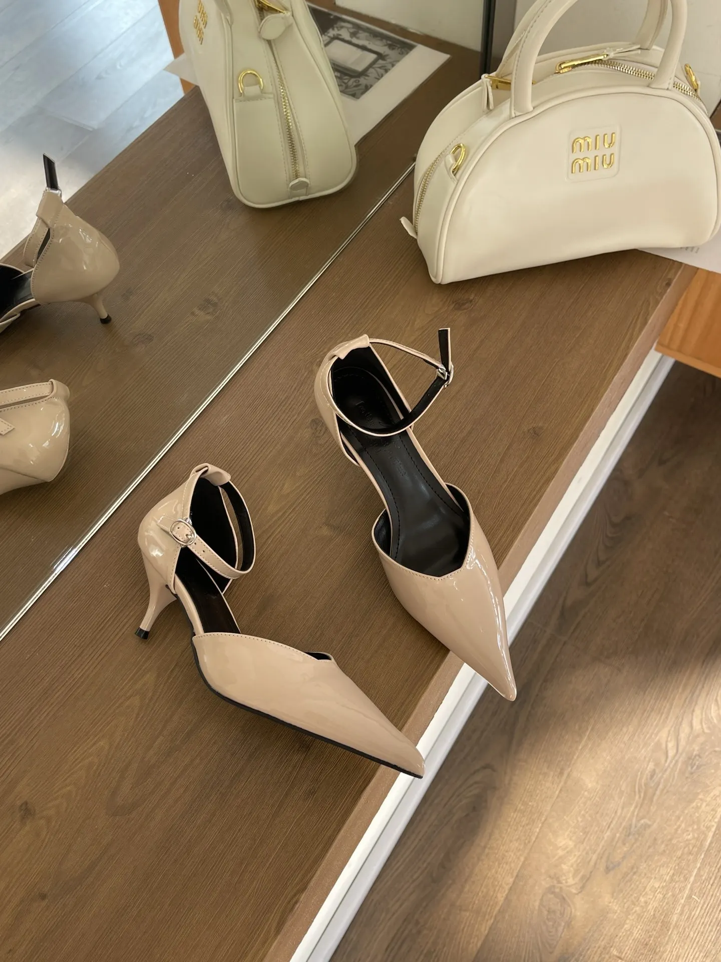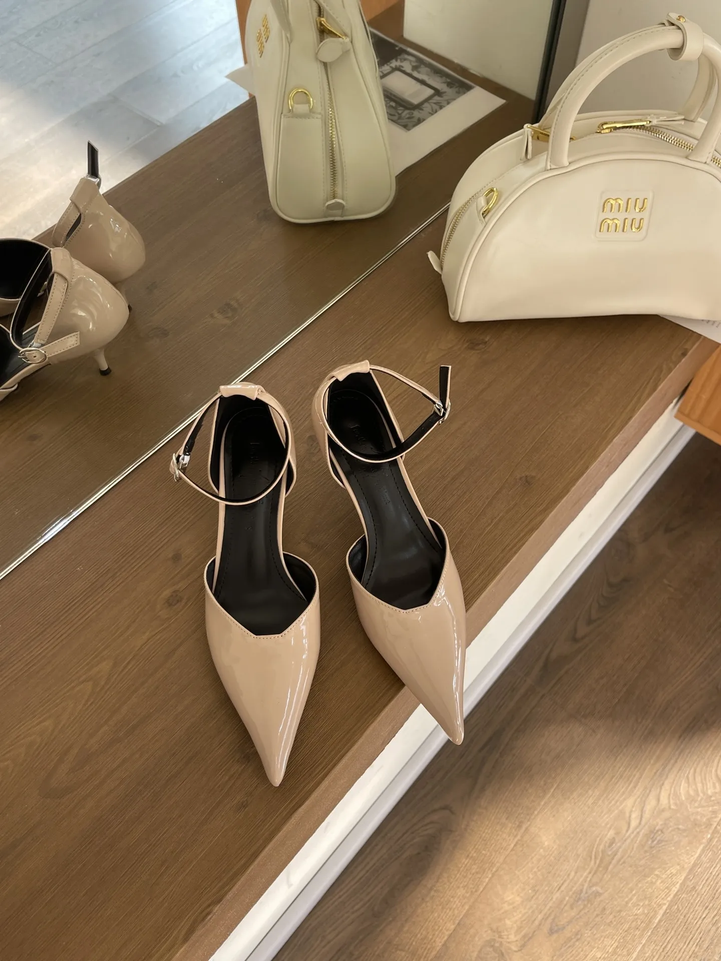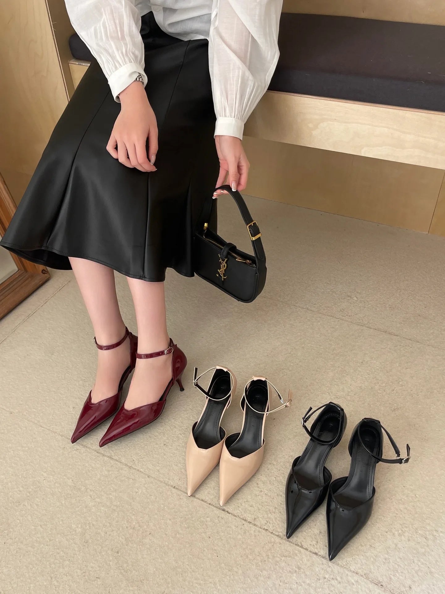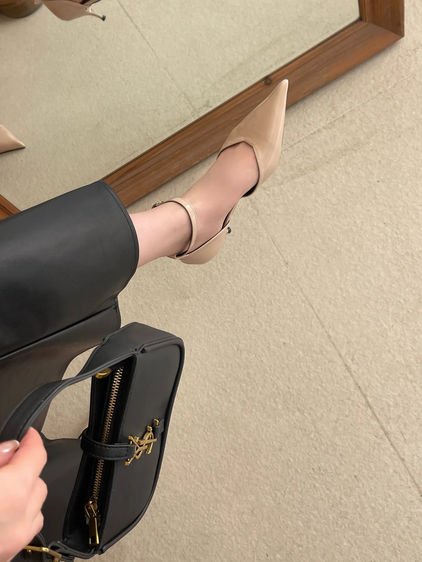 KYLETHOMASW - Pointed Heel Sandals Comfort Shoes for Women Suit Female Beige Girls Fashion Black High Leather Low Stiletto Scandals Rubber Fab