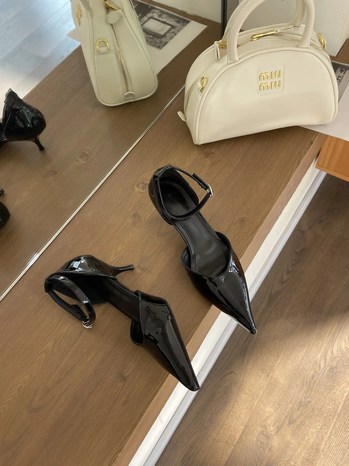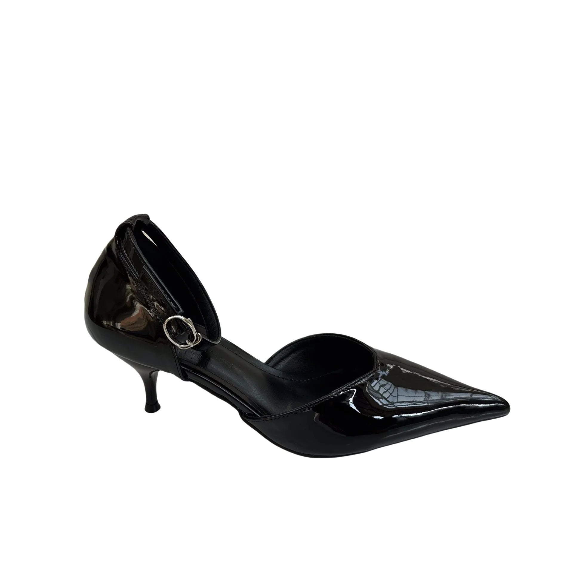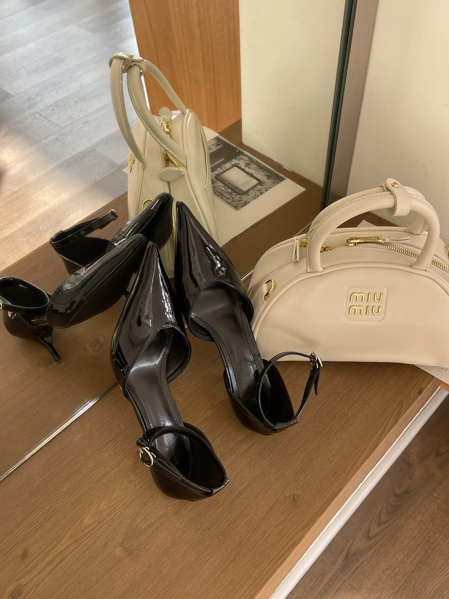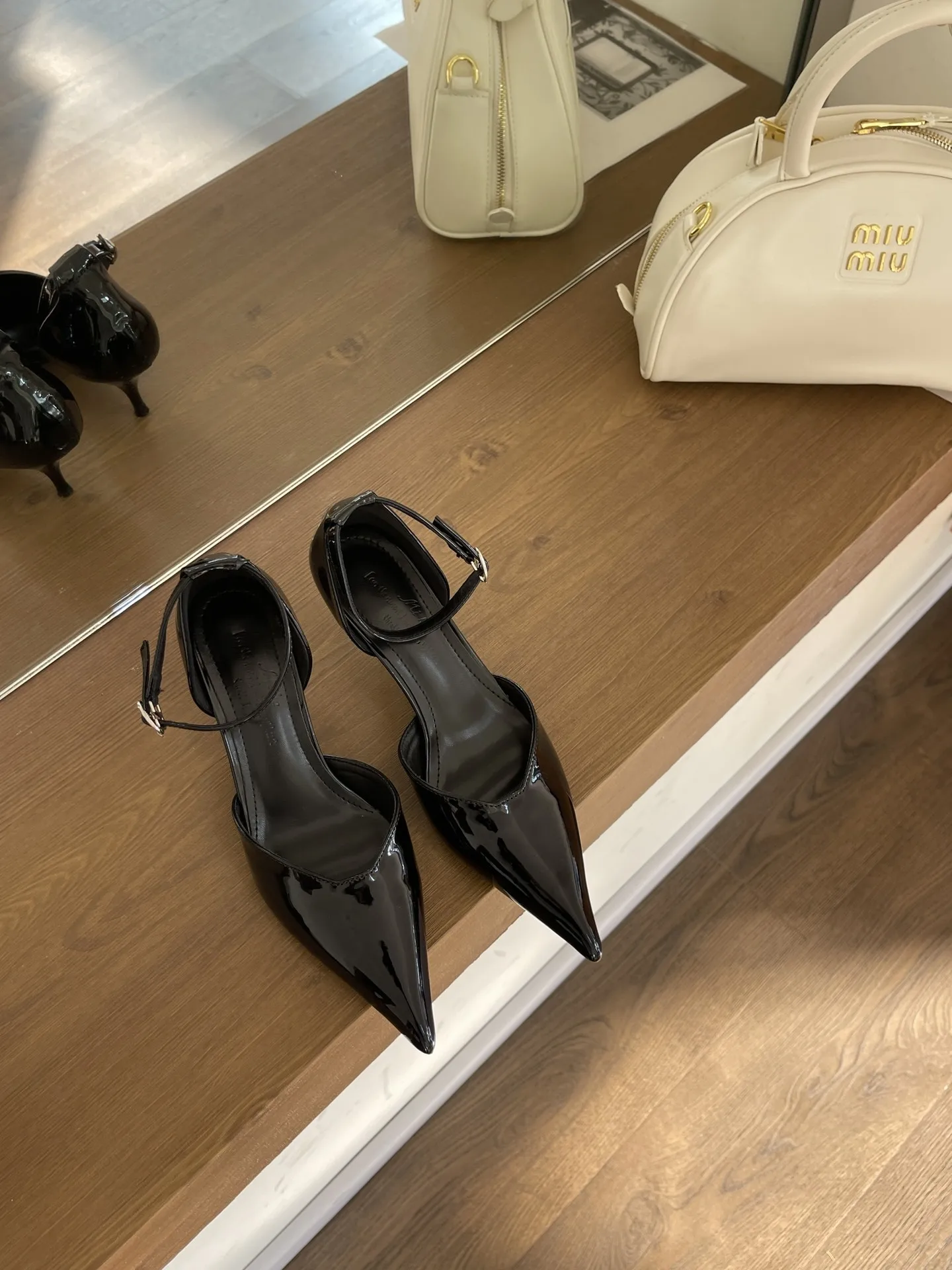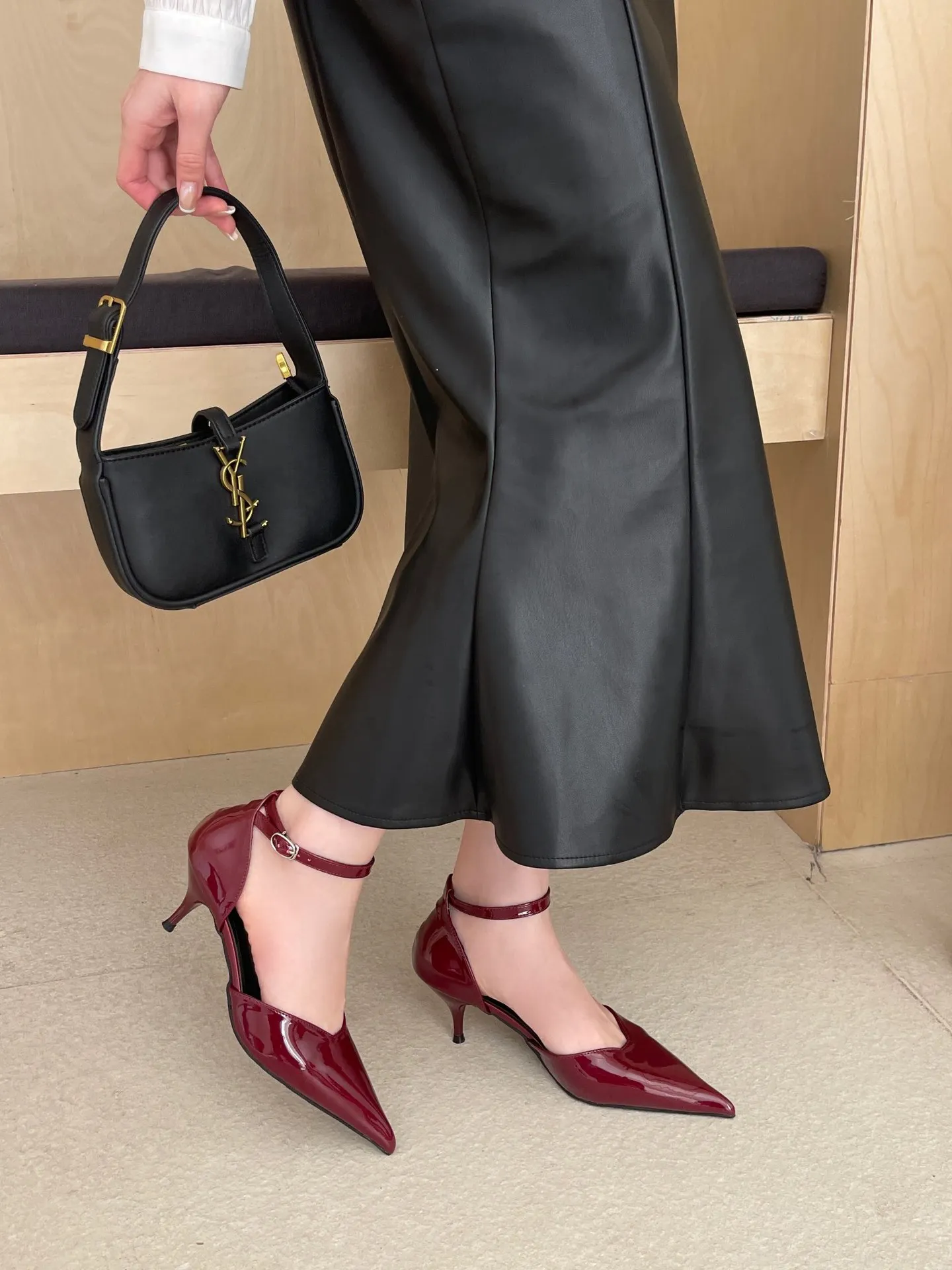 KYLETHOMASW - Pointed Heel Sandals Comfort Shoes for Women Suit Female Beige Girls Fashion Black High Leather Low Stiletto Scandals Rubber Fab
