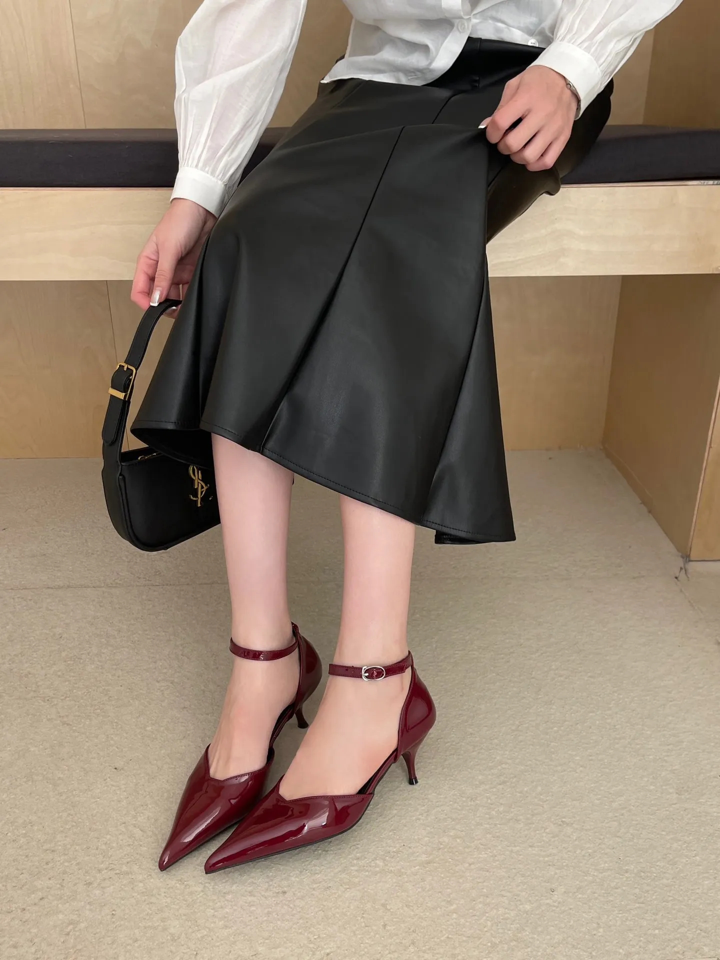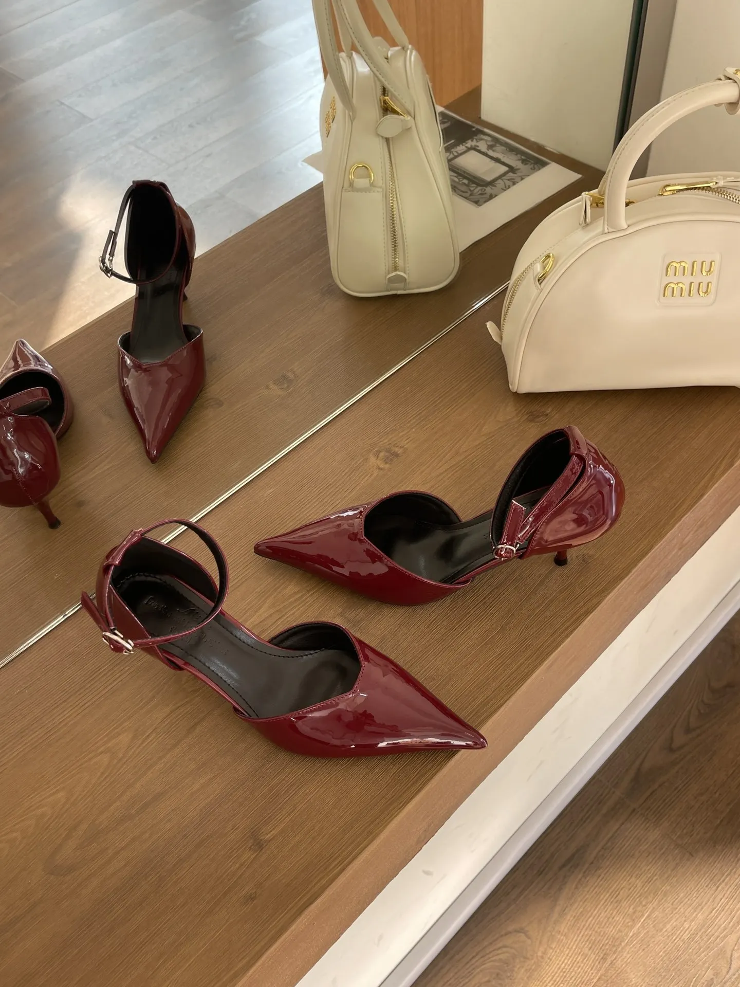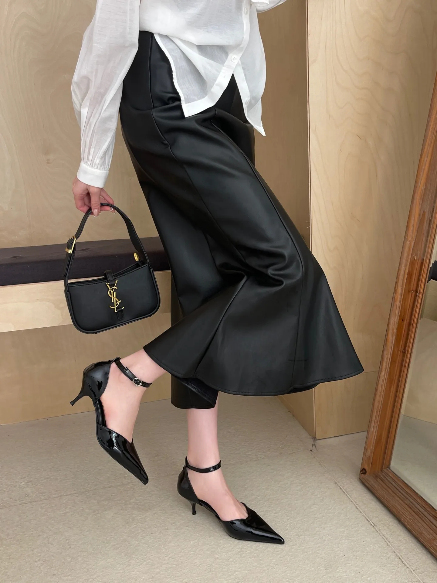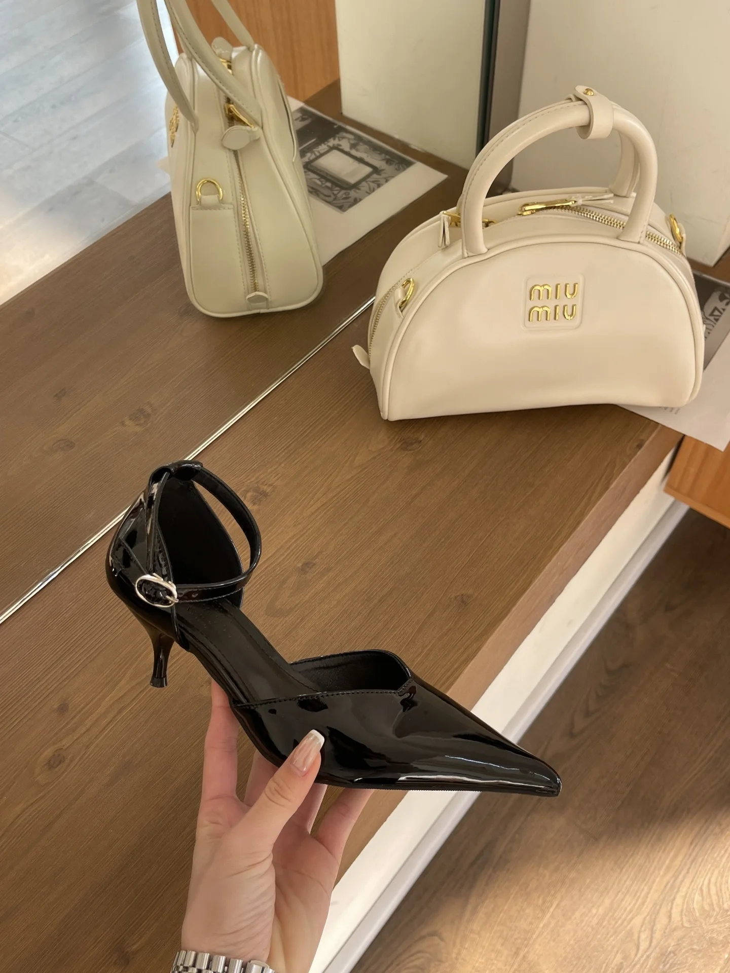 KYLETHOMASW - Pointed Heel Sandals Comfort Shoes for Women Suit Female Beige Girls Fashion Black High Leather Low Stiletto Scandals Rubber Fab